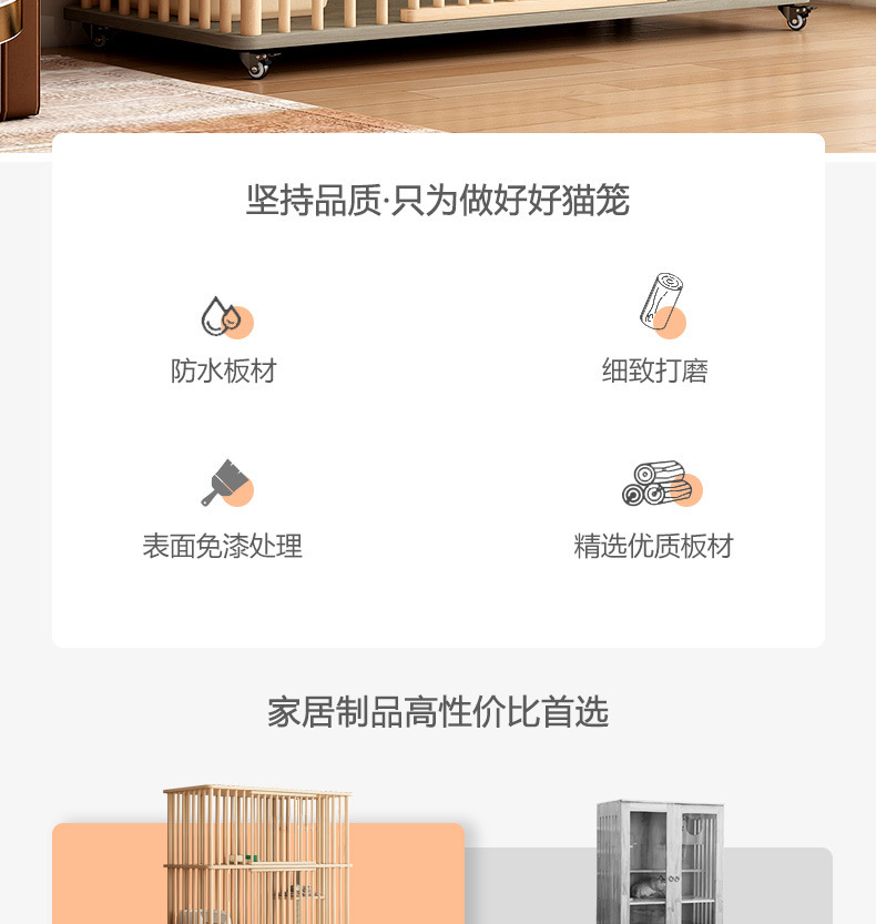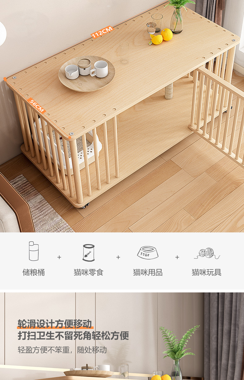 • 사각형 단단한 나무 고양이 케이지 단일 레이어