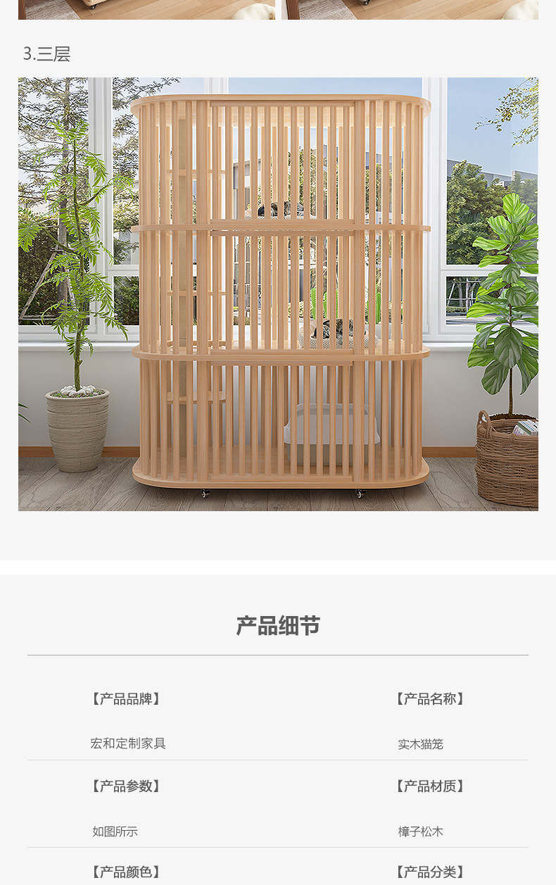 • 타원형 단단한 나무 고양이 케이지 3 층
