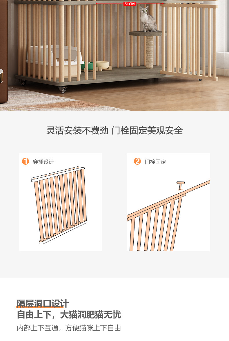 단단한 나무 고양이 집 고양이 빌라 고양이 집 넓은 공간 고양이 케이지 더블 레이어 헤어 고양이 집 사육 고양이 집 단단한 나무 고양이 케이지스토어 가기