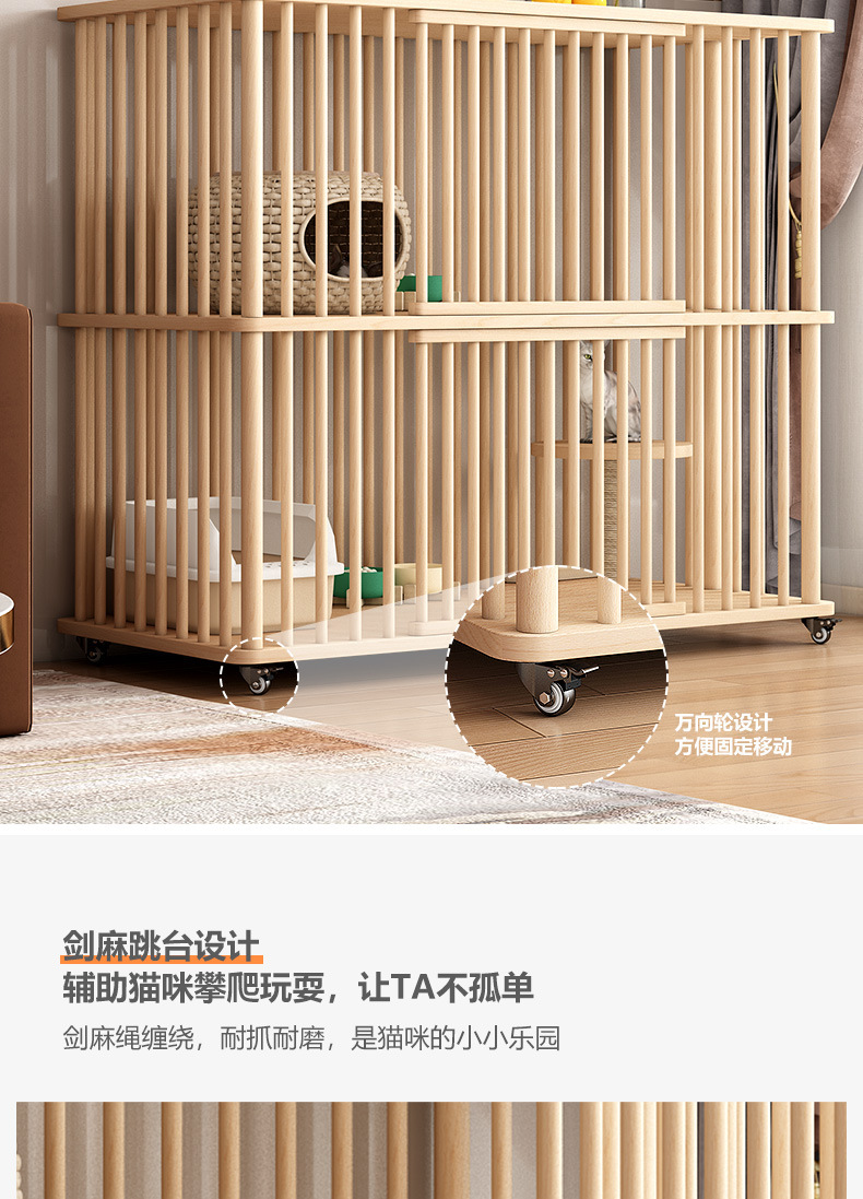 • 타원형 단단한 나무 고양이 케이지 더블 레이어