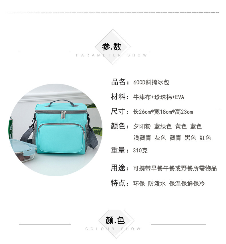제조업체 휴대용 신선도 유지 보온 가방 옥스포드 천 휴대용 숄더백 도시락 가방 야외 피크닉 가방 아이스팩