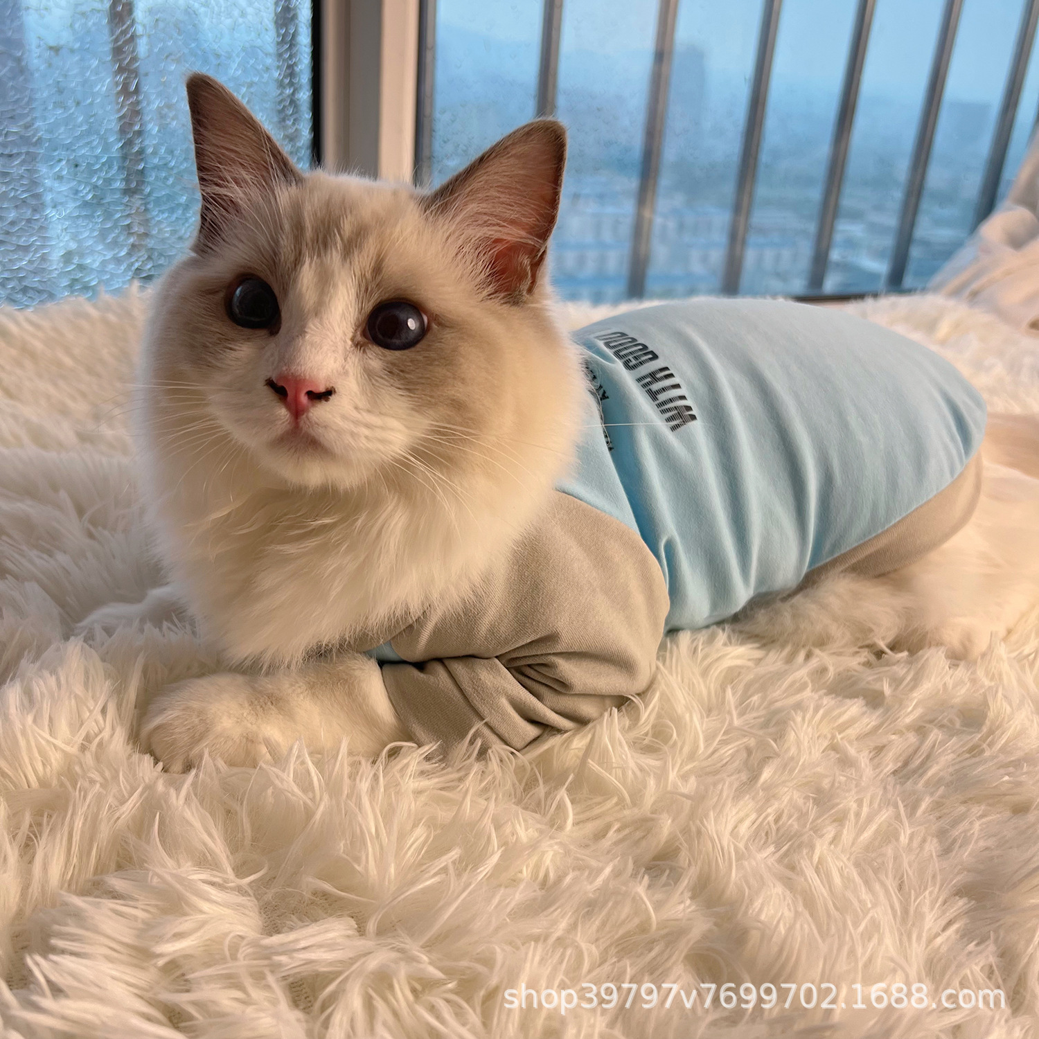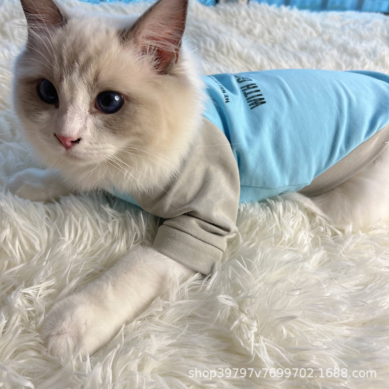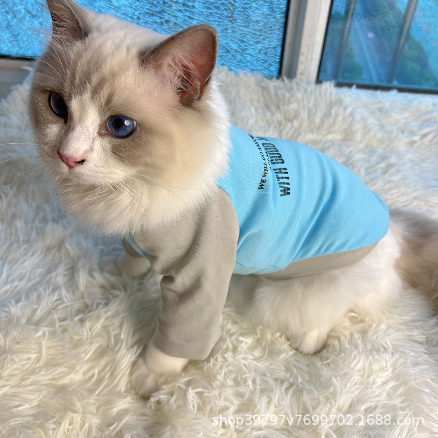 애완견 고양이 옷 봄과 가을 얇은 순면 스타일 스티치 대비 색상 스웨터 소형 중형 및 대형 개 골든 리트리버스토어 가기