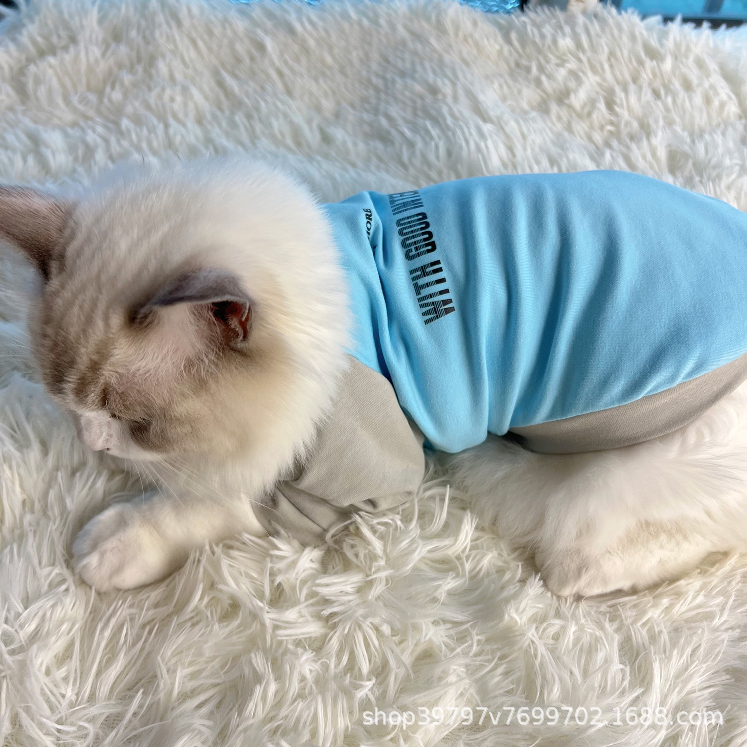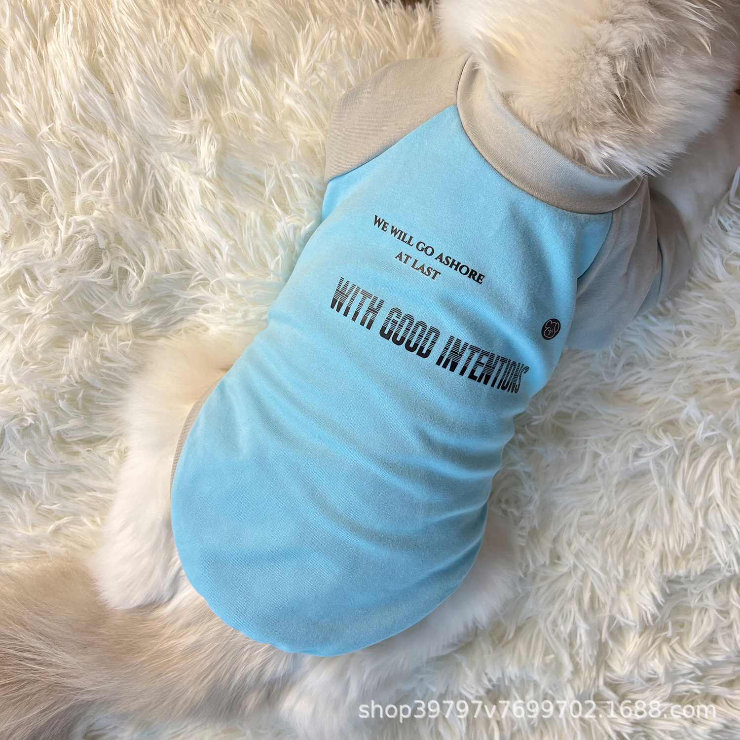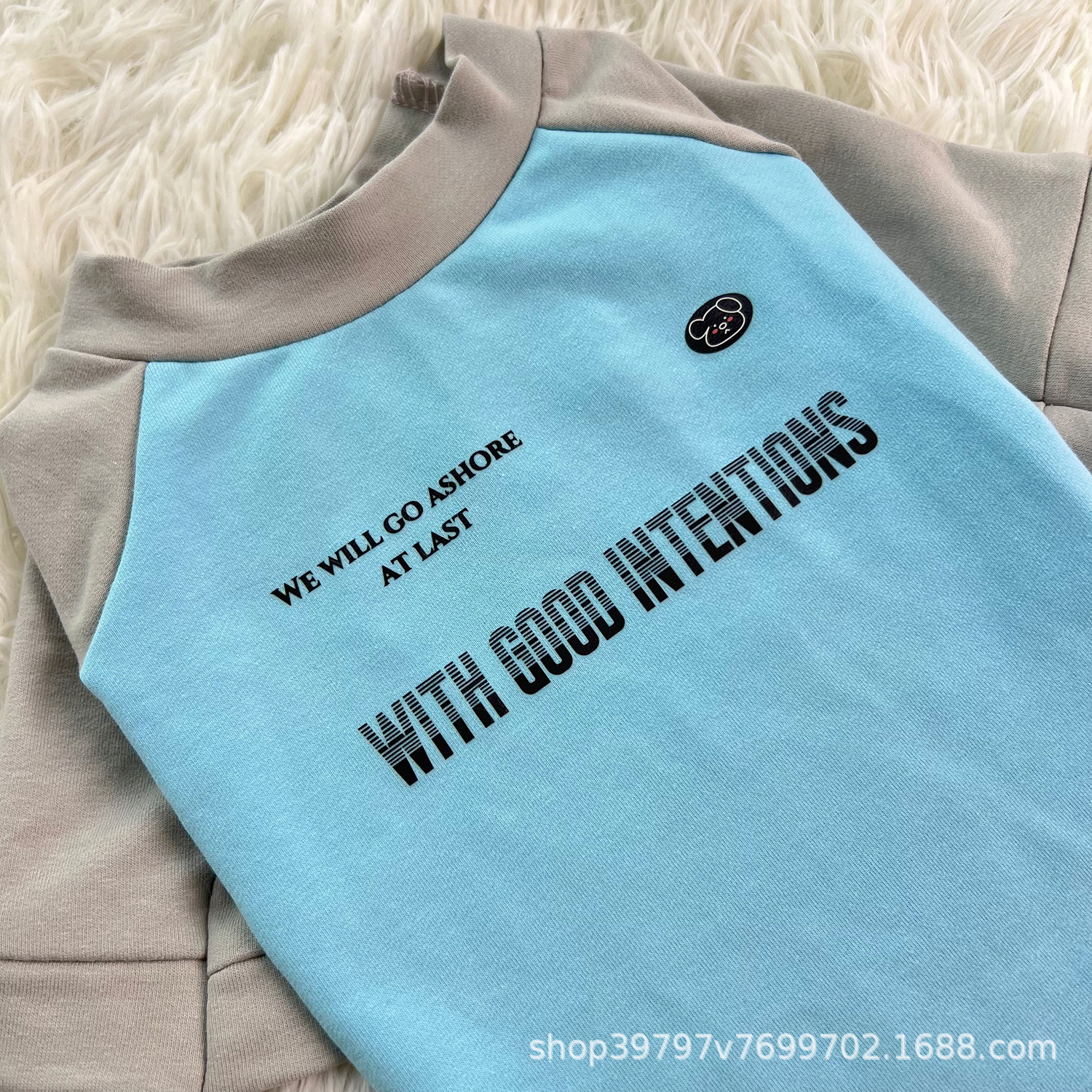 애완견 고양이 옷 봄과 가을 얇은 순면 스타일 스티치 대비 색상 스웨터 소형 중형 및 대형 개 골든 리트리버