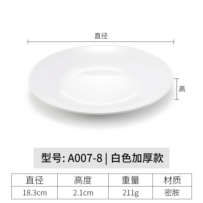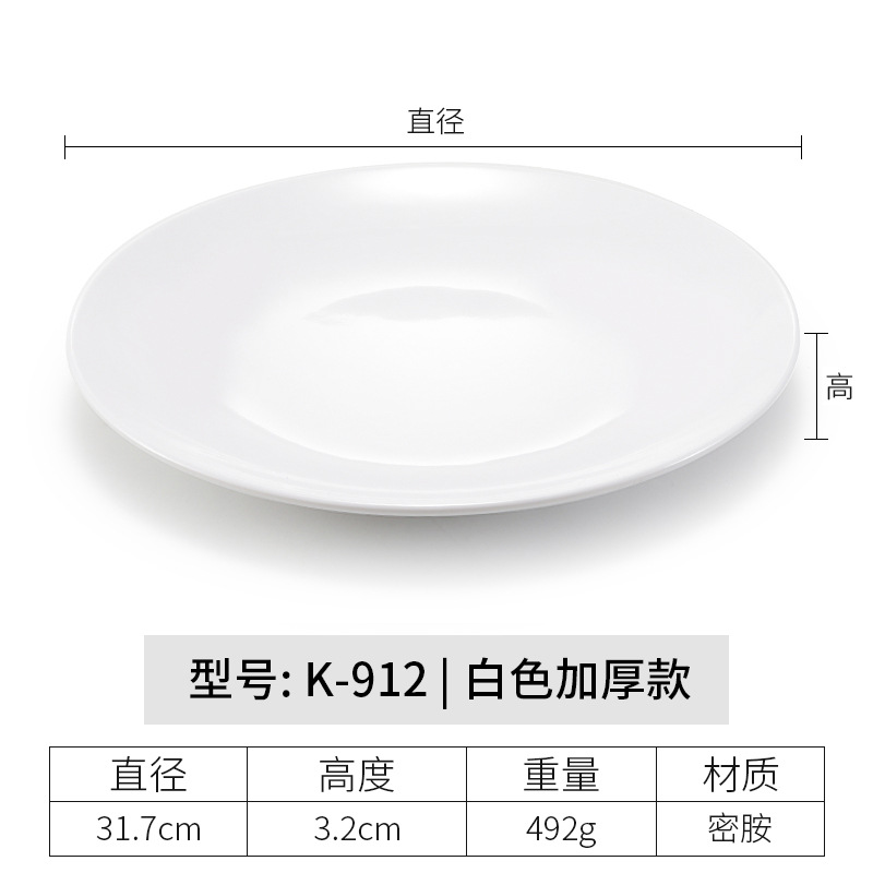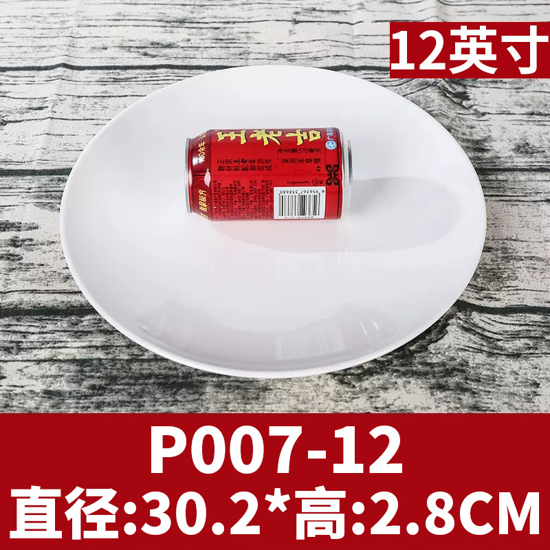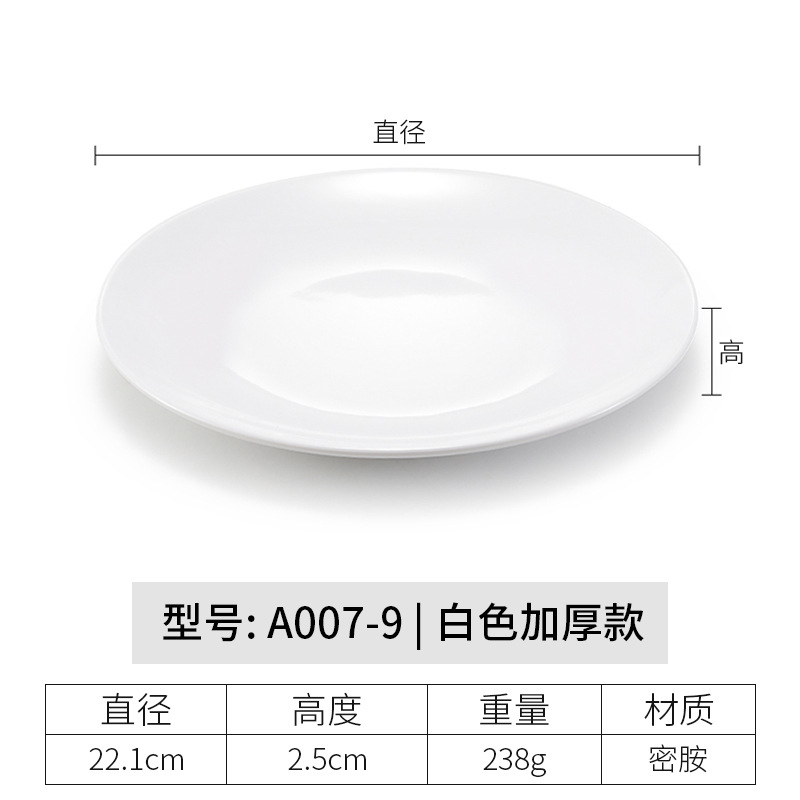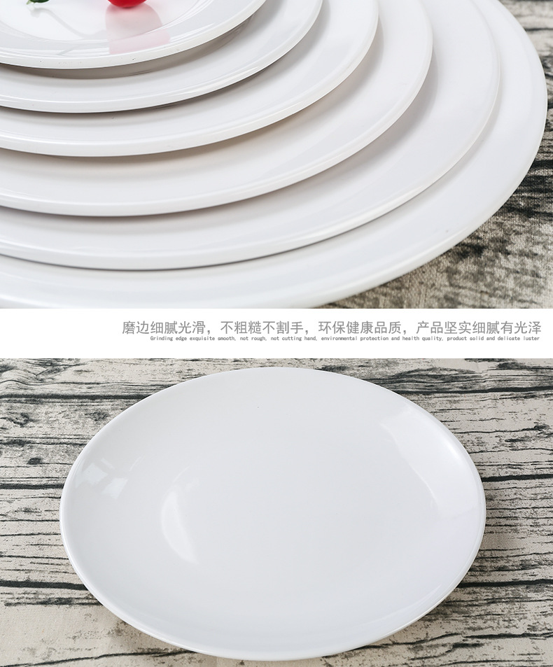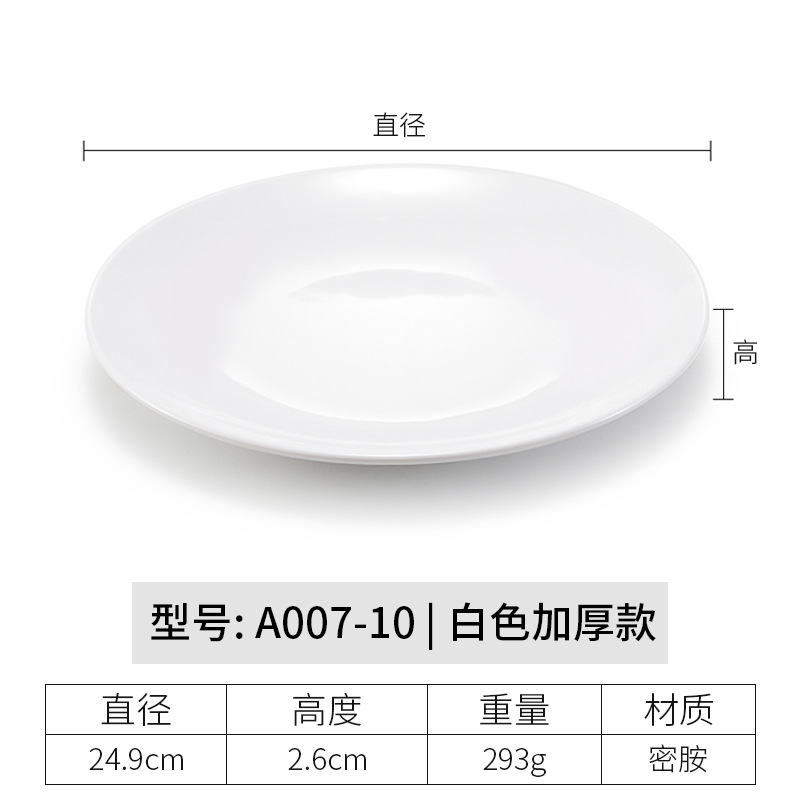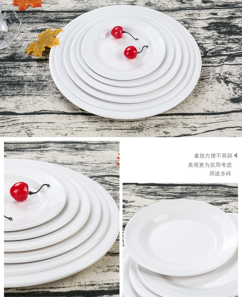 멜라민 원형 접시 상업용 모조 도자기 식기 흰색 플라스틱 플랫 플레이트 얕은 접시 셀프 서비스 디스크 디너 플레이트 뼈 접시스토어 가기