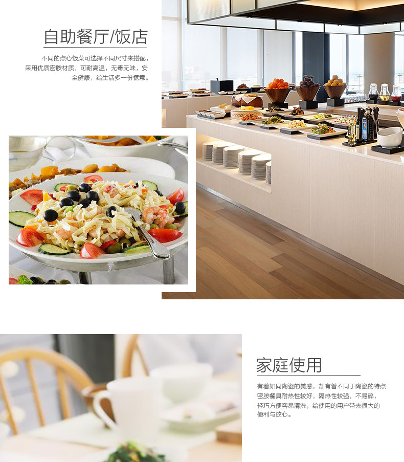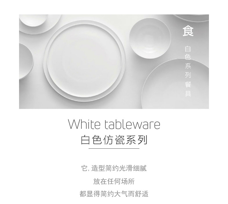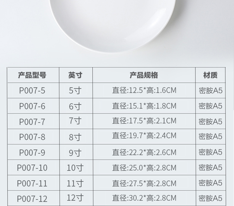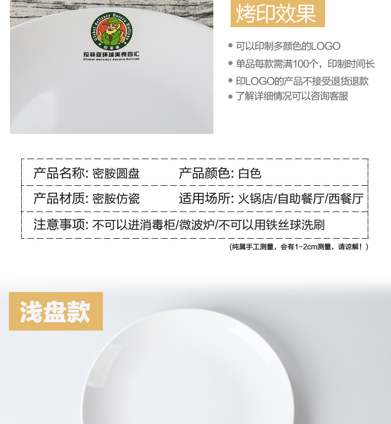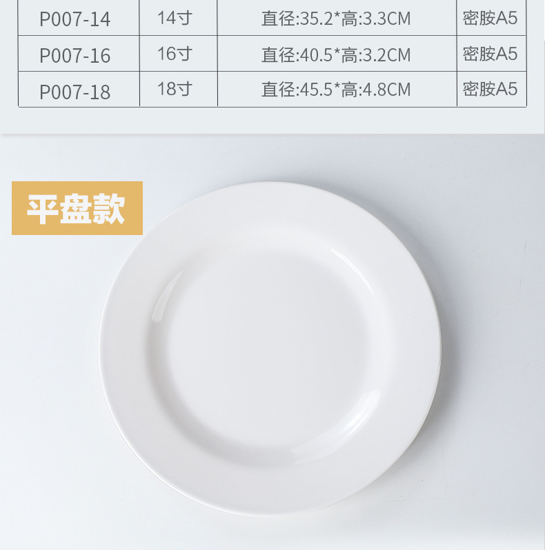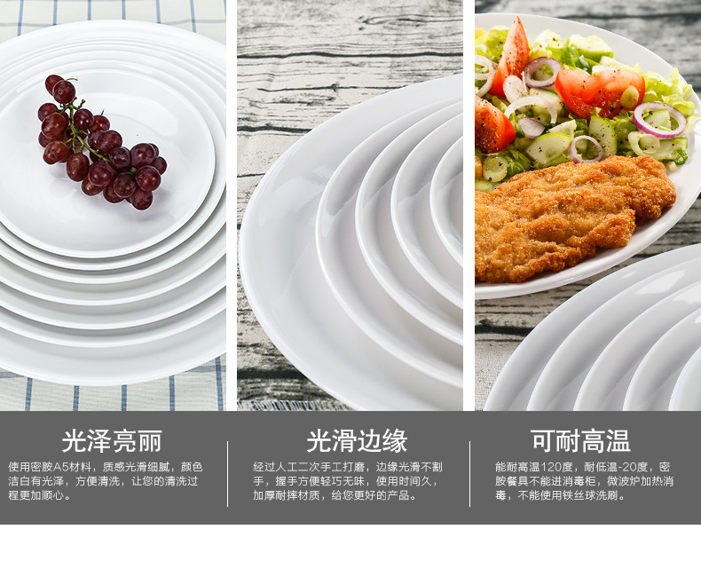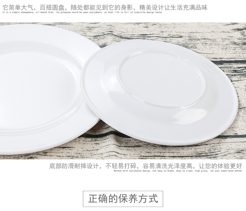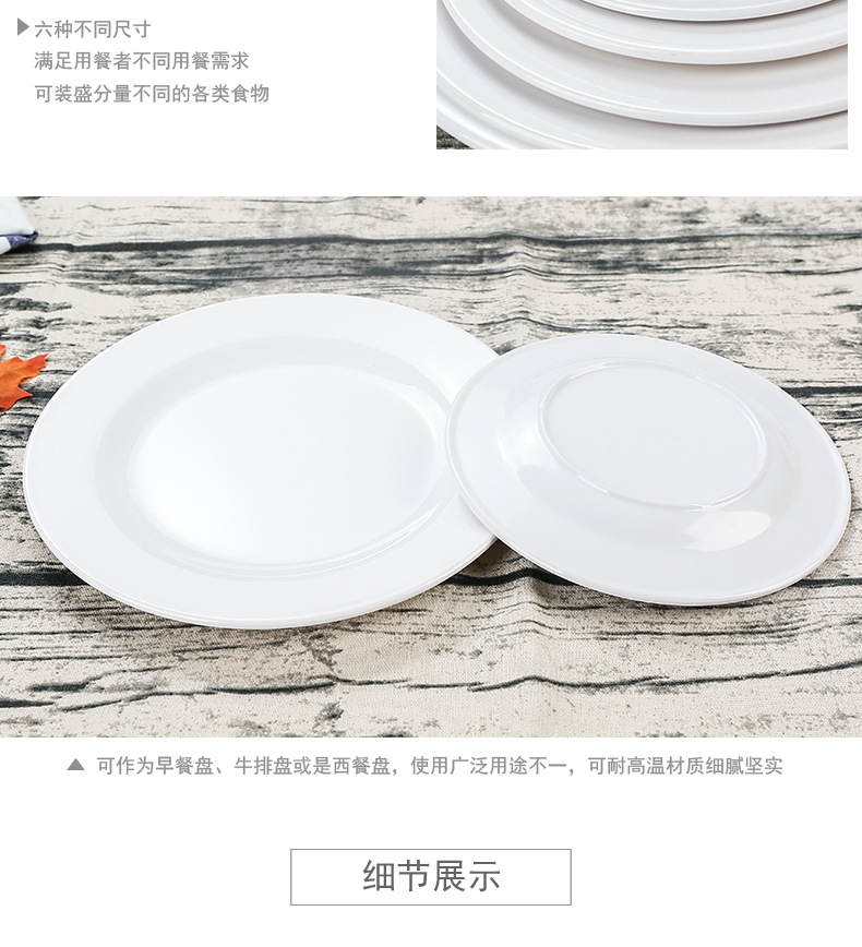 멜라민 원형 접시 상업용 모조 도자기 식기 흰색 플라스틱 플랫 플레이트 얕은 접시 셀프 서비스 디스크 디너 플레이트 뼈 접시스토어 가기