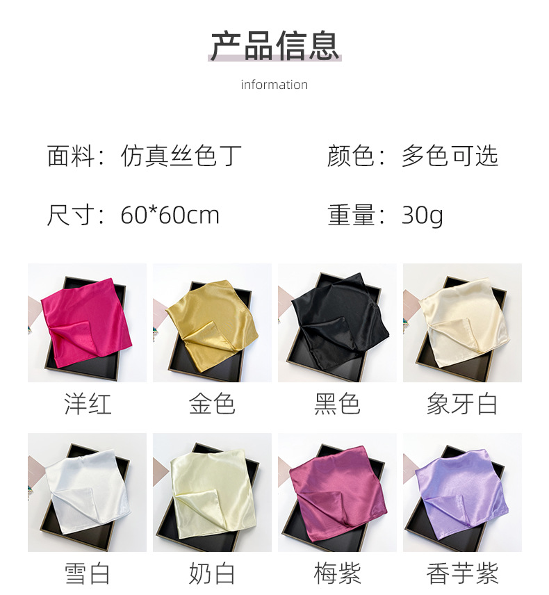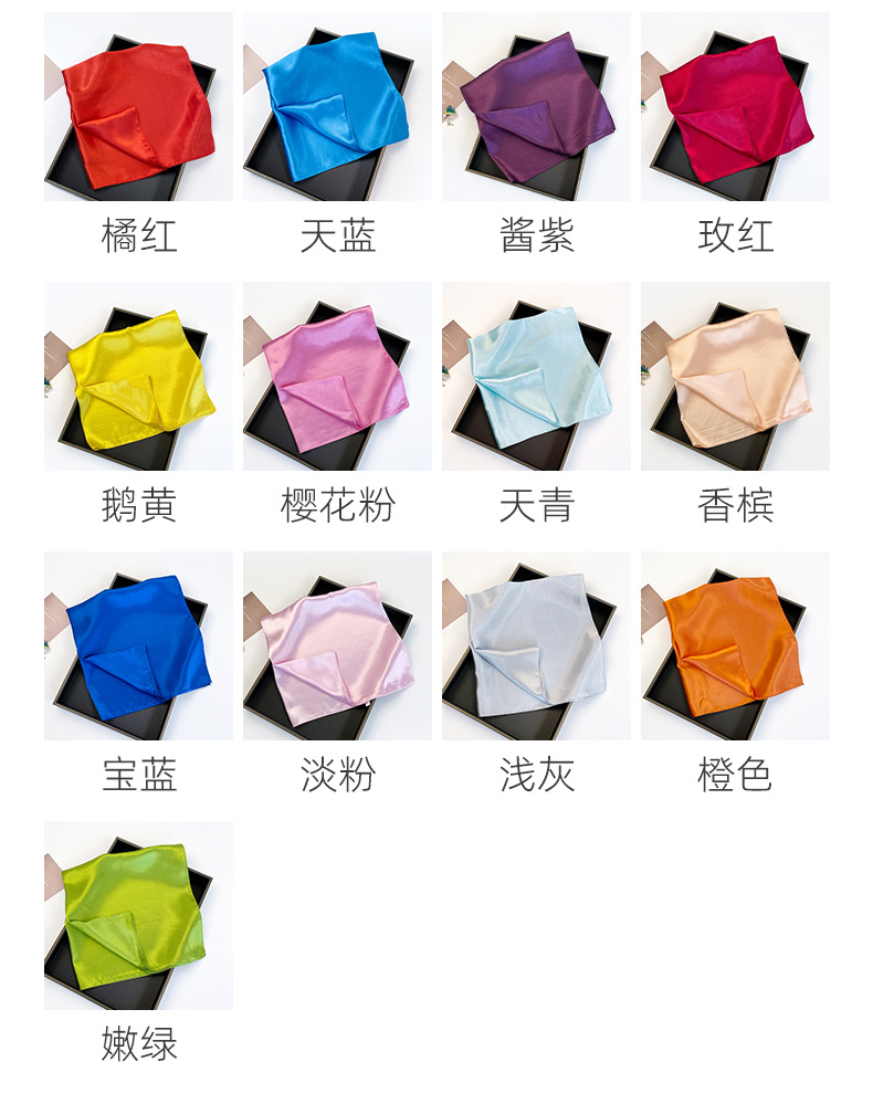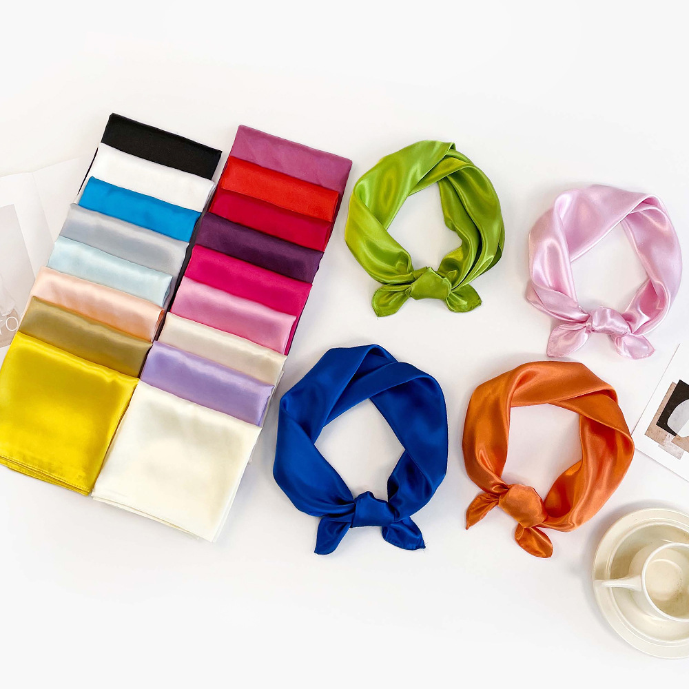 단색 작은 사각형 60cm 실크 스카프 여성의 새로운 모조 실크 컬러 작은 스카프 전문 스카프 스카프 스카프 스카프 도매