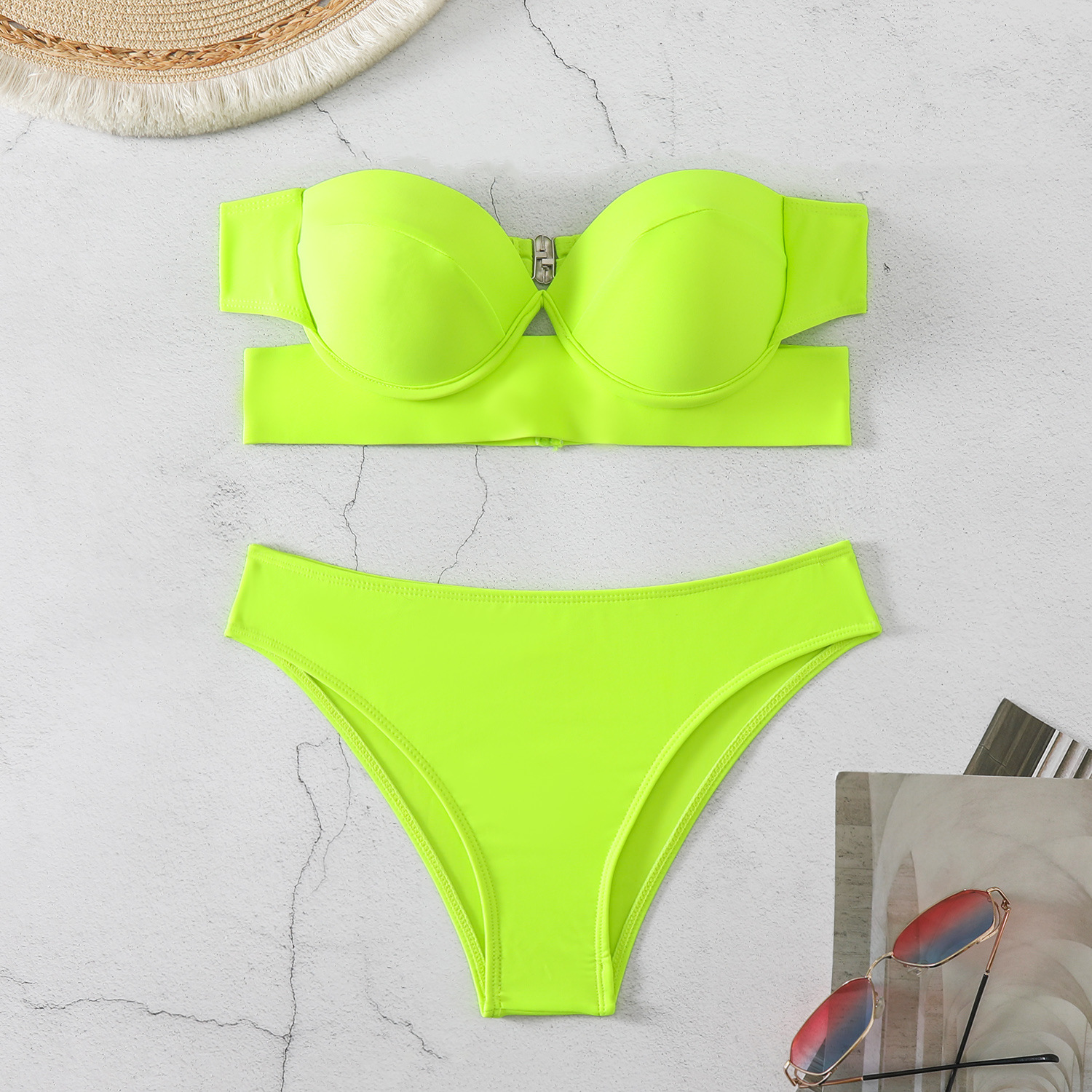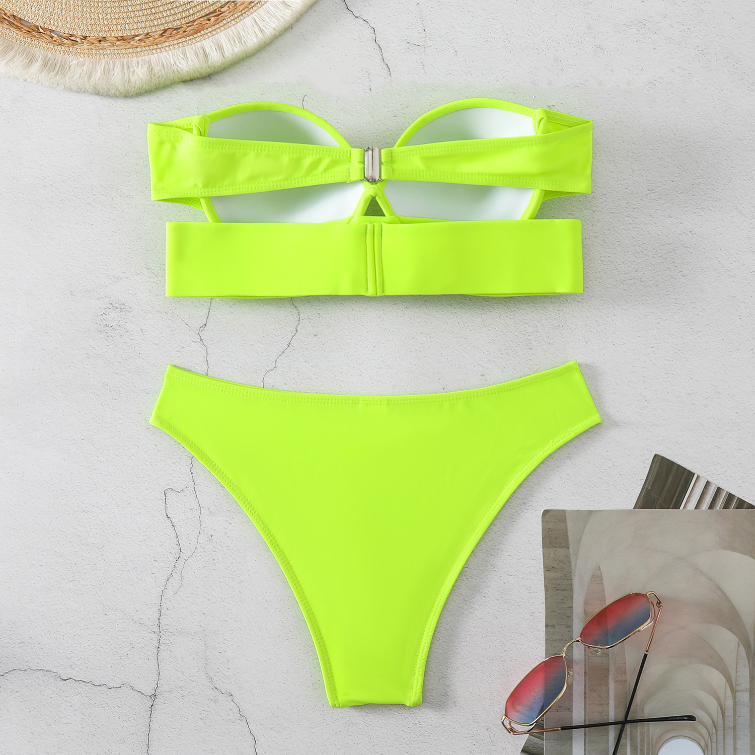 2024 유럽 및 미국 새로운 AliExpress 비키니 튜브 탑 블랙 하드 백 분할 수영복 여성 수영복 비키니스토어 가기