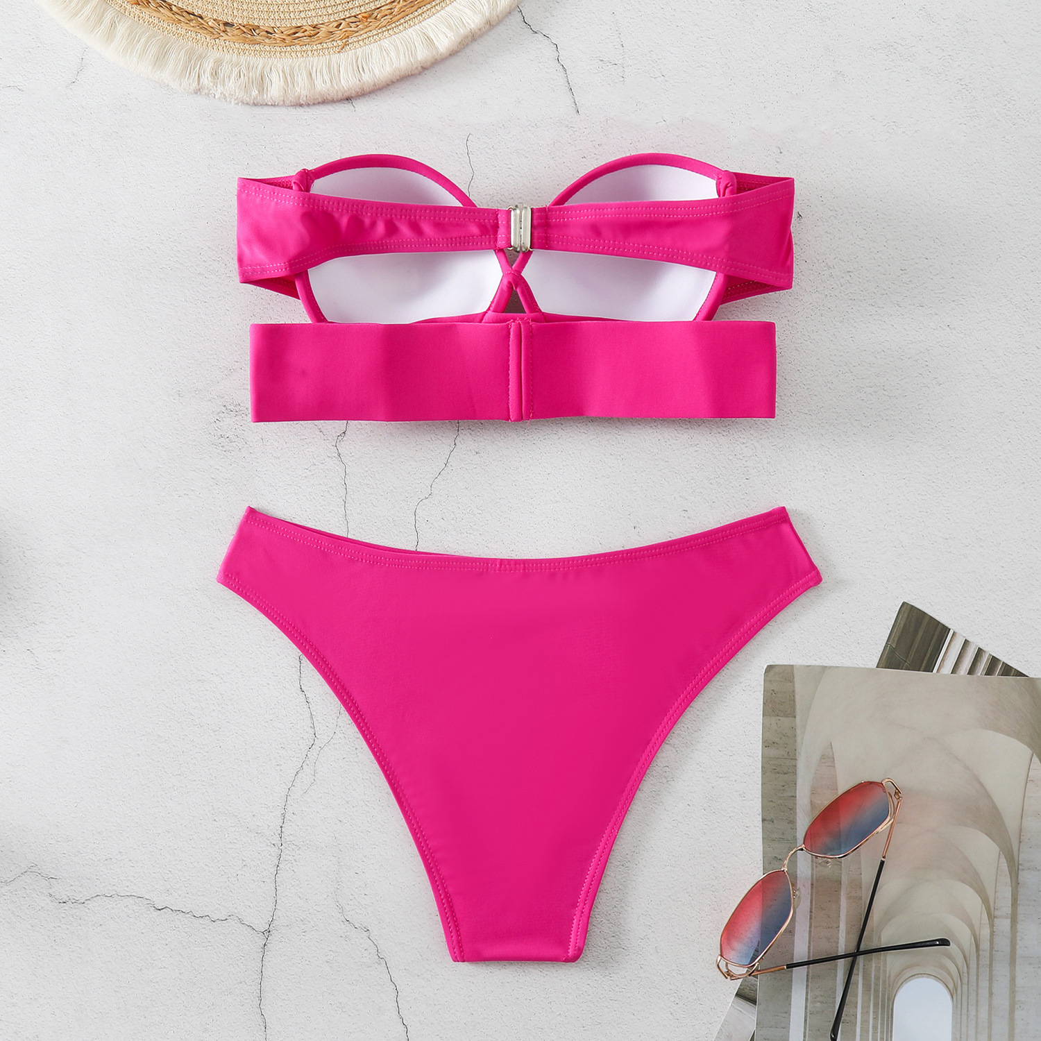 2024 유럽 및 미국 새로운 AliExpress 비키니 튜브 탑 블랙 하드 백 분할 수영복 여성 수영복 비키니
