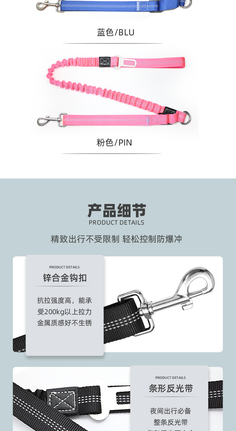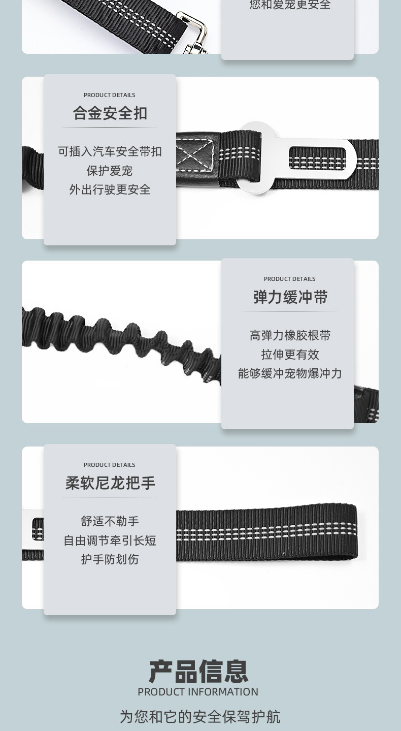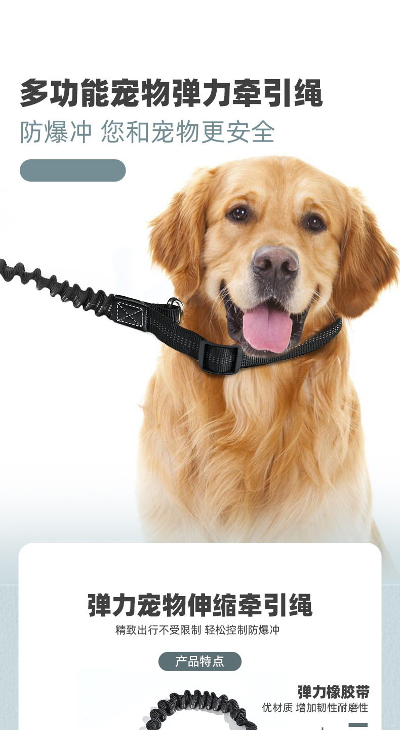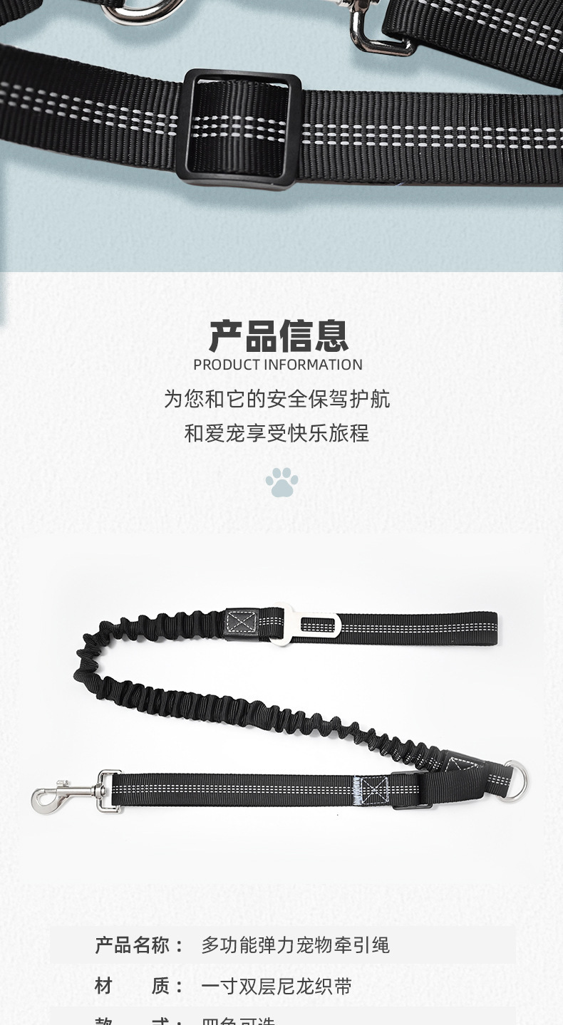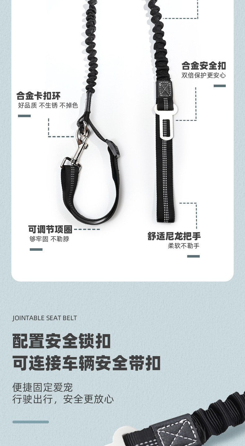애완 동물 대형, 중형 및 소형 개 견인 로프 탄성 느린 폭발 방지 개 산책 로프 자동차 애완 동물 안전 벨트 애완 동물 용품스토어 가기