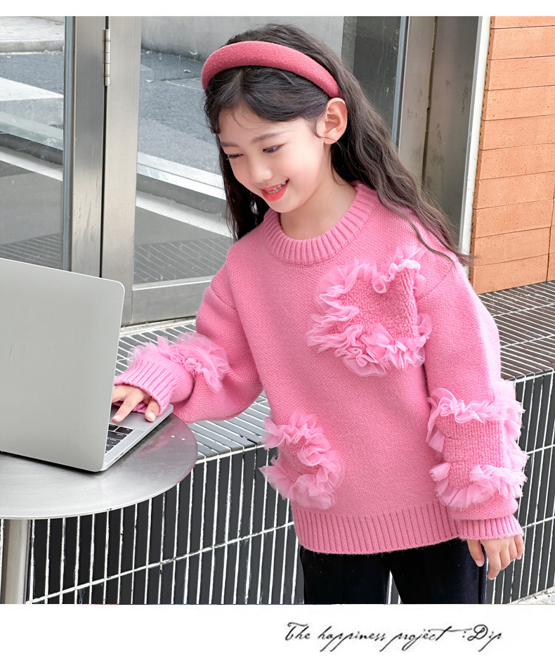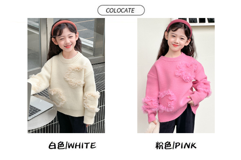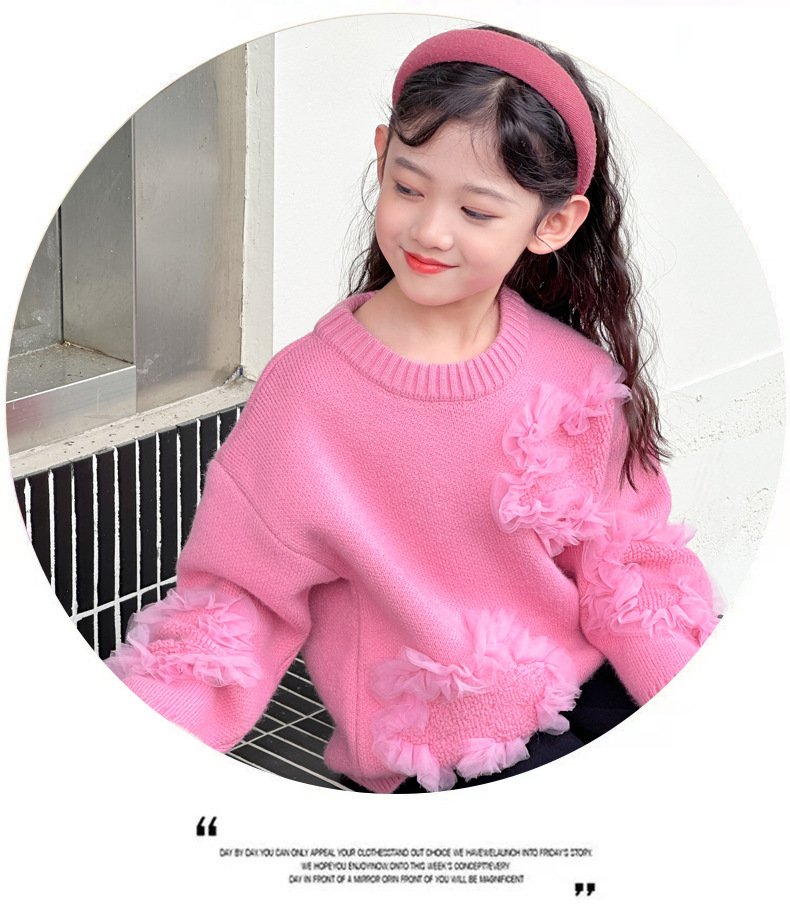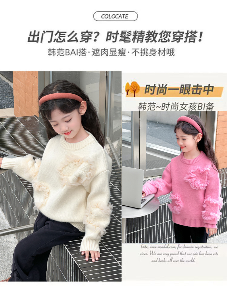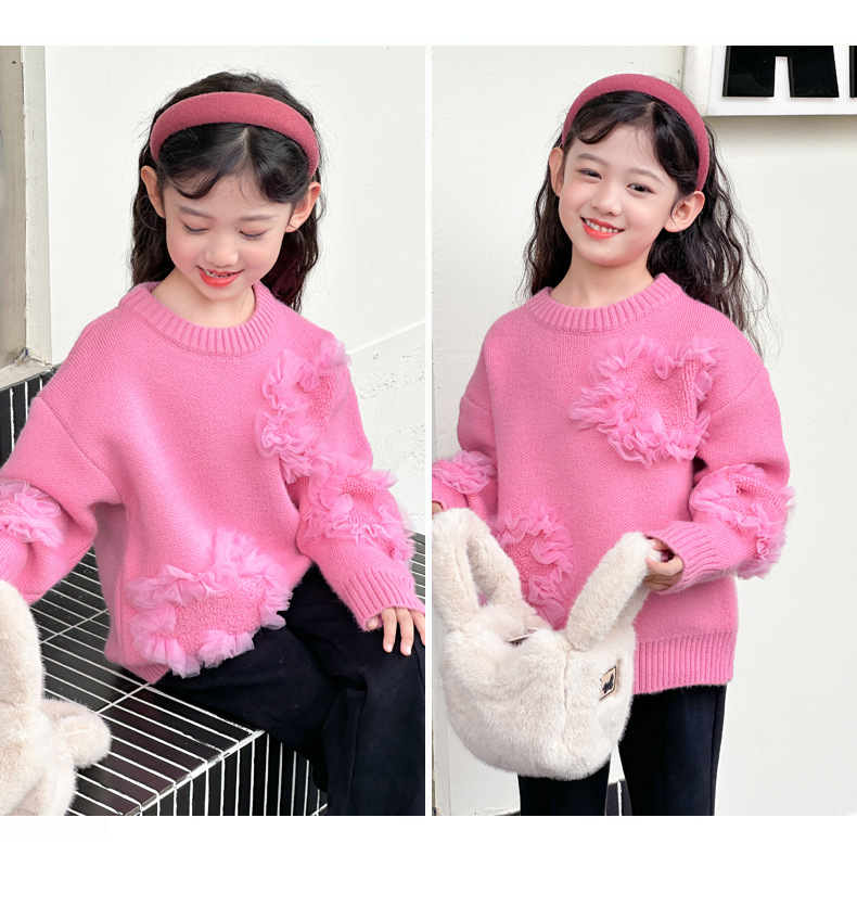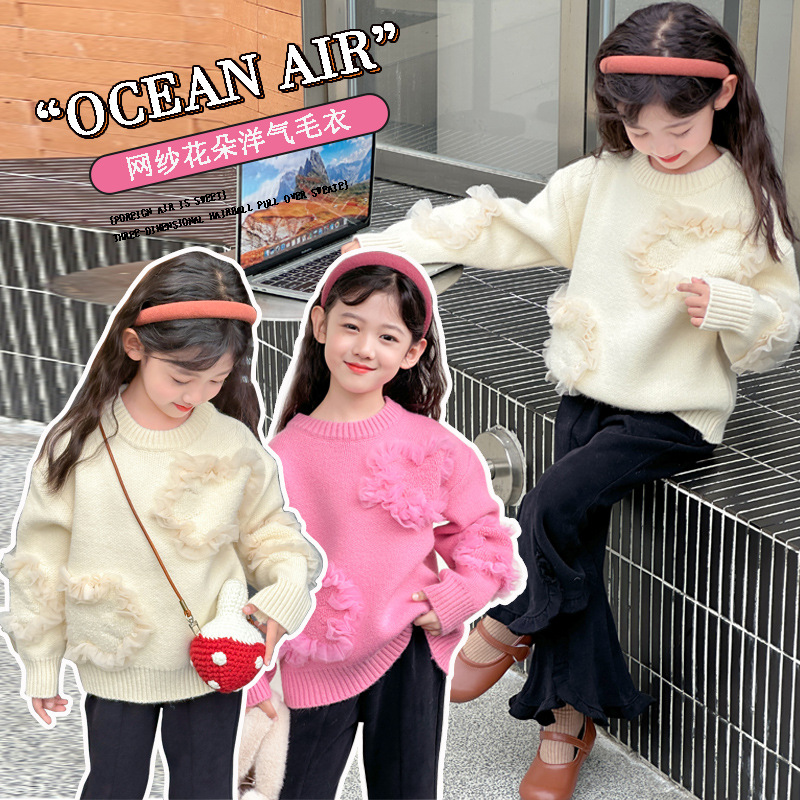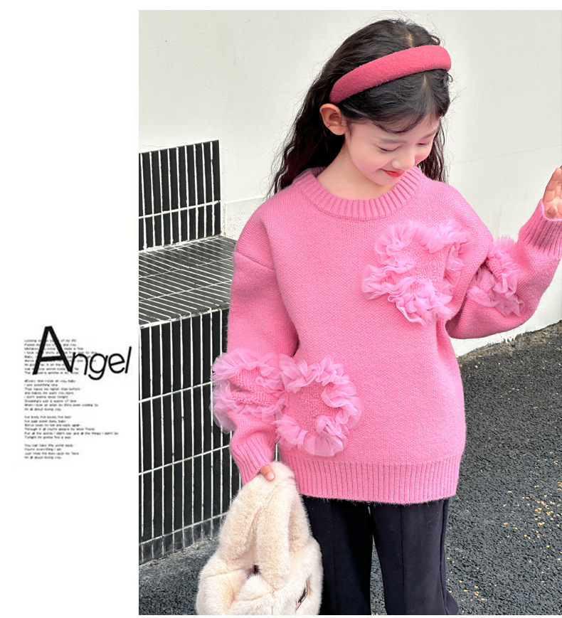 여아용 스웨터 2025 신상 가을 겨울 한국 스타일 아동복 입체 꽃무늬 니트 스웨터 아동용 두꺼운 상의 풀오버