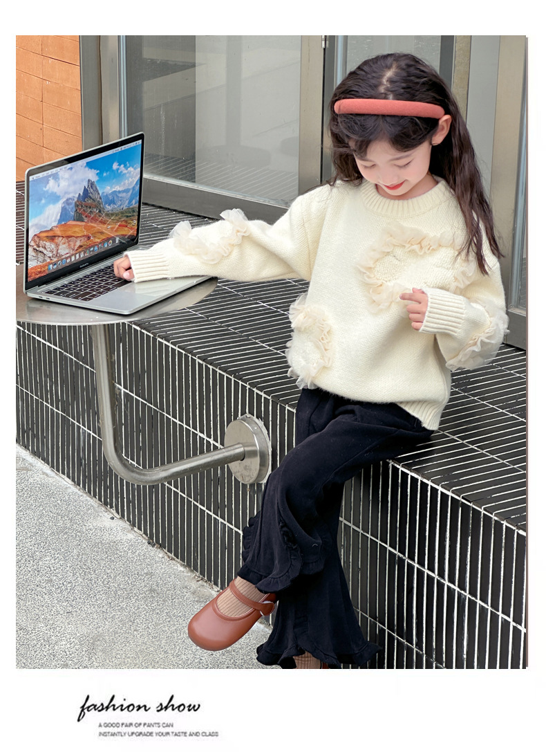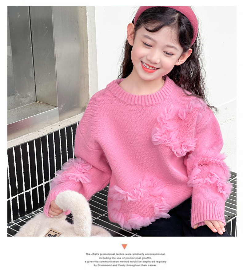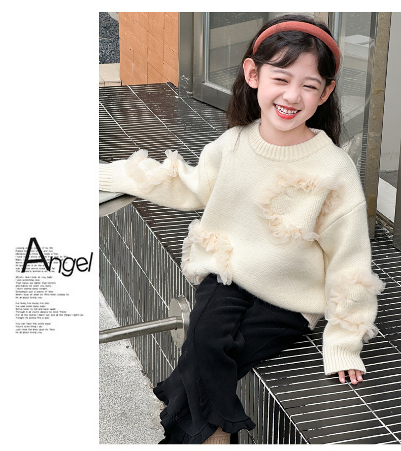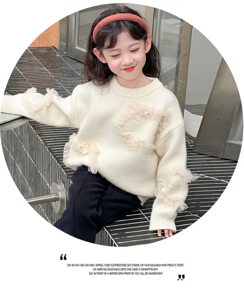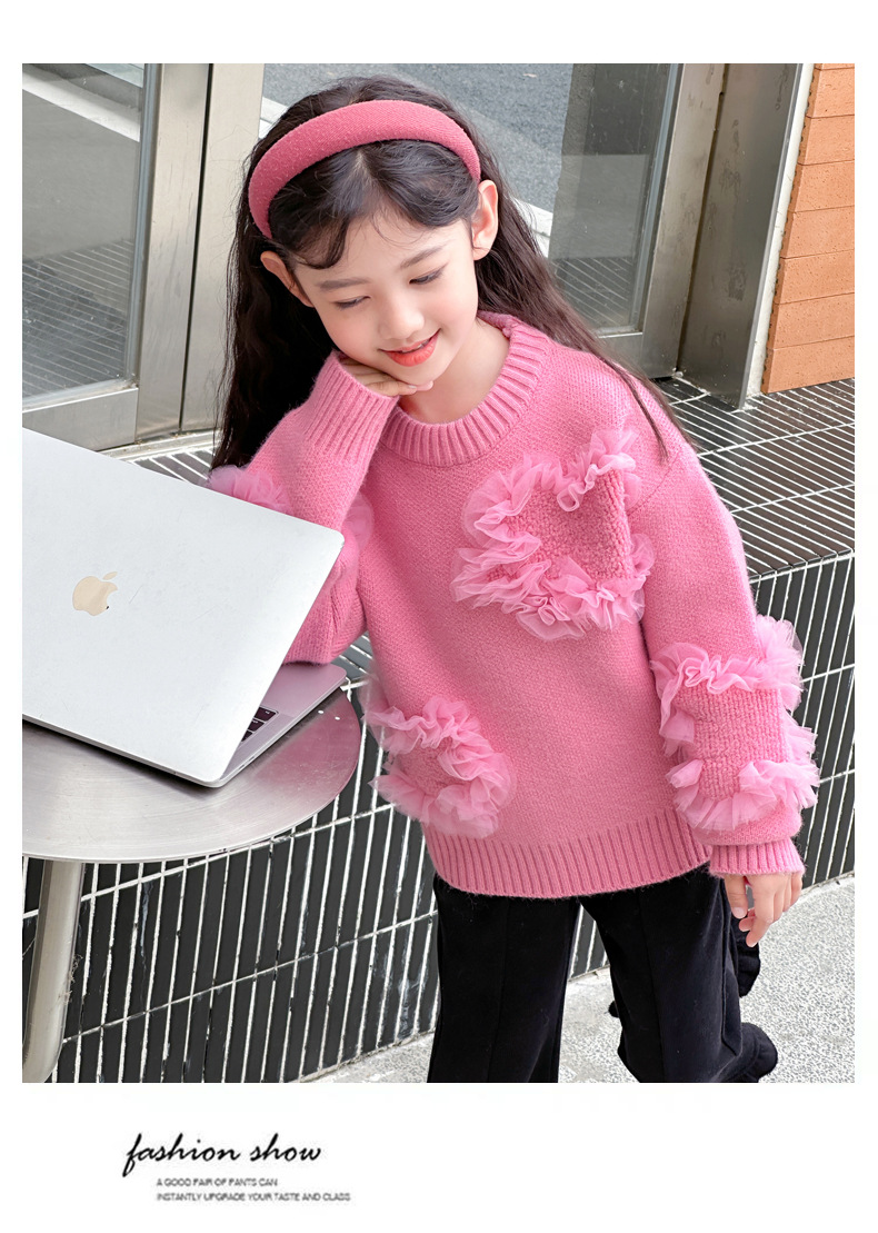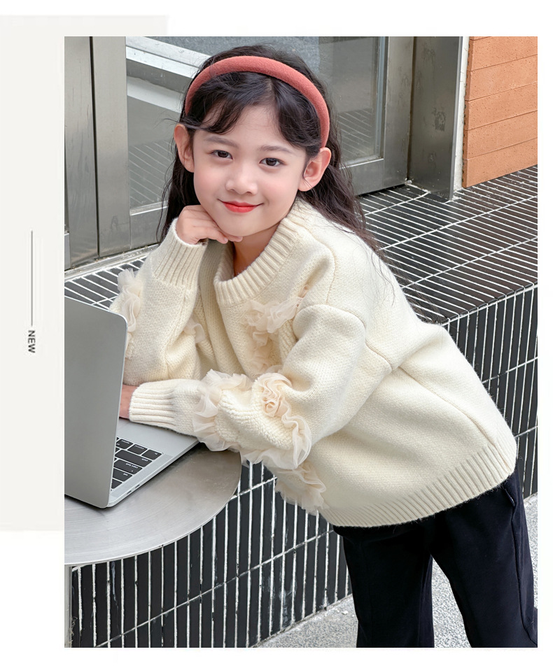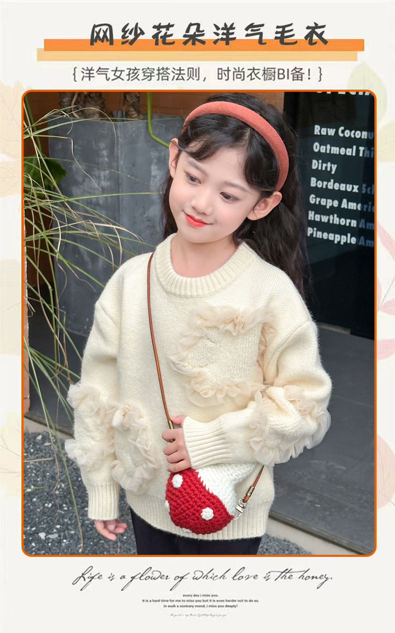 여아용 스웨터 2025 신상 가을 겨울 한국 스타일 아동복 입체 꽃무늬 니트 스웨터 아동용 두꺼운 상의 풀오버