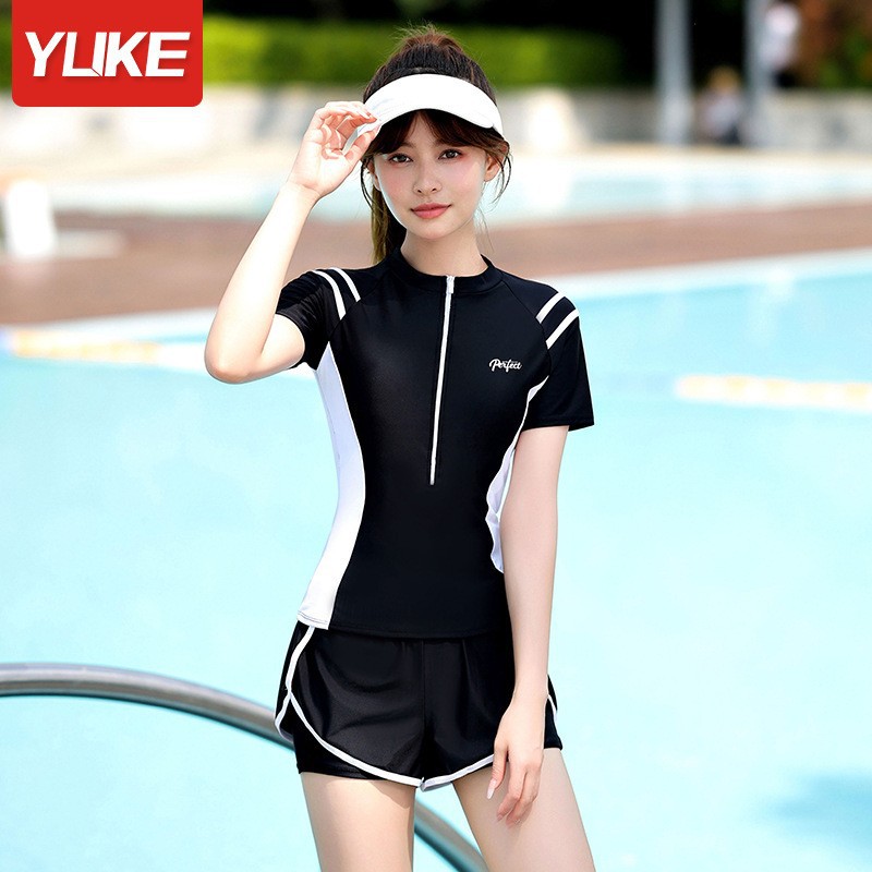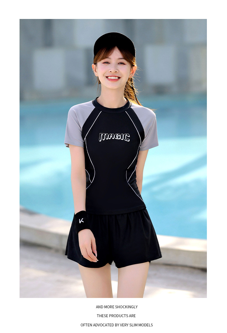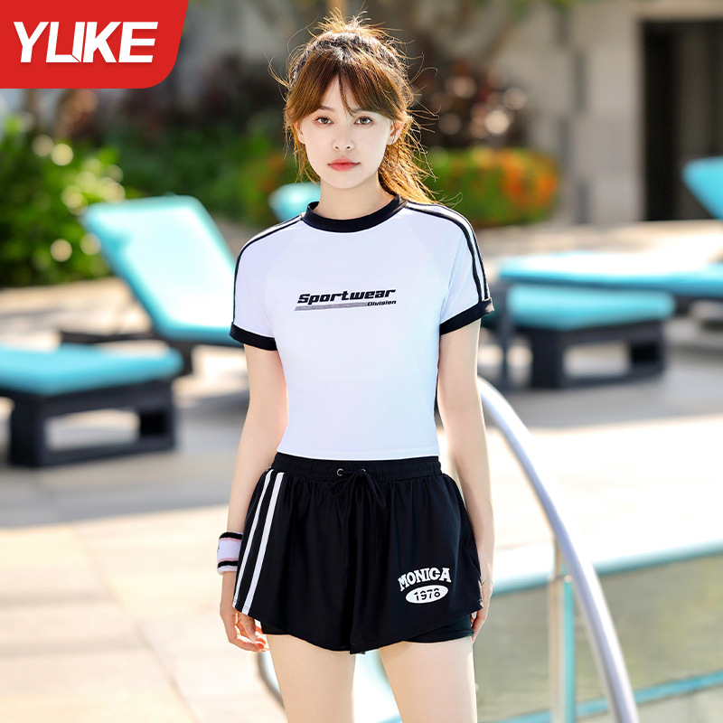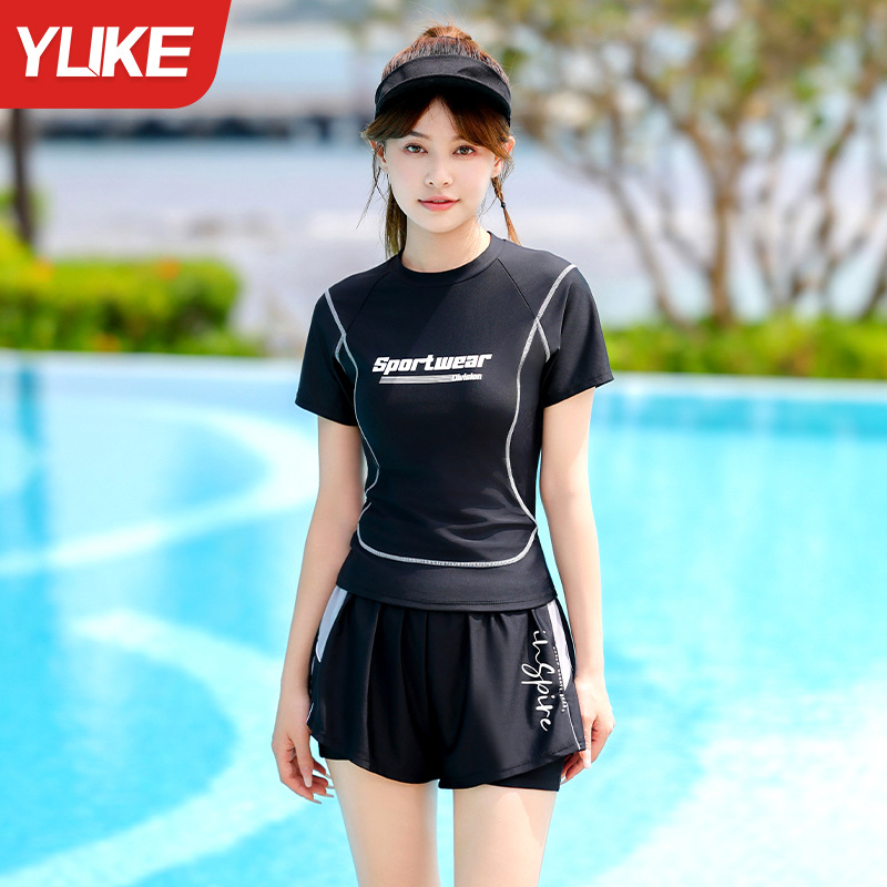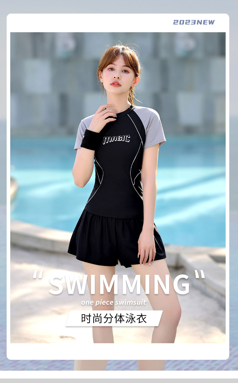 수영복 여성용 2023 새로운 스타일 보수적 인 스플릿 수영복 배꼽 덮는 슬리밍 여성용 수영 세트스토어 가기