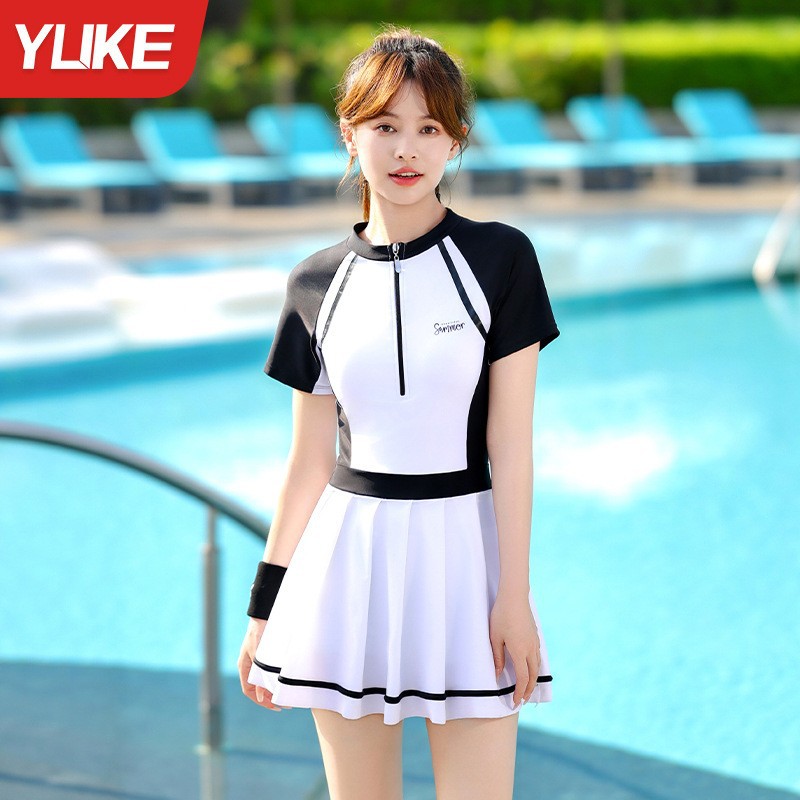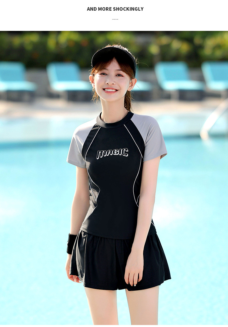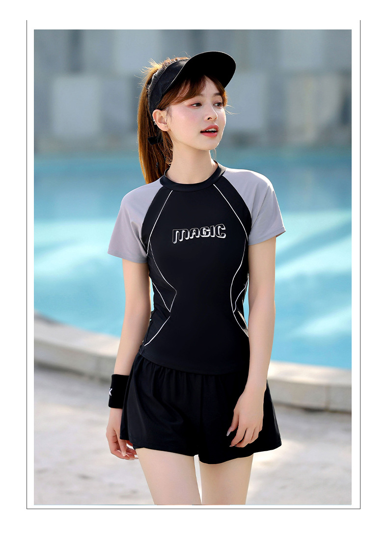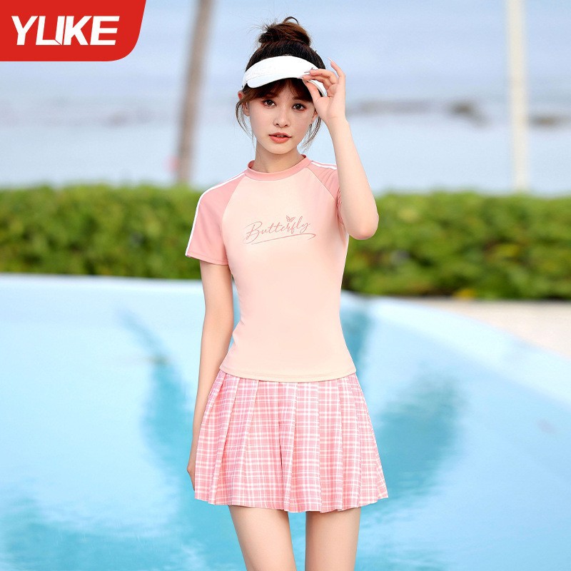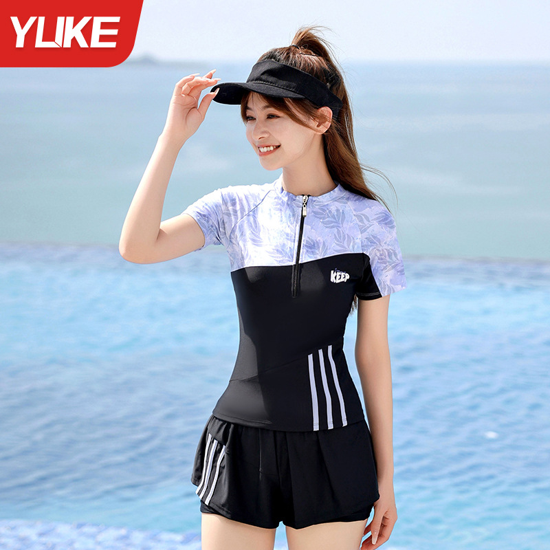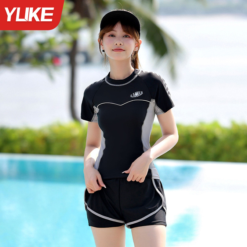 수영복 여성용 2023 새로운 스타일 보수적 인 스플릿 수영복 배꼽 덮는 슬리밍 여성용 수영 세트스토어 가기