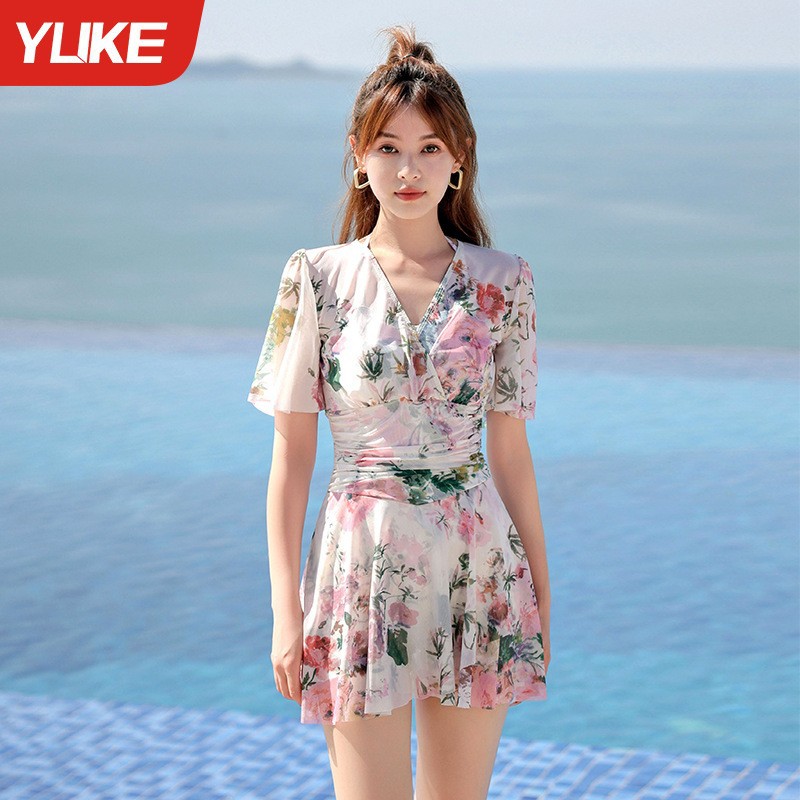 수영복 여성용 2023 새로운 스타일 보수적 인 스플릿 수영복 배꼽 덮는 슬리밍 여성용 수영 세트