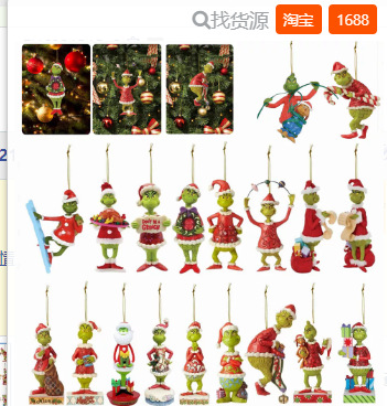 2023 새로운 녹색 머리 괴물 크리스마스 장식 장식품 만화 평면 크리스마스 트리 펜던트 크리스마스 자동차 인테리어스토어 가기