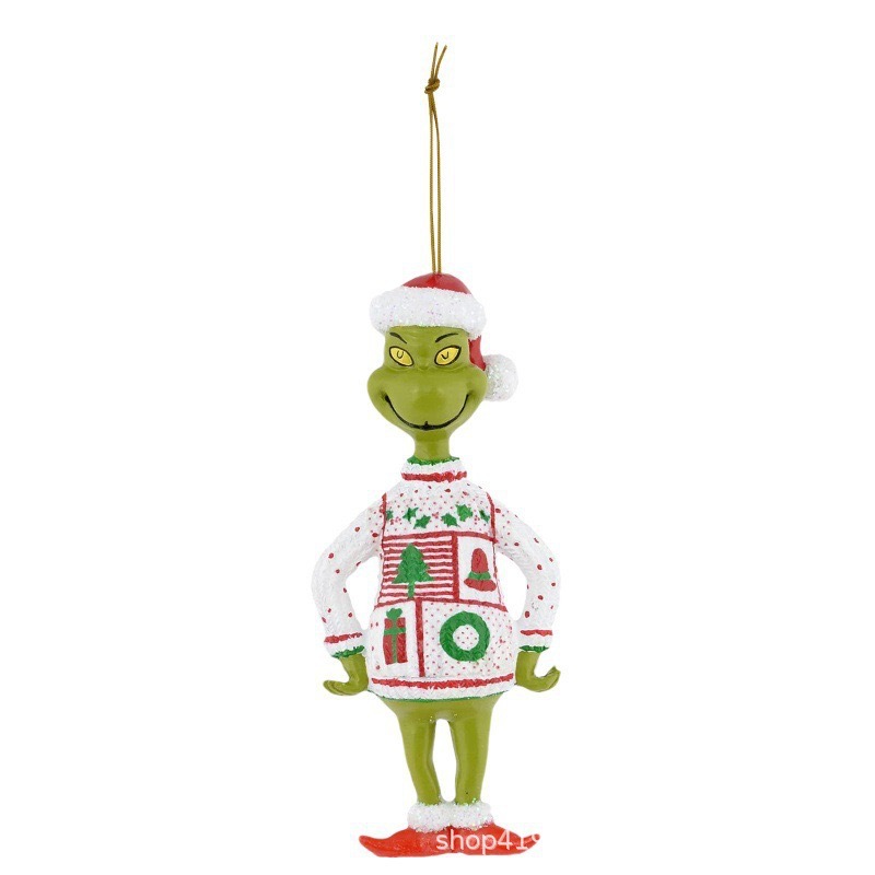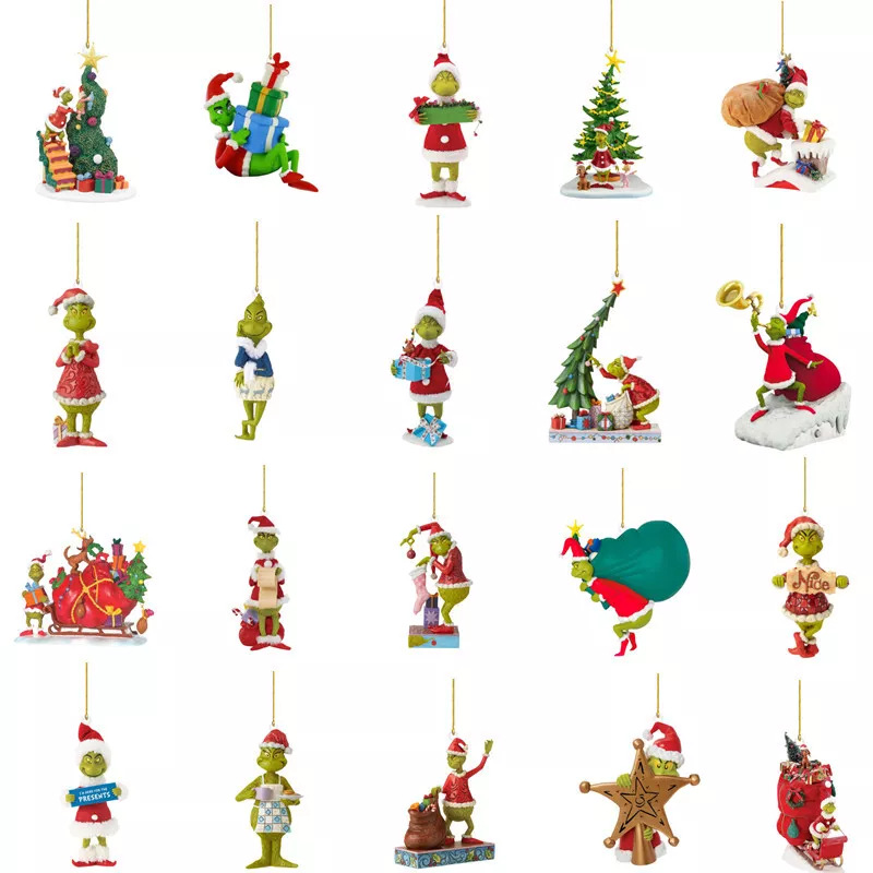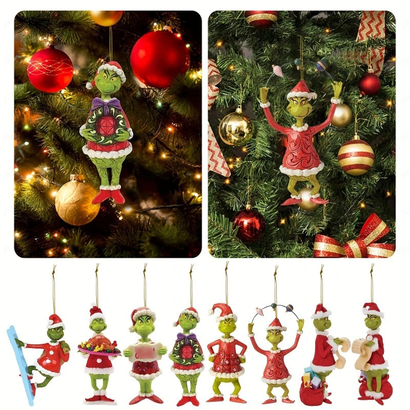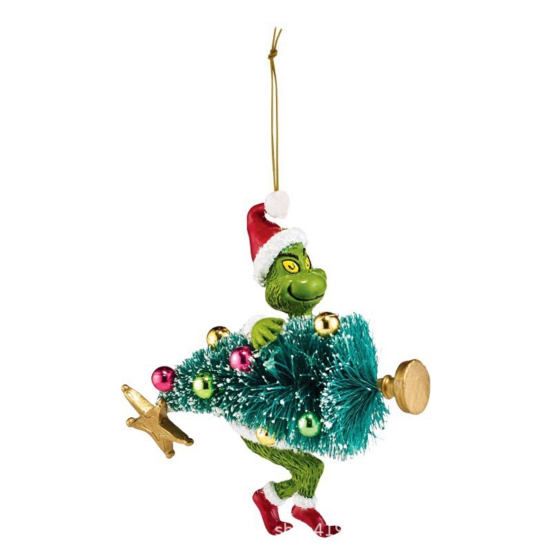 2023 새로운 녹색 머리 괴물 크리스마스 장식 장식품 만화 평면 크리스마스 트리 펜던트 크리스마스 자동차 인테리어