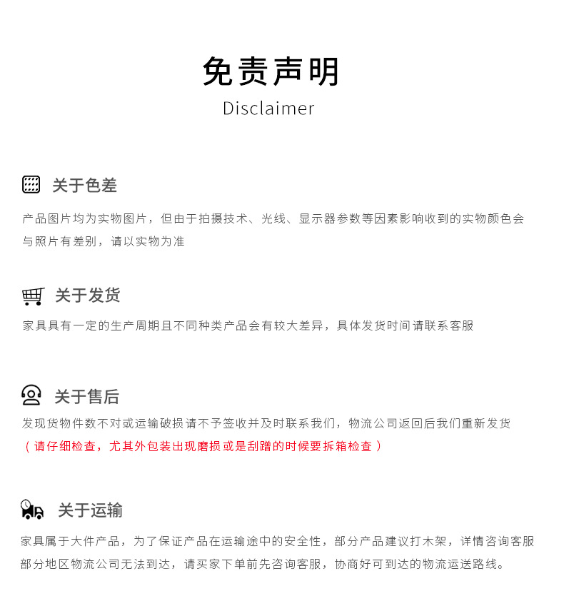 温馨提示:本商品属于大件定制产品,是根据每个客户不同的要求来进行定制,(自助下单订单,默认主图第一张颜色)故不支持退换。买卖双方订单经确定后,就会安排到工厂生产,小问题/其他问题等,要改动的。12-24小时内尽快联系我们告知,订单一旦开始生产,期间如若发生订单终止,买方则需要承担订单百分之五十的损耗给卖方,望悉知理解。