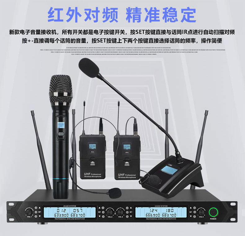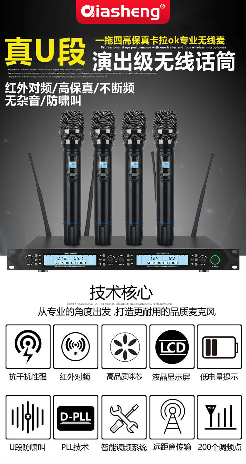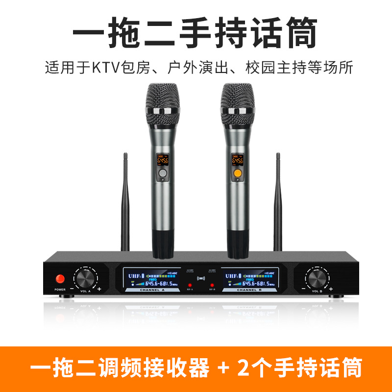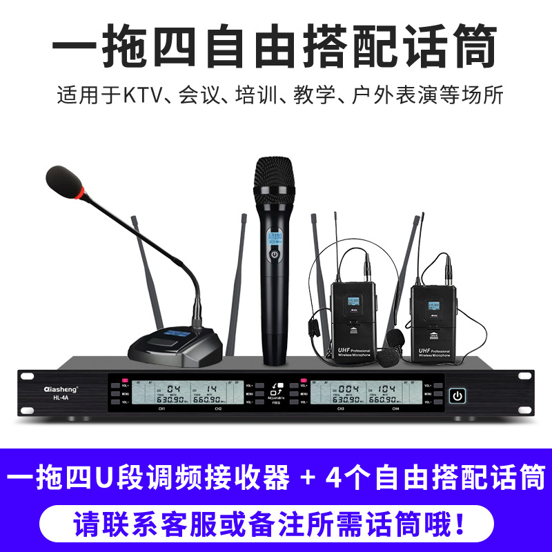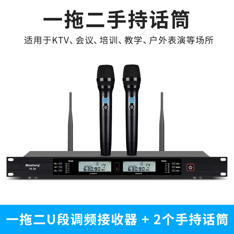 QIASHENG 마이크 공연 회의 전문 FM U-밴드 가정용 노래 KTV 무선 마이크 1:2