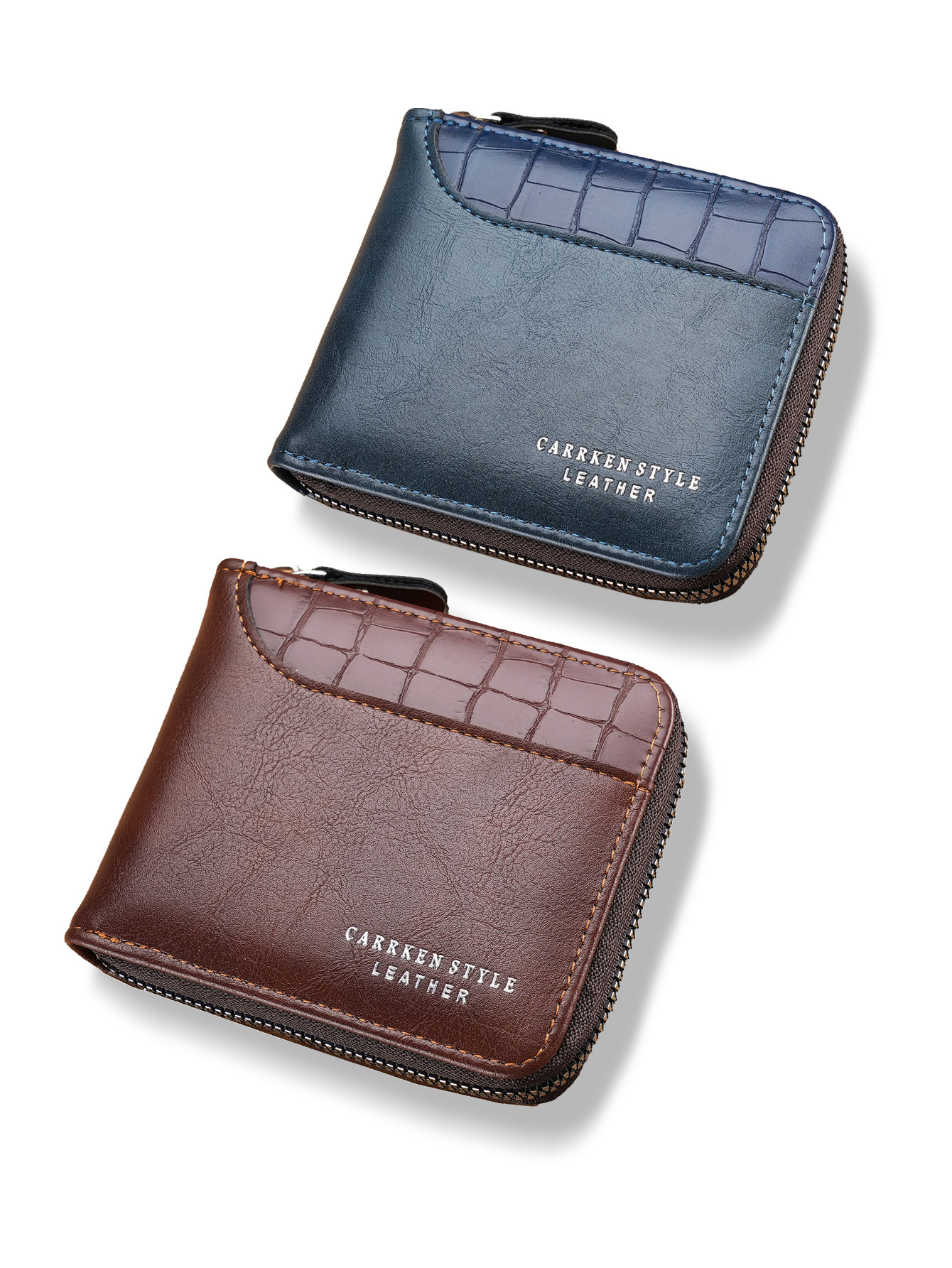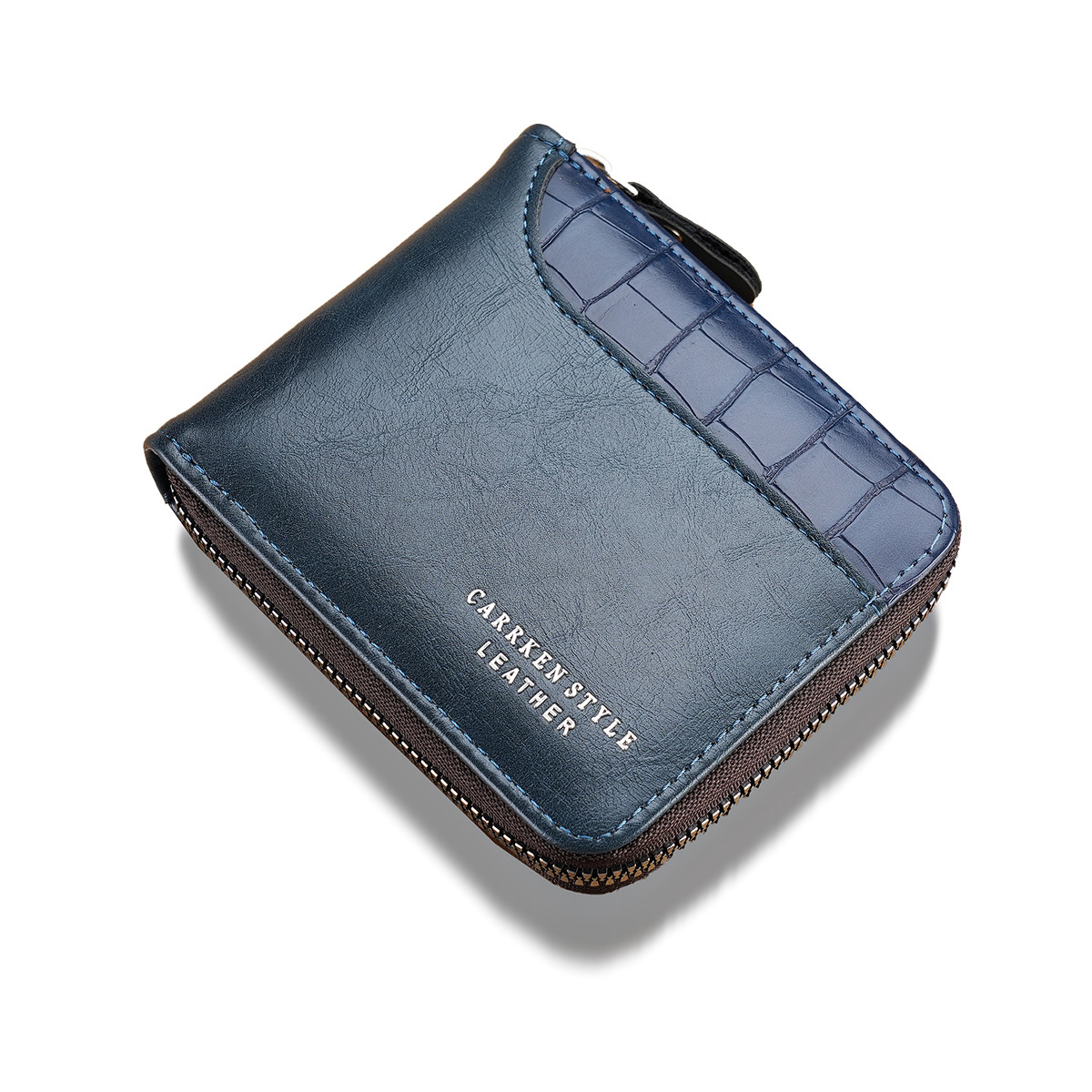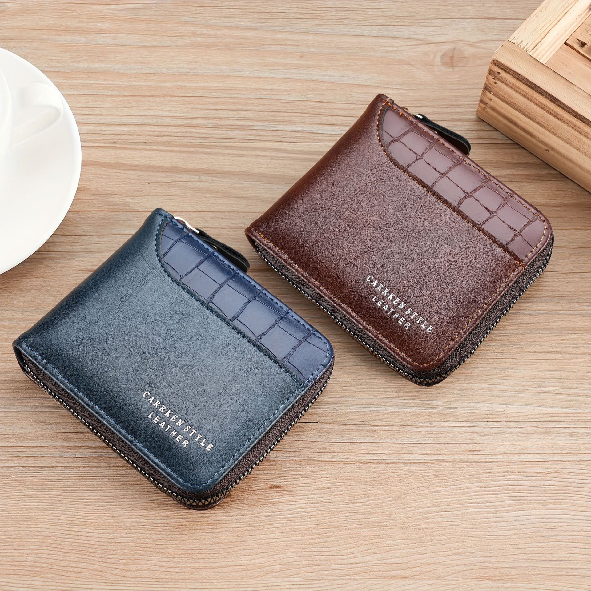 새로운 남자의 짧은 돌 패턴 지갑 수평 가장자리 덮개 지퍼 작은 지갑 가죽 접합 수평 멀티 카드 카드 홀더