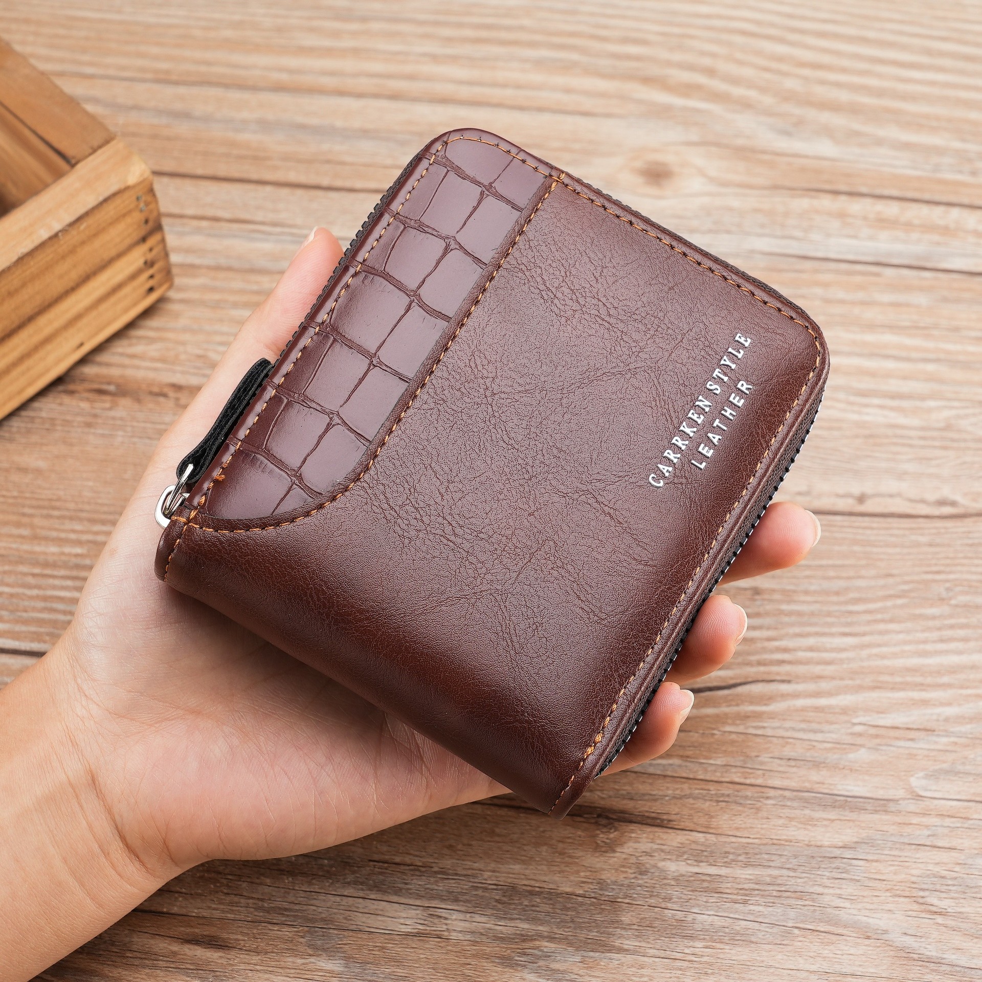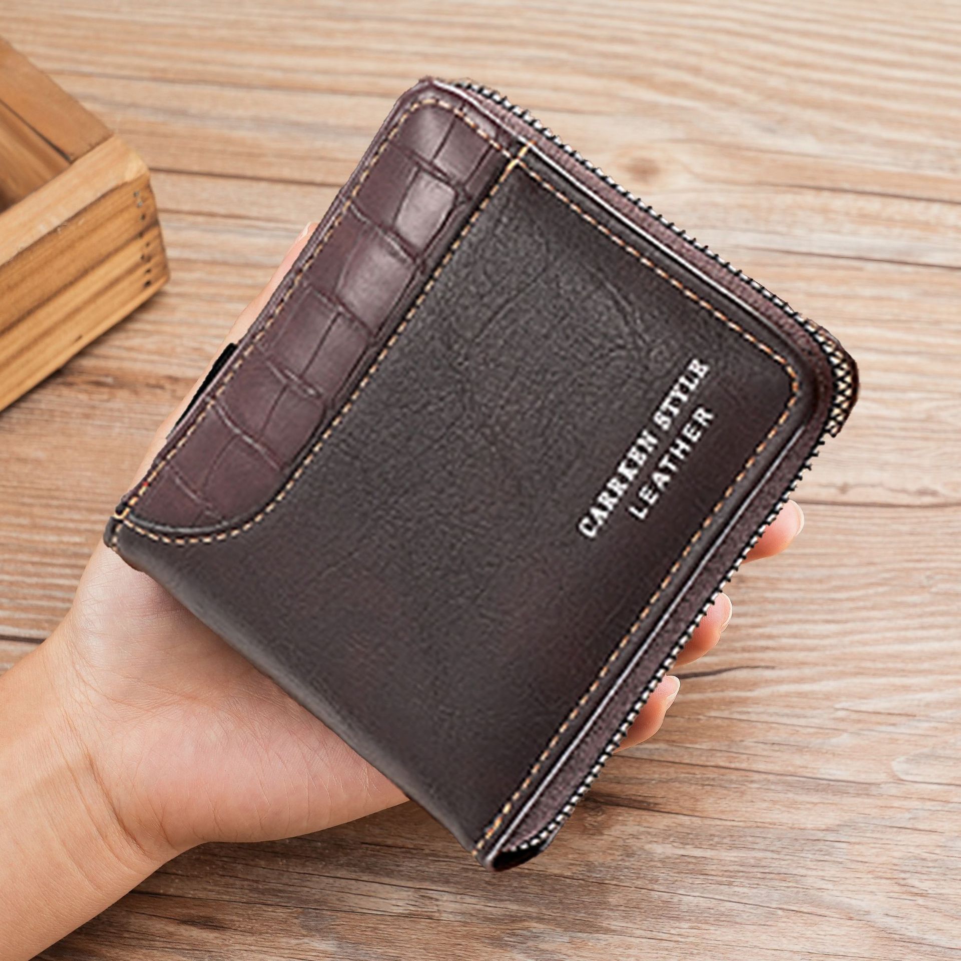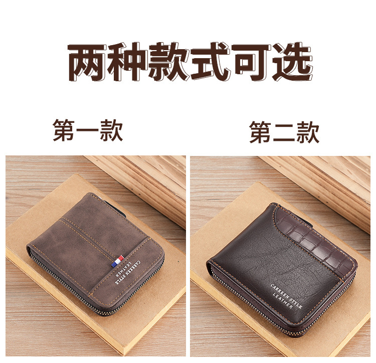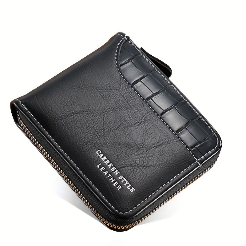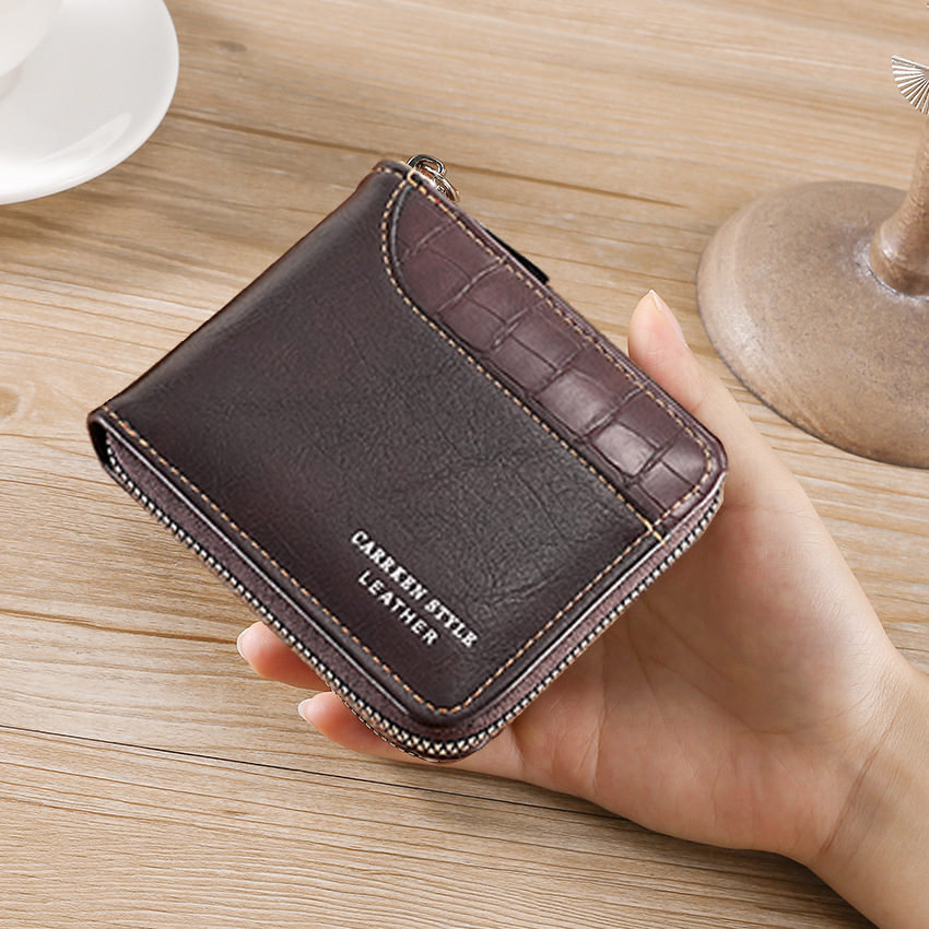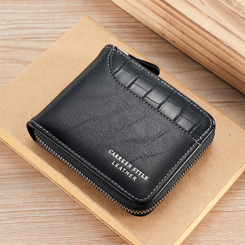 새로운 남자의 짧은 돌 패턴 지갑 수평 가장자리 덮개 지퍼 작은 지갑 가죽 접합 수평 멀티 카드 카드 홀더스토어 가기