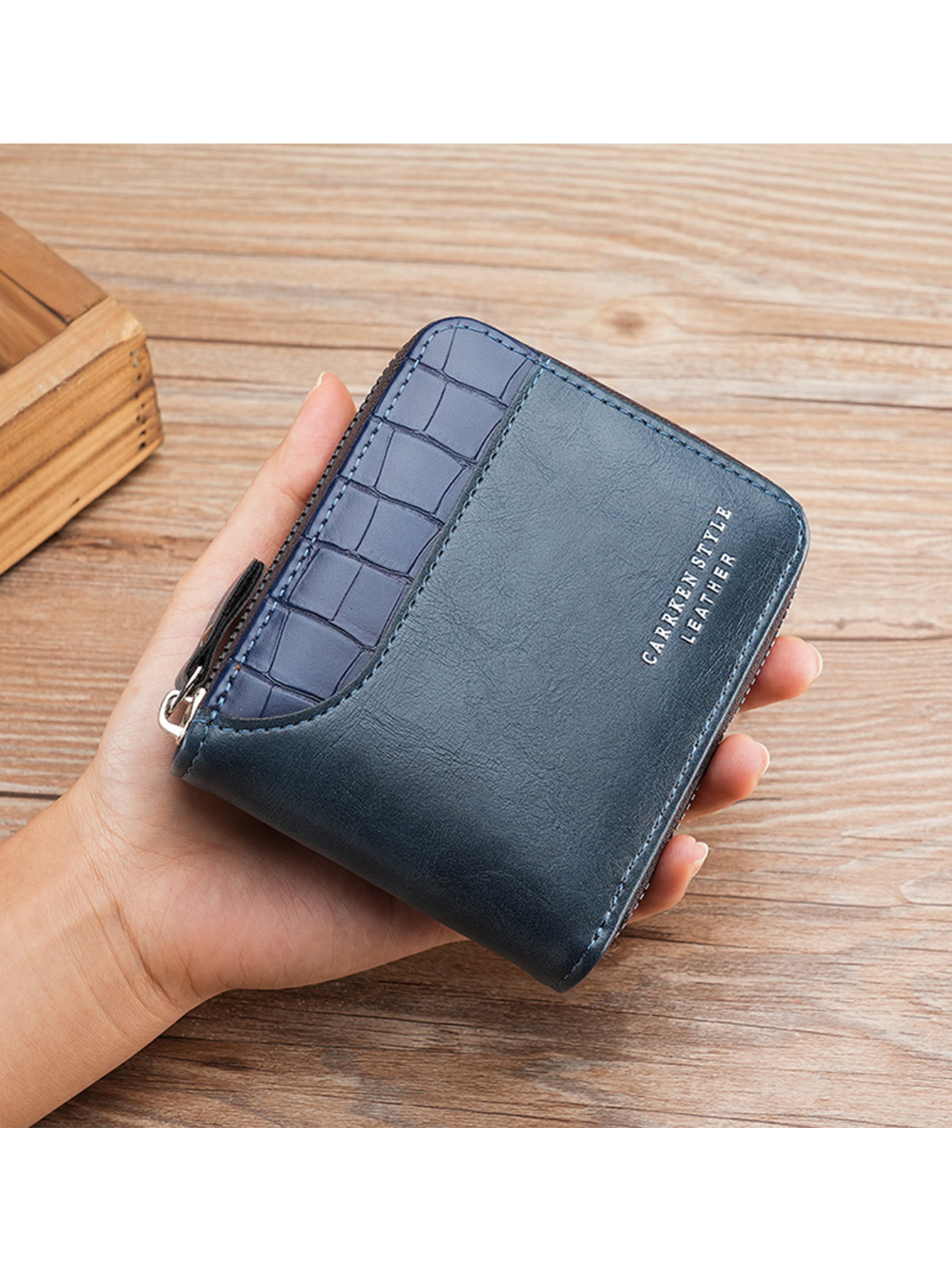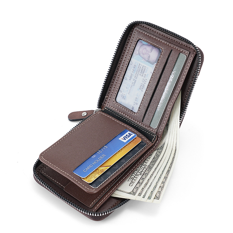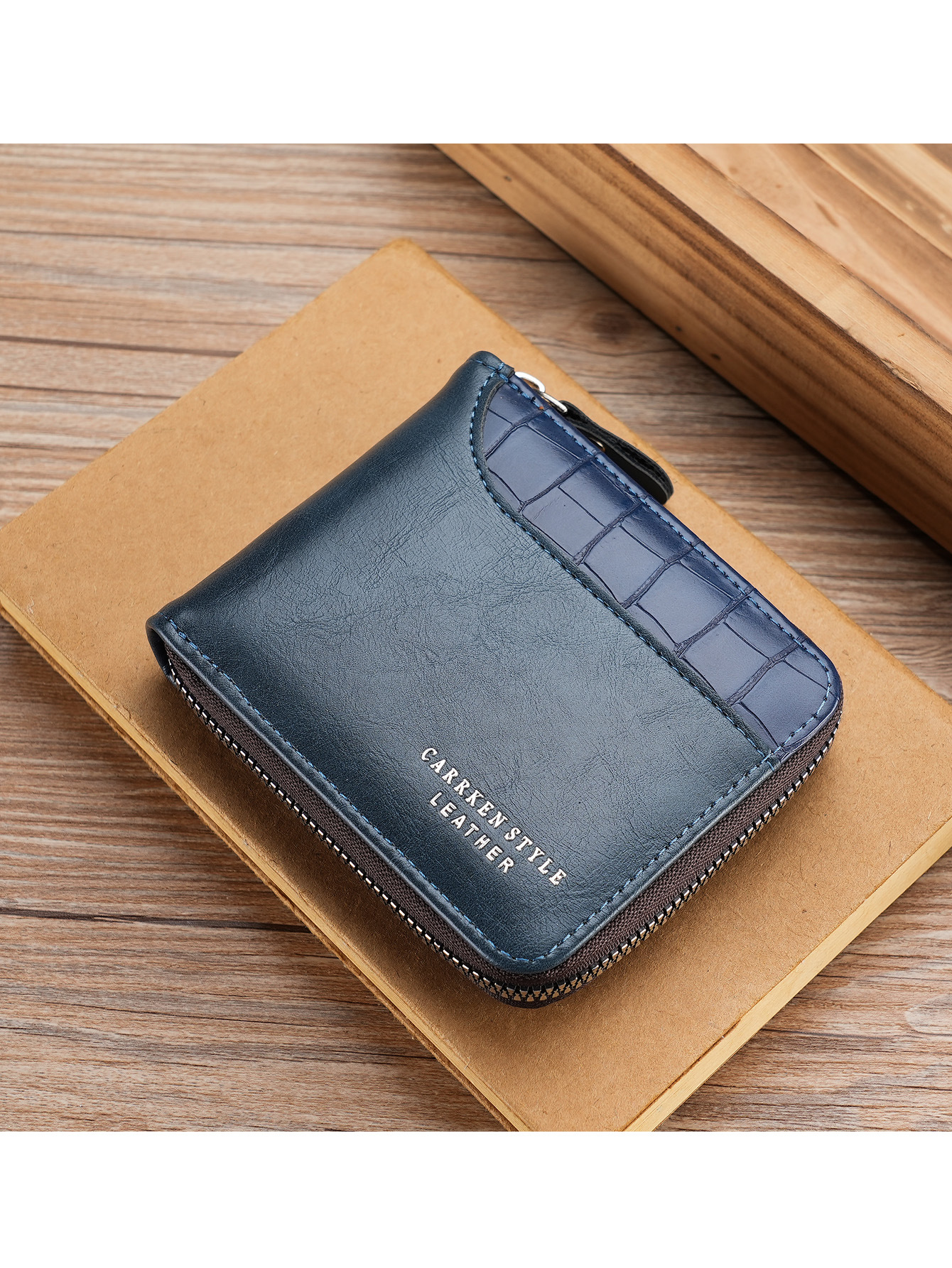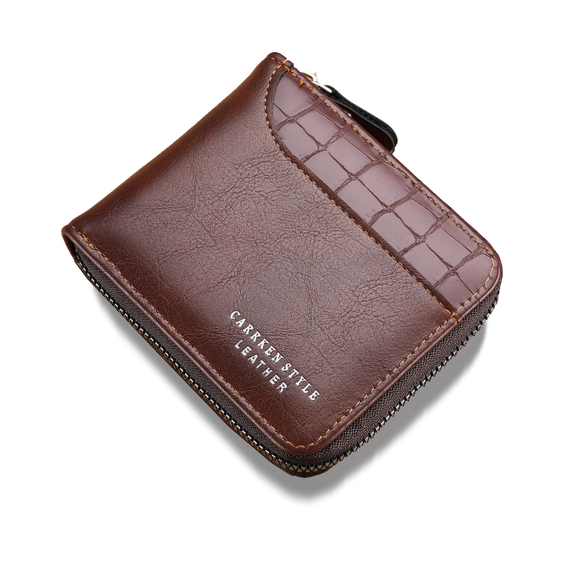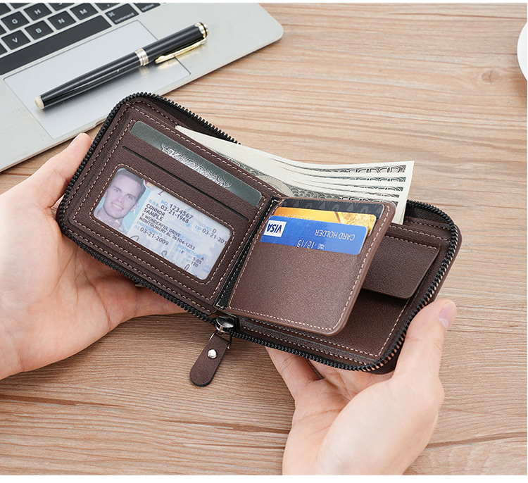 새로운 남자의 짧은 돌 패턴 지갑 수평 가장자리 덮개 지퍼 작은 지갑 가죽 접합 수평 멀티 카드 카드 홀더스토어 가기