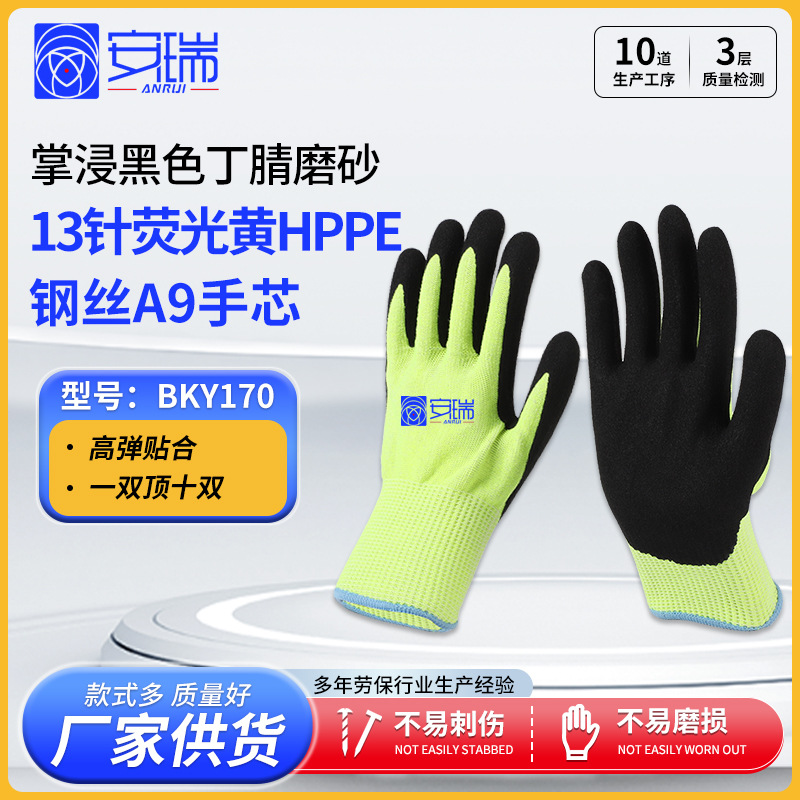 도매 니트릴 젖빛 장갑 담근 나일론 아크릴 폴리 에스테르 내마모성 미끄럼 방지 보호 장갑