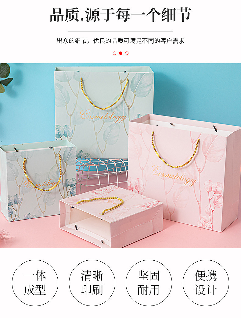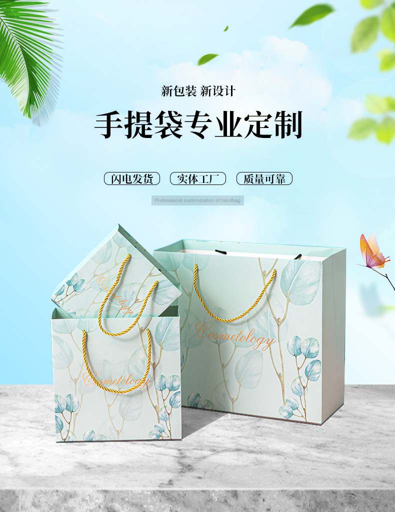 작은 신선한 선물 가방 파란 잎 핸드백 패션 선물 가방 화장품 가방 한국 종이 가방 하이 엔드 감각