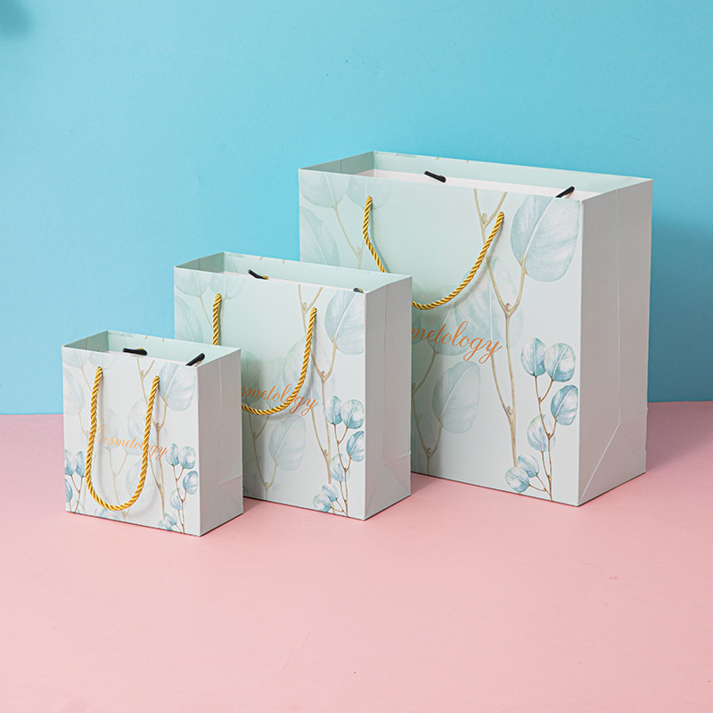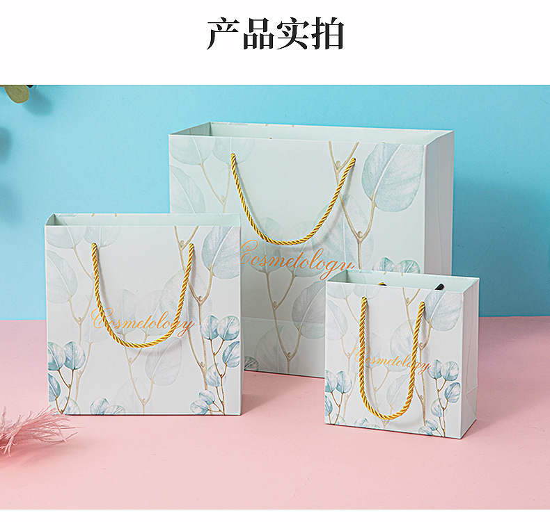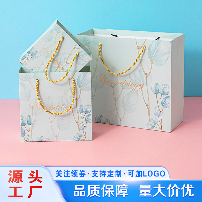 작은 신선한 선물 가방 파란 잎 핸드백 패션 선물 가방 화장품 가방 한국 종이 가방 하이 엔드 감각스토어 가기