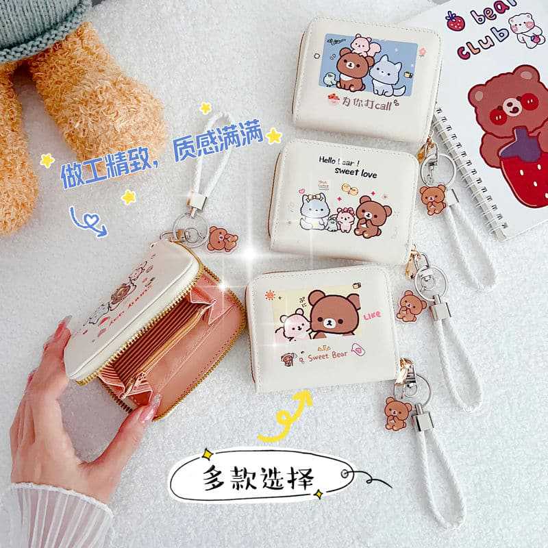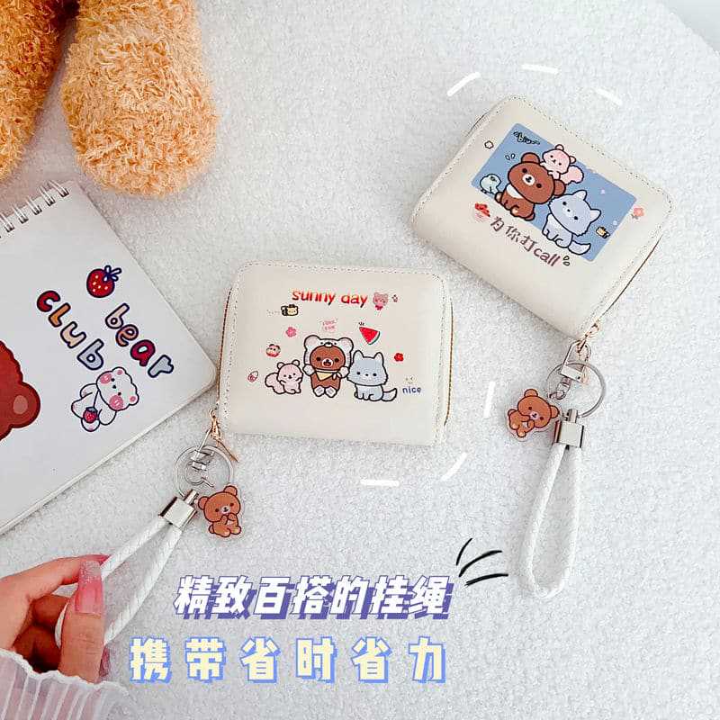 동전 지갑 귀여운 여성용 고급 소형 학생 카드 가방 대용량 한국식 만화 지퍼 안티 가우싱