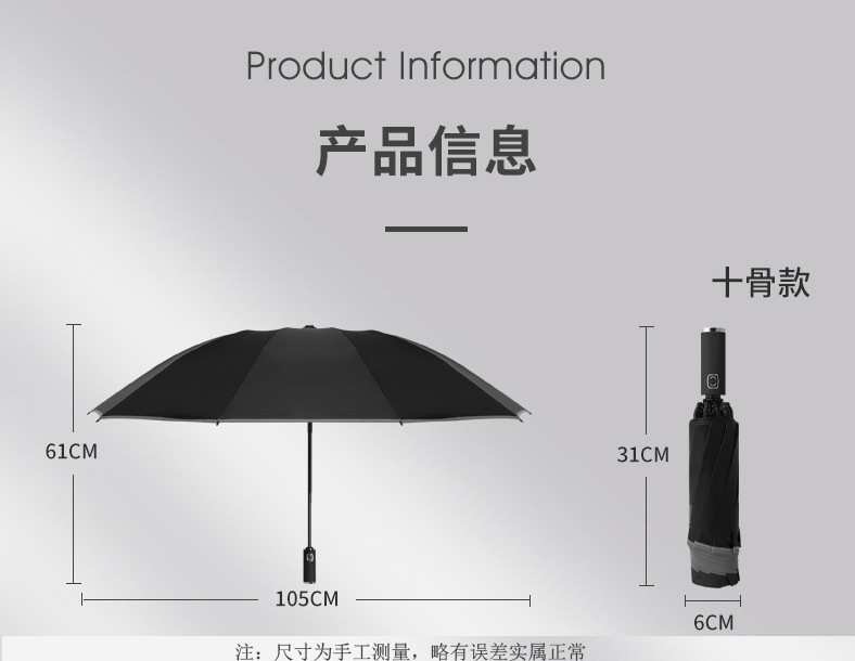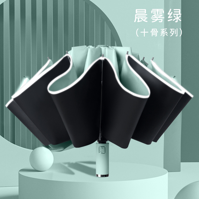 • 10 뼈 역 우산 접는 클래식 블랙