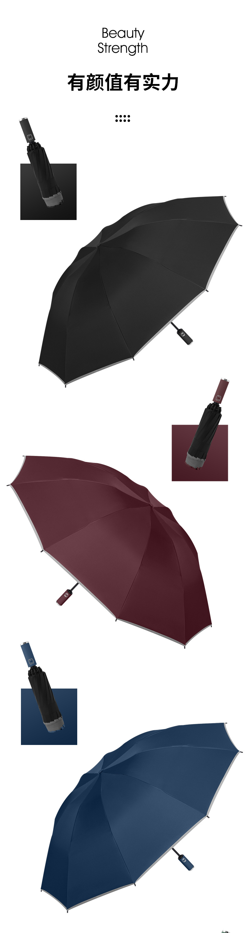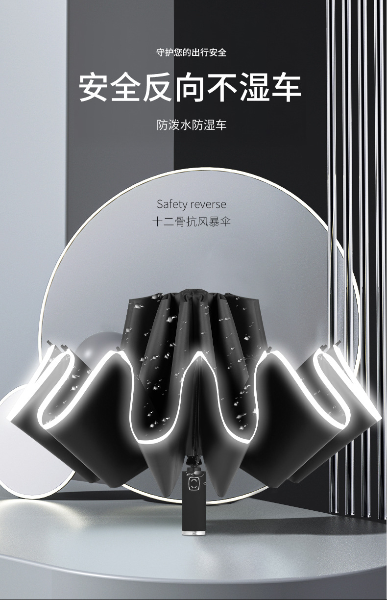 • 12 뼈 반전 우산 접는 네이비