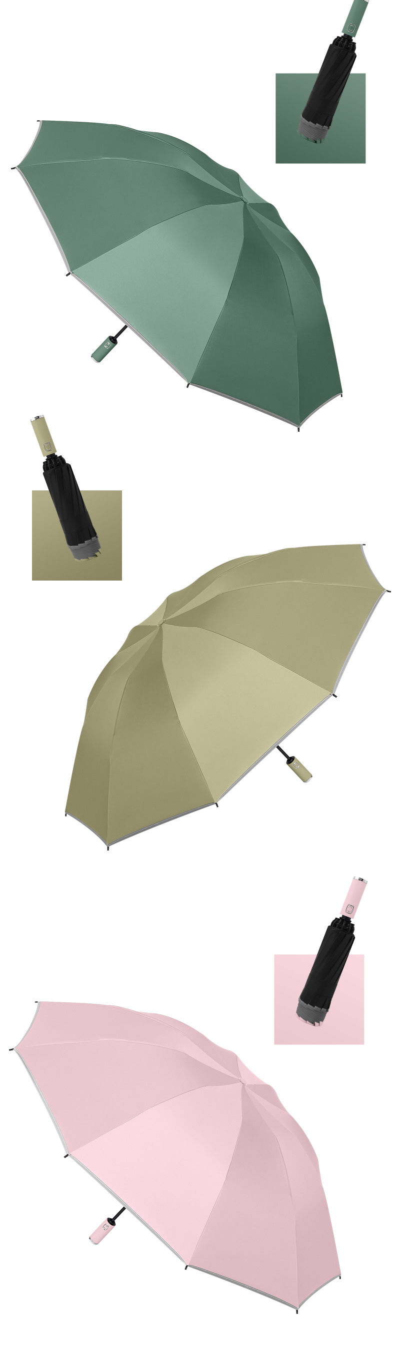 • 10 뼈 반전 우산 접이식 우산 얕은 카키