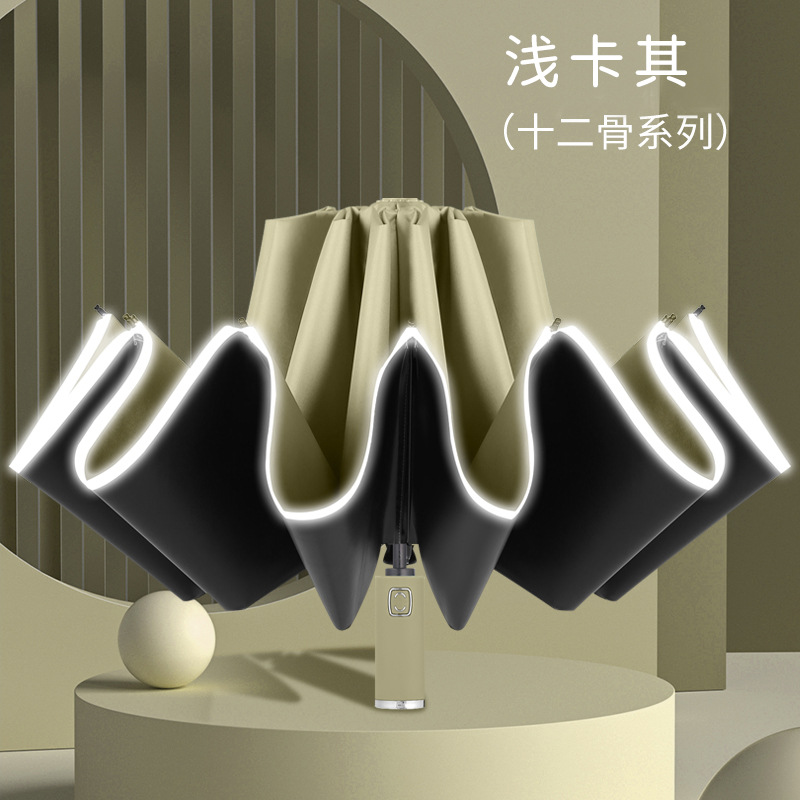 • 12 뼈 역 우산 접이식 얕은 카키
