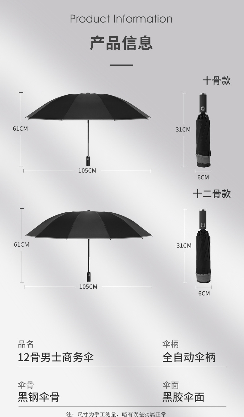 • 12 뼈 역 우산 접는 클래식 블랙