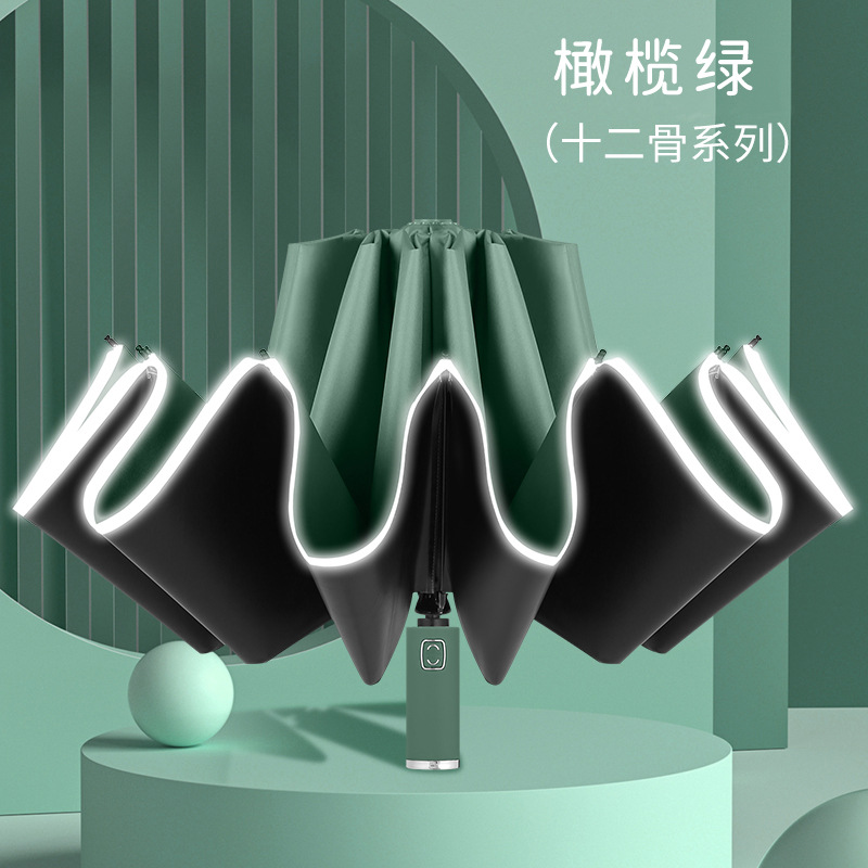 • 12 뼈 역 우산 접는 올리브 그린