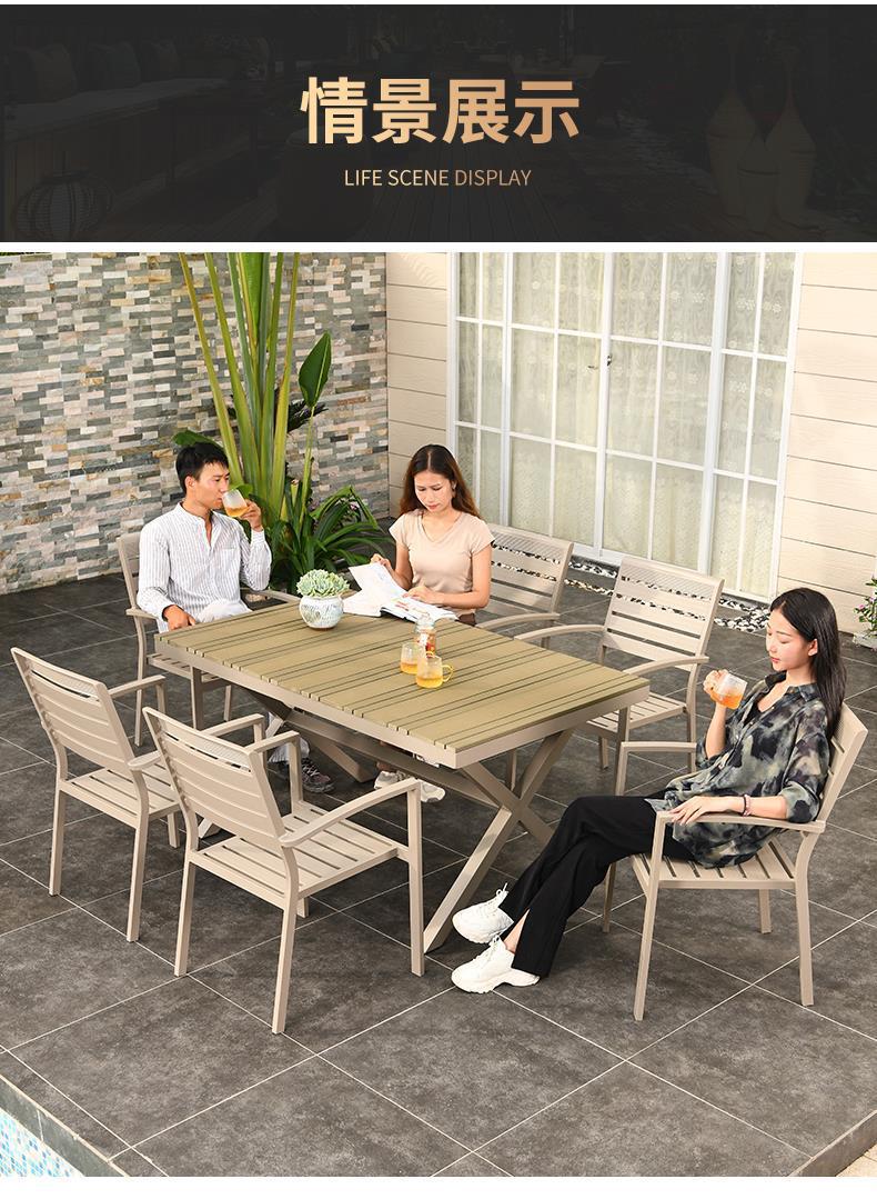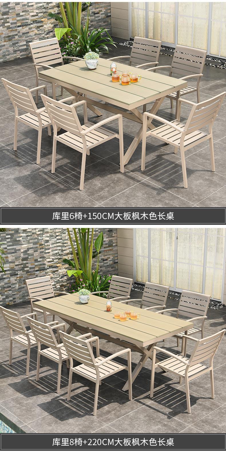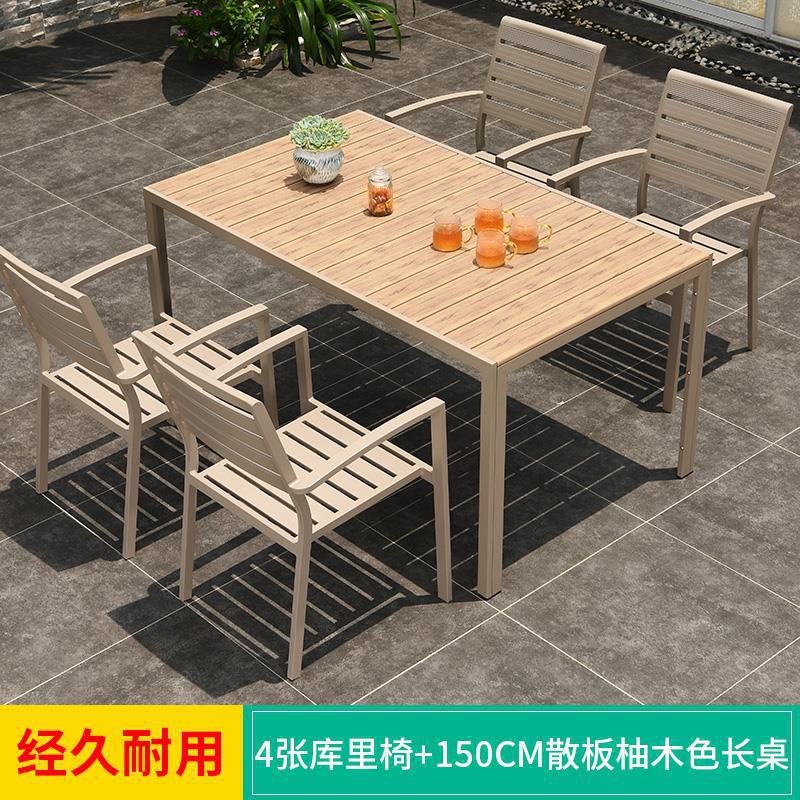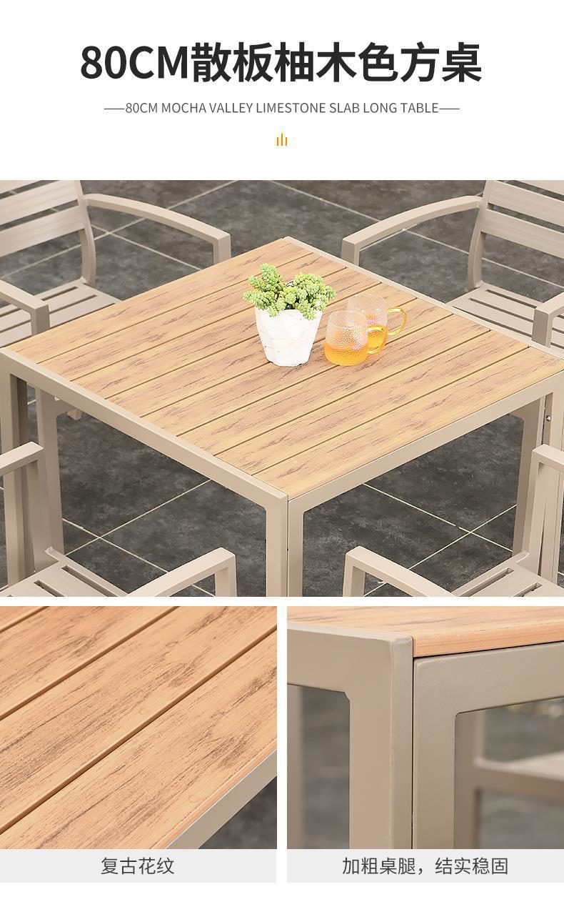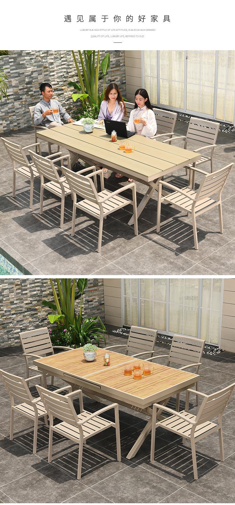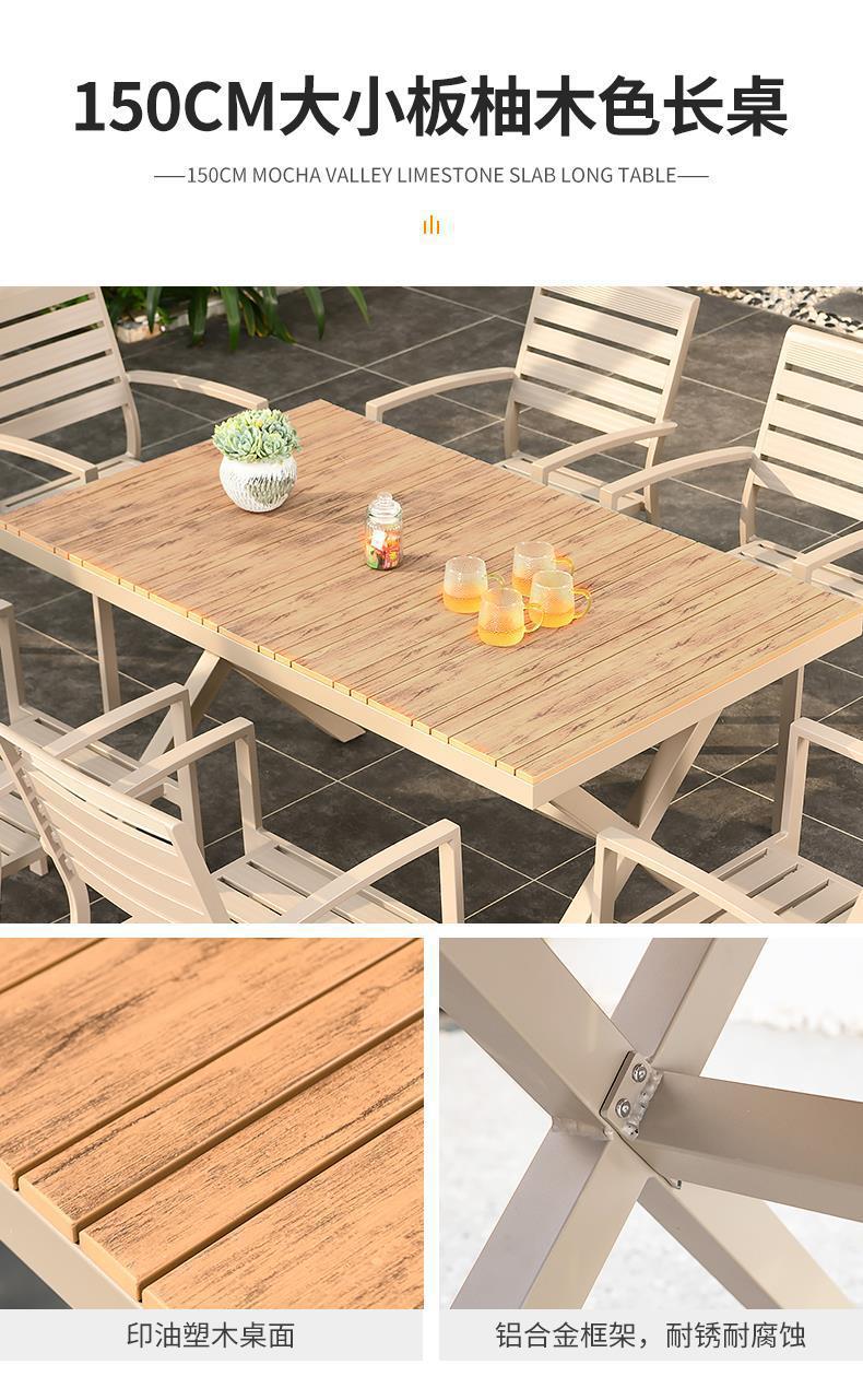 모가족 야외 테이블 및 의자, 정원용 플라스틱 목재 테이블, 테라스 발코니 야외 레저용 알루미늄 합금 샴페인 색상 식탁