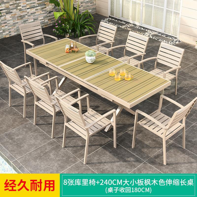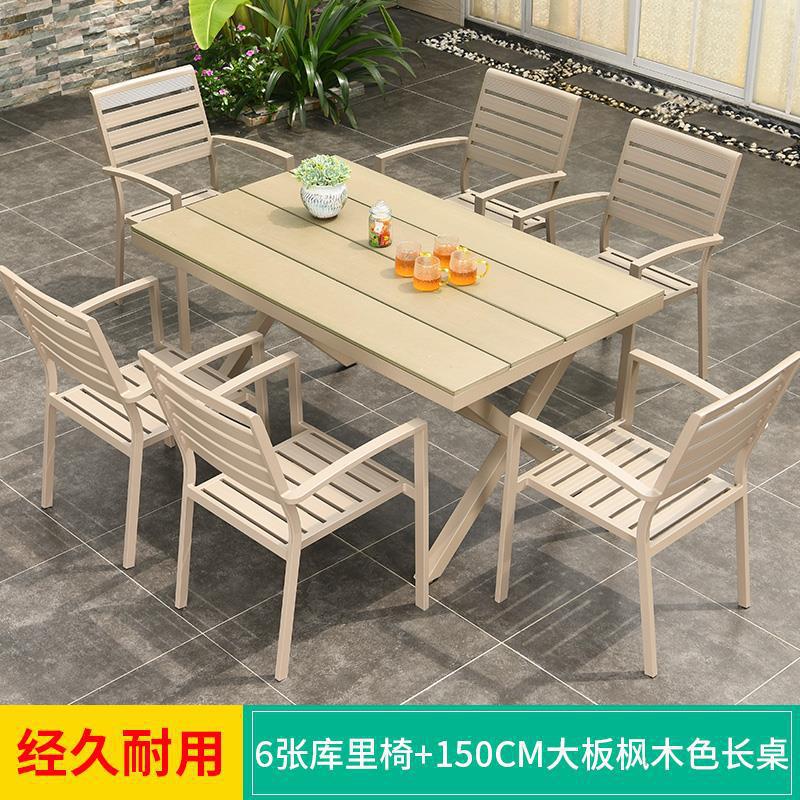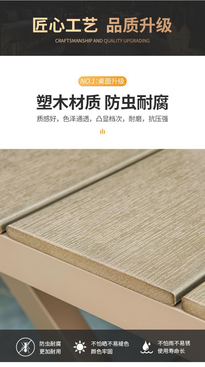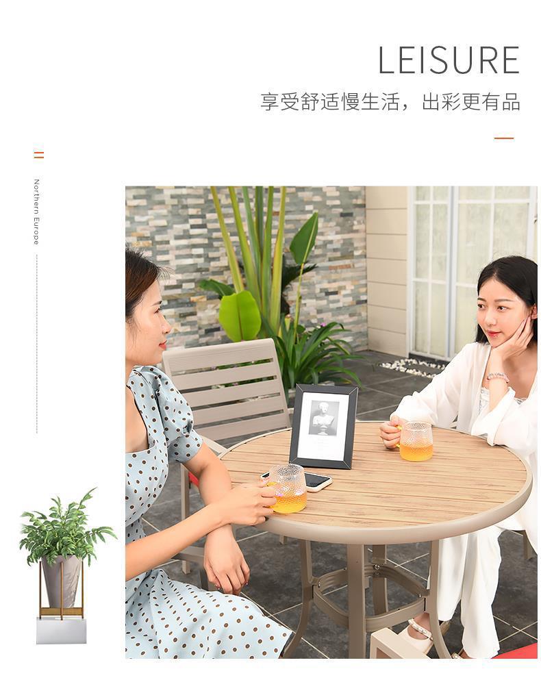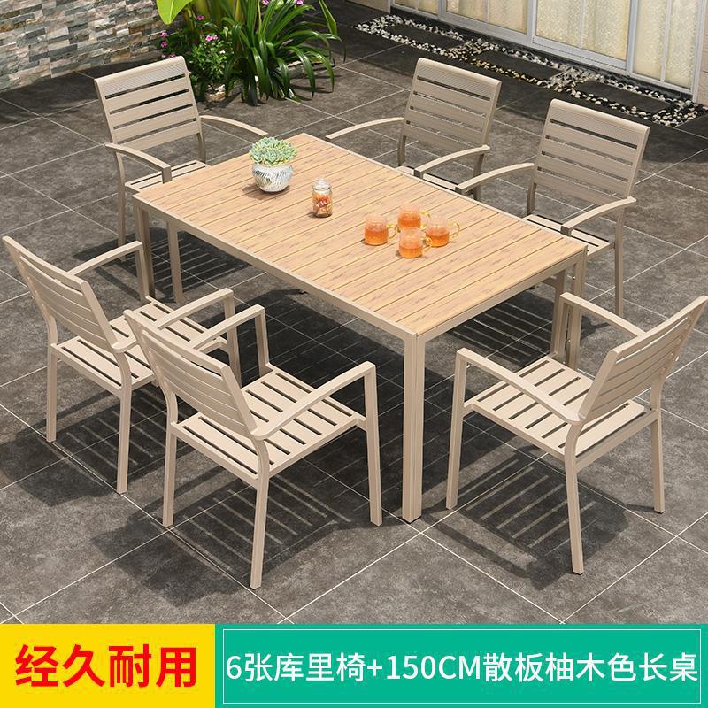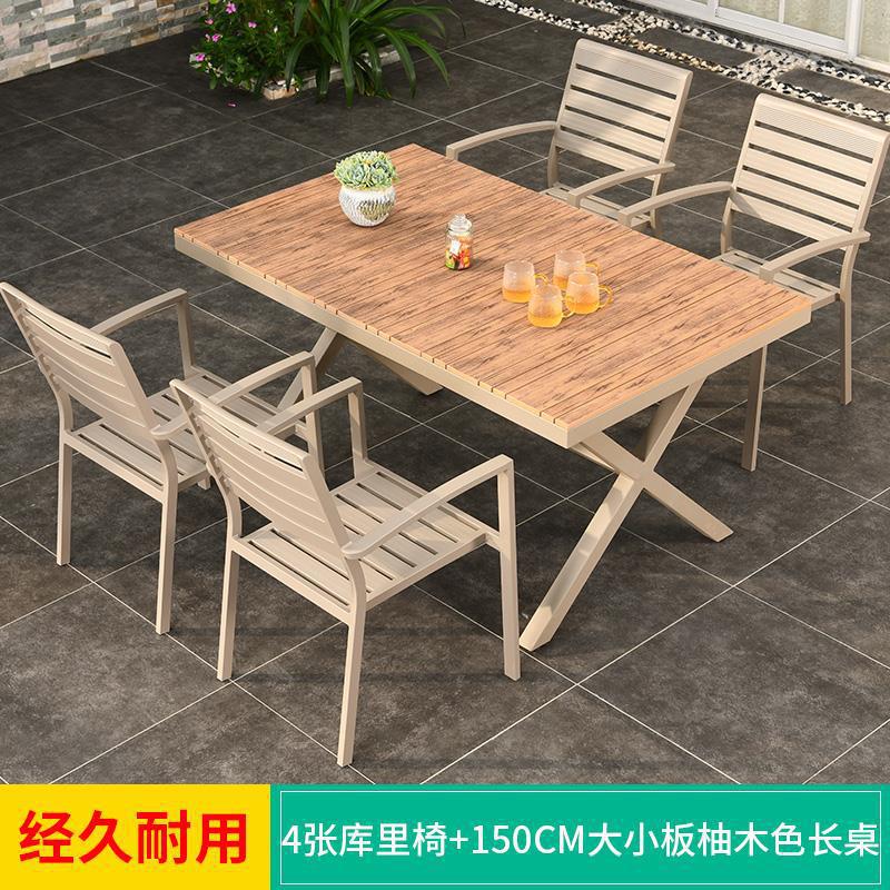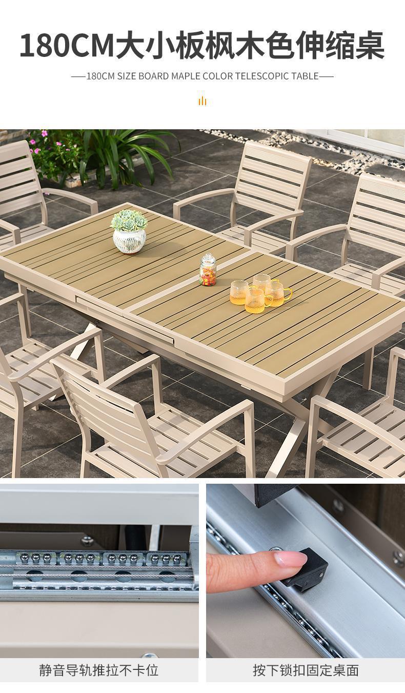 모가족 야외 테이블 및 의자, 정원용 플라스틱 목재 테이블, 테라스 발코니 야외 레저용 알루미늄 합금 샴페인 색상 식탁