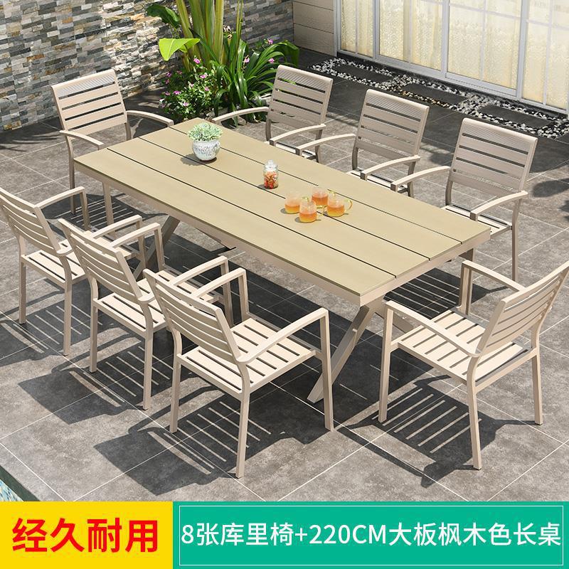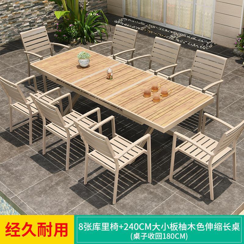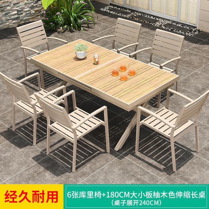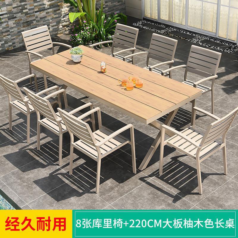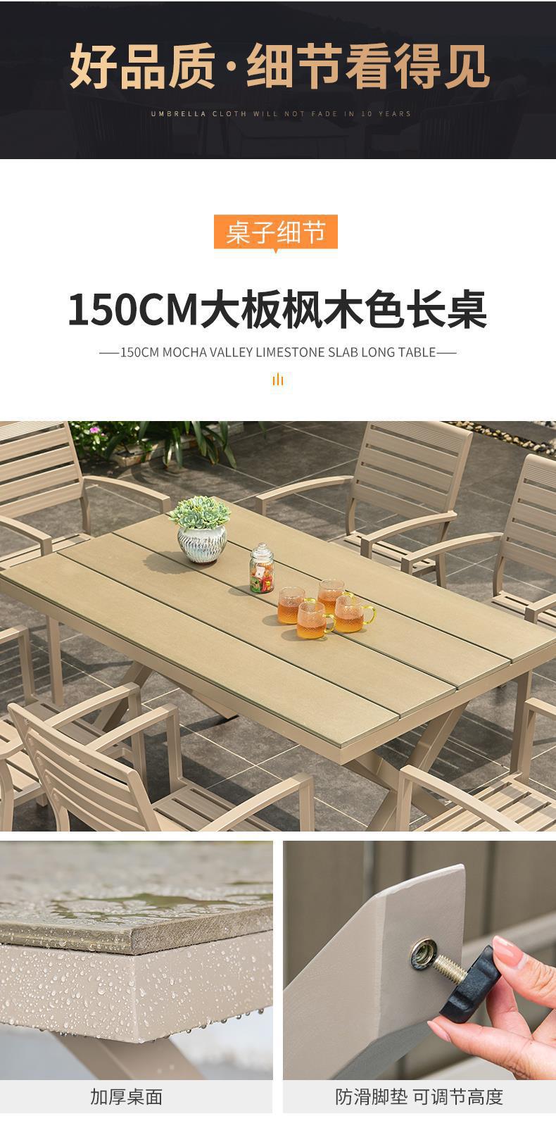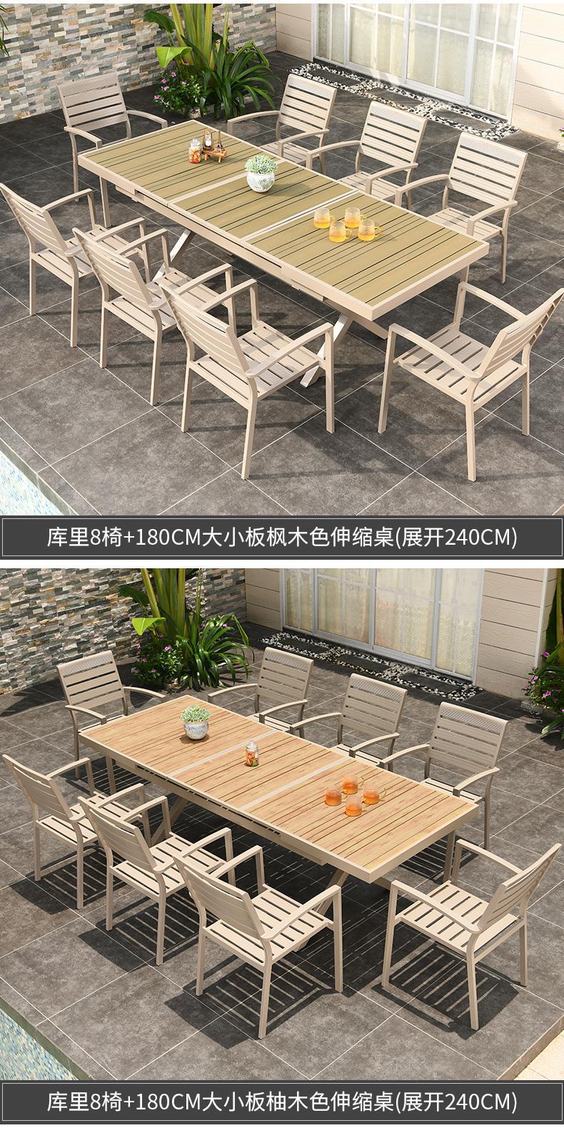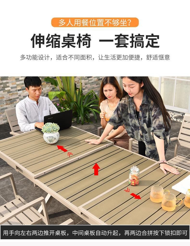 모가족 야외 테이블 및 의자, 정원용 플라스틱 목재 테이블, 테라스 발코니 야외 레저용 알루미늄 합금 샴페인 색상 식탁
