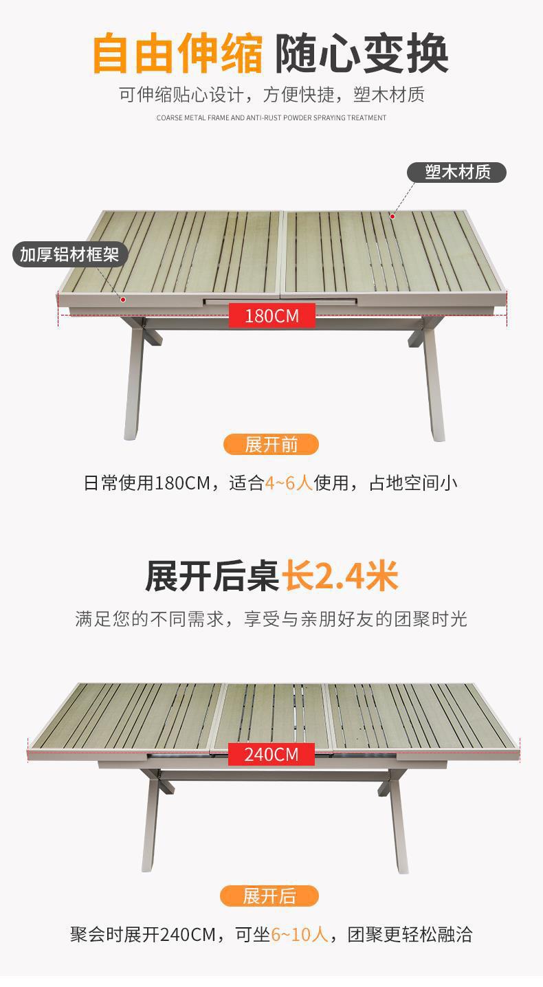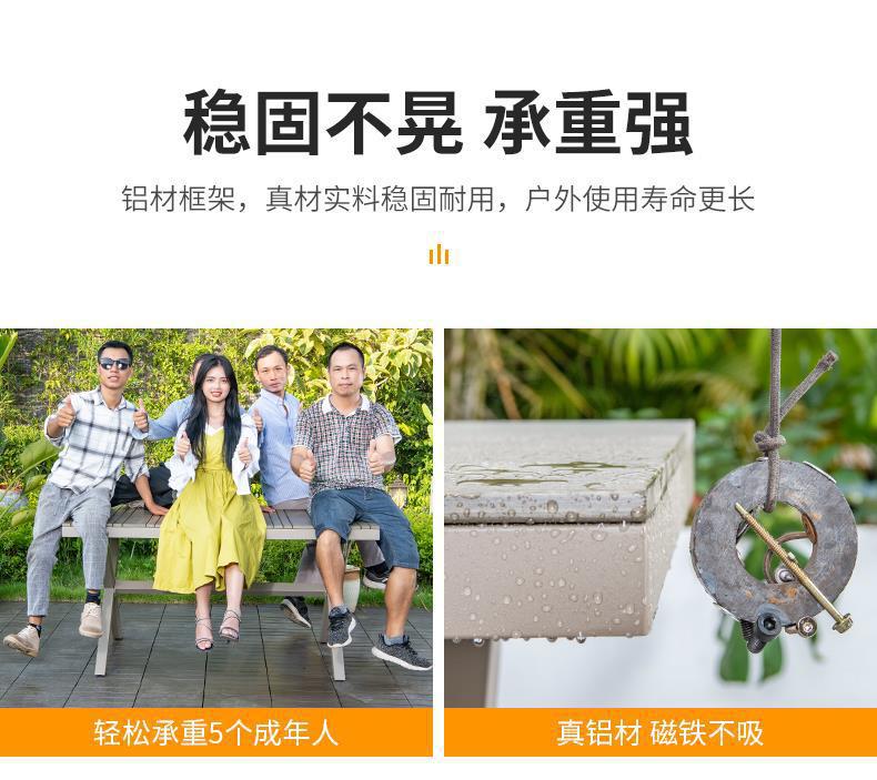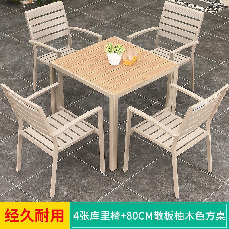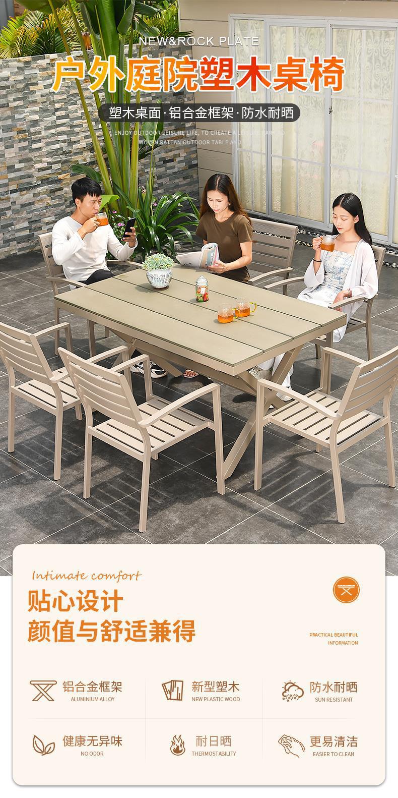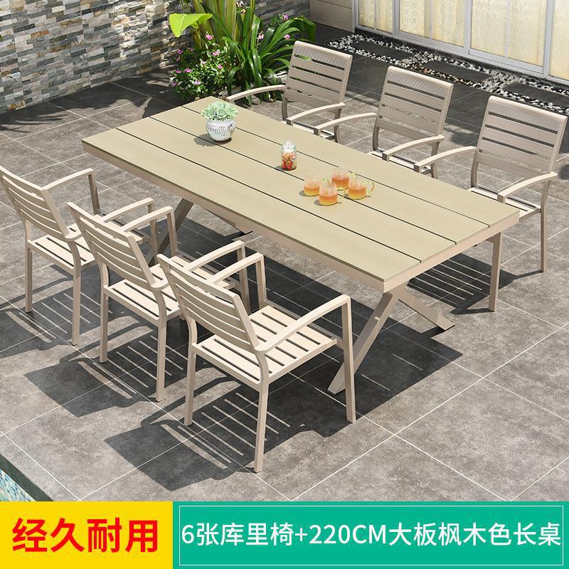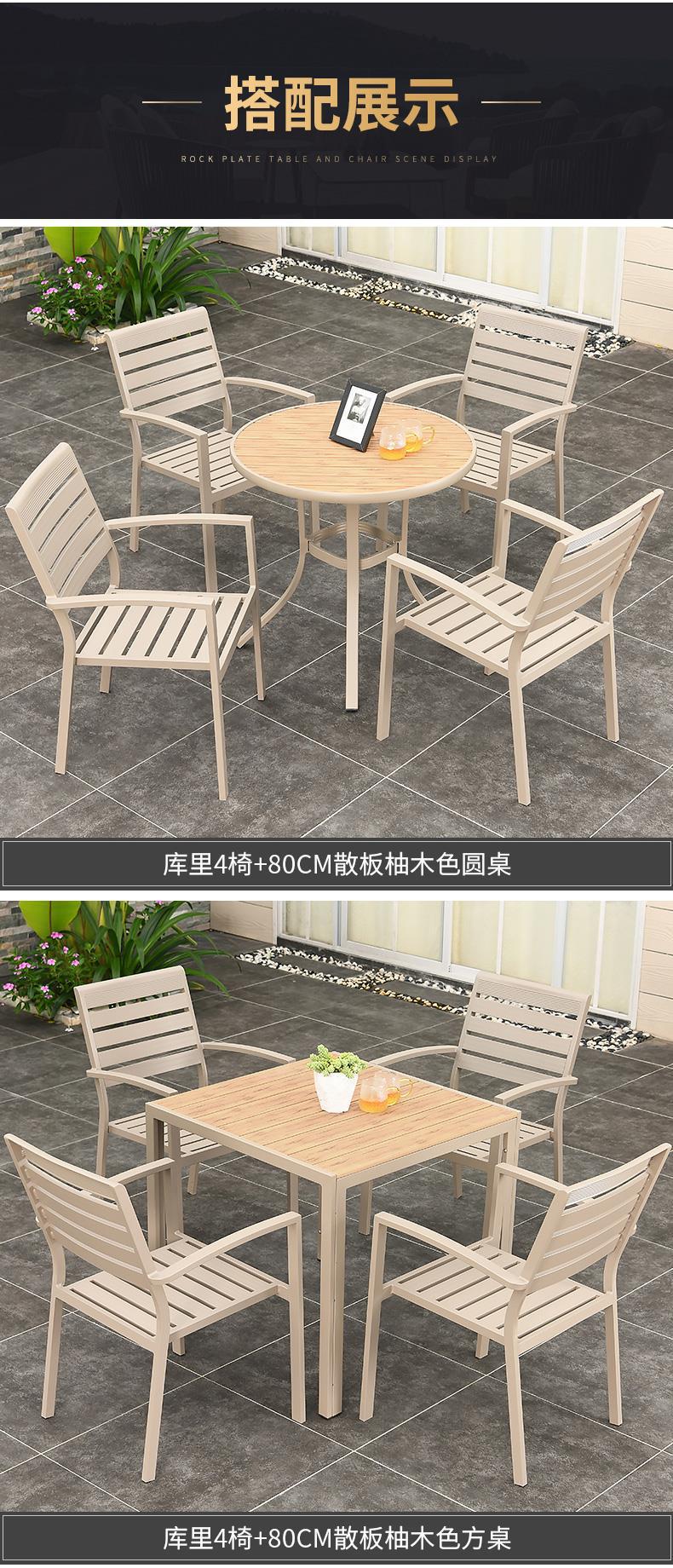 모가족 야외 테이블 및 의자, 정원용 플라스틱 목재 테이블, 테라스 발코니 야외 레저용 알루미늄 합금 샴페인 색상 식탁
