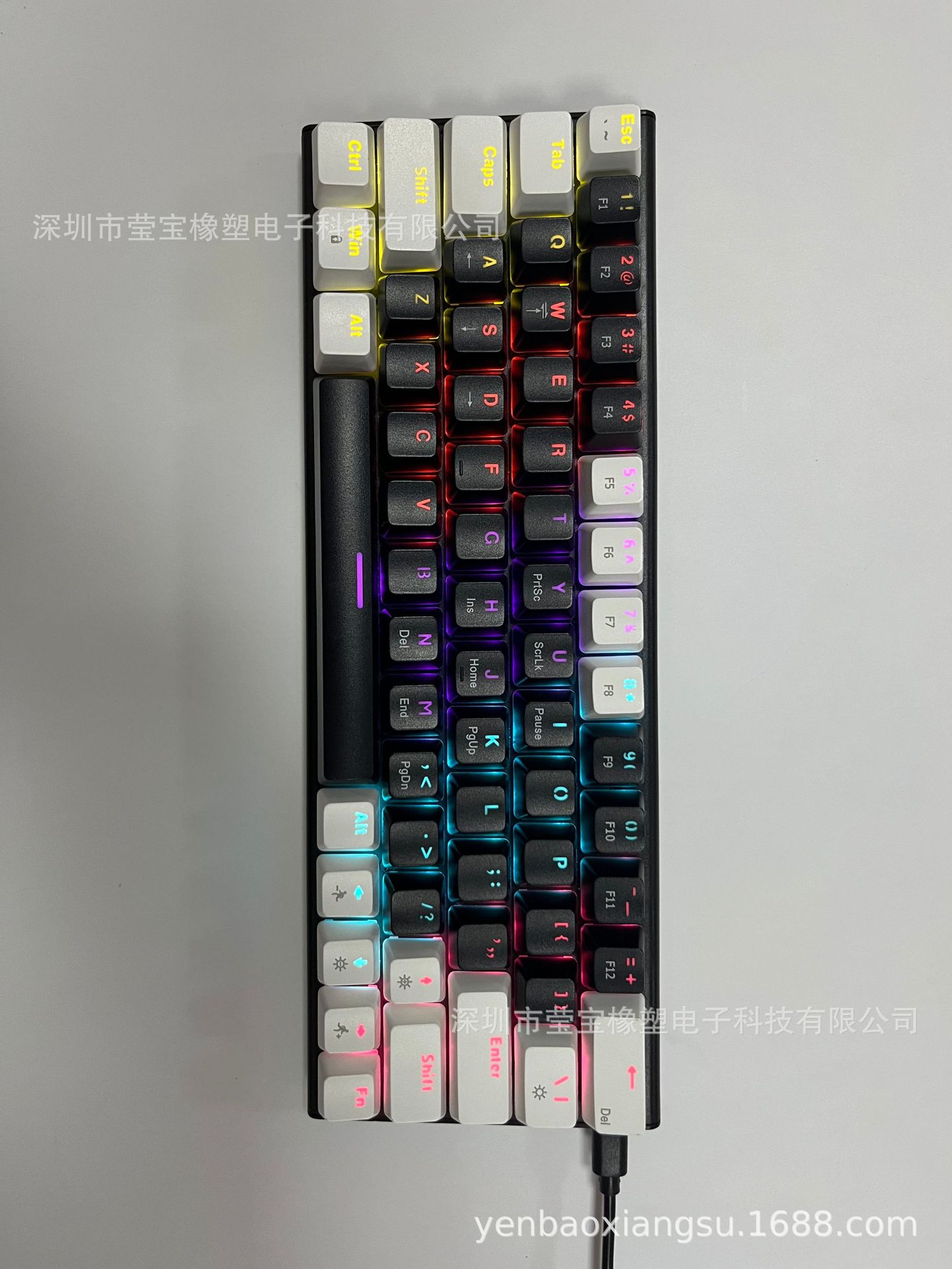 MK60 새로운 케이블 플러그인 기계식 키보드 전자 경쟁 컴퓨터 게임 RGB 혼합 조명