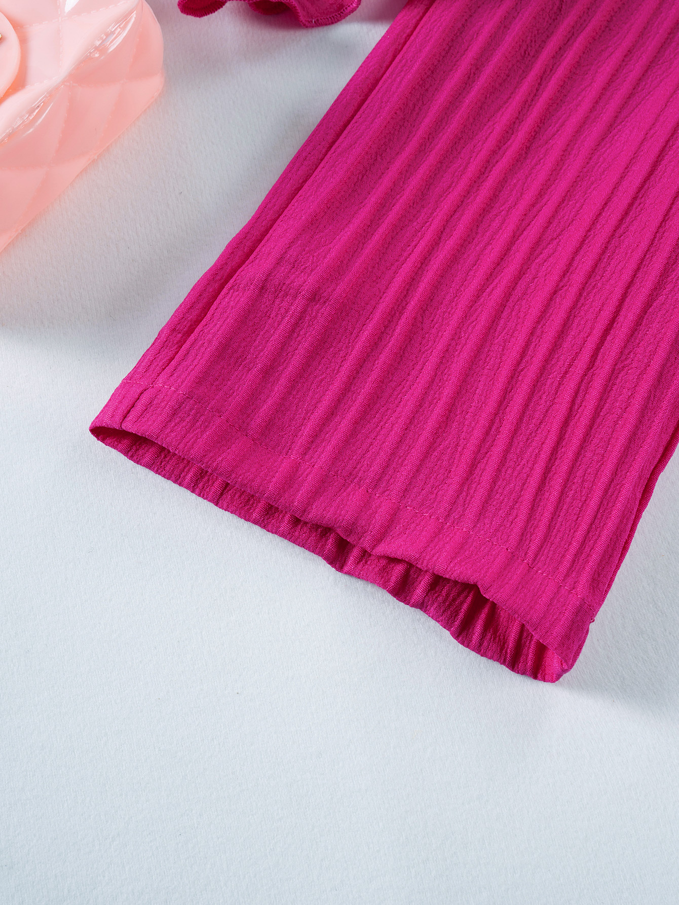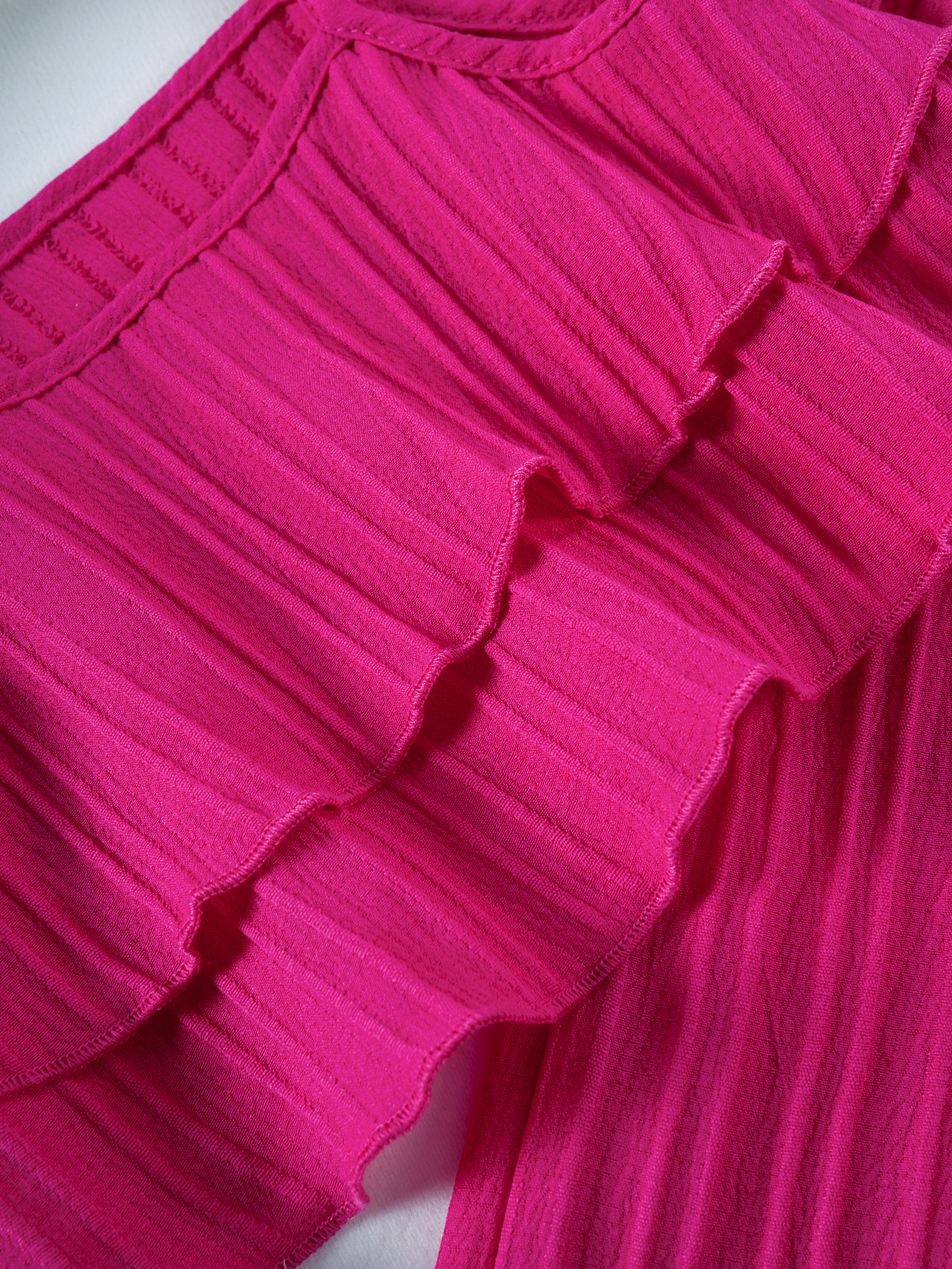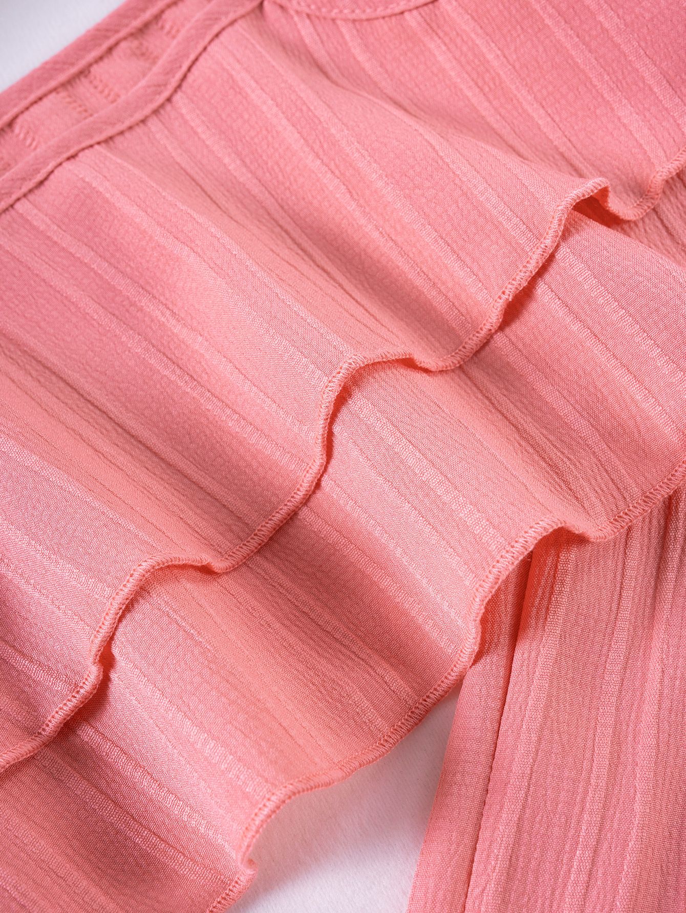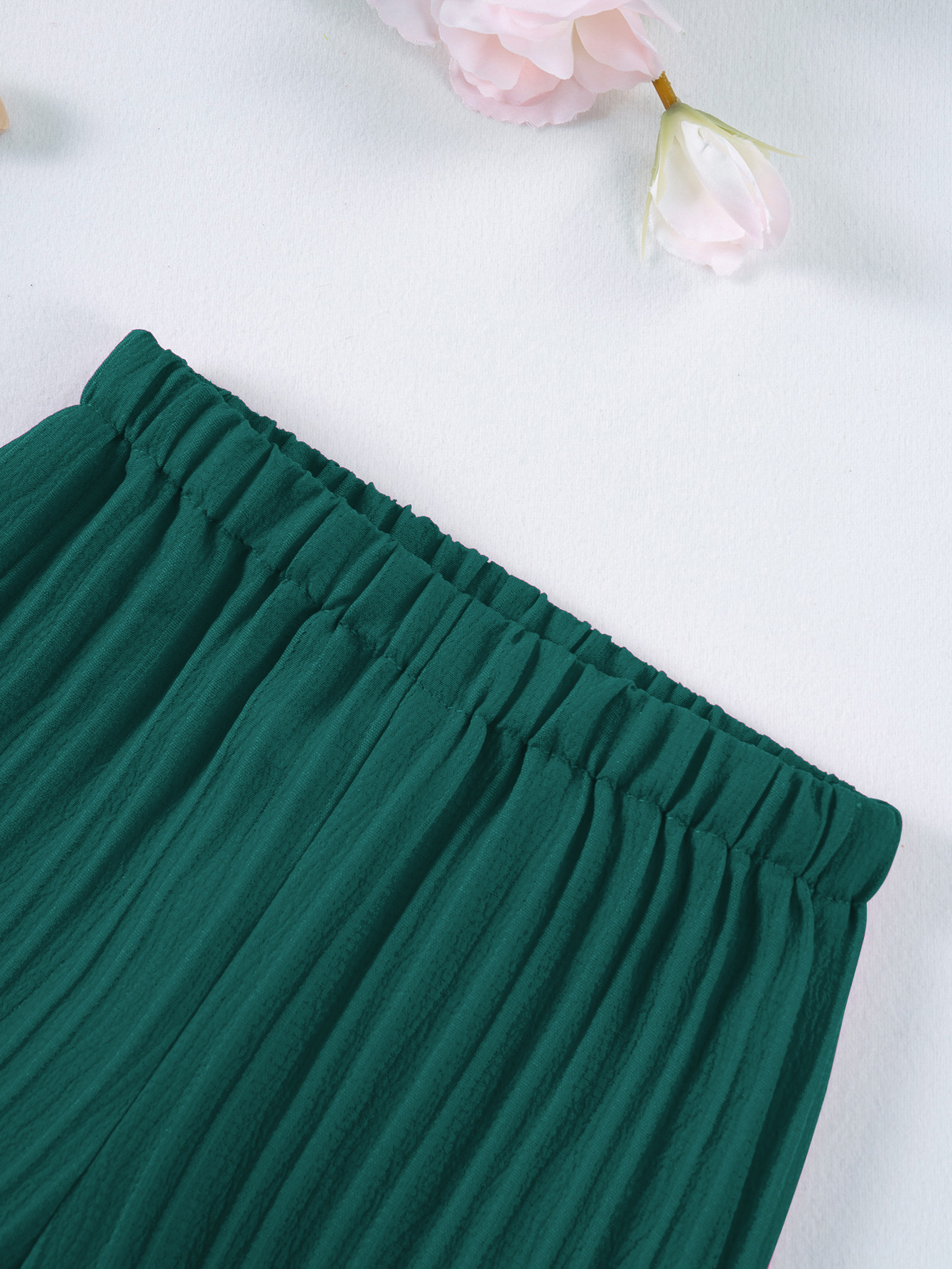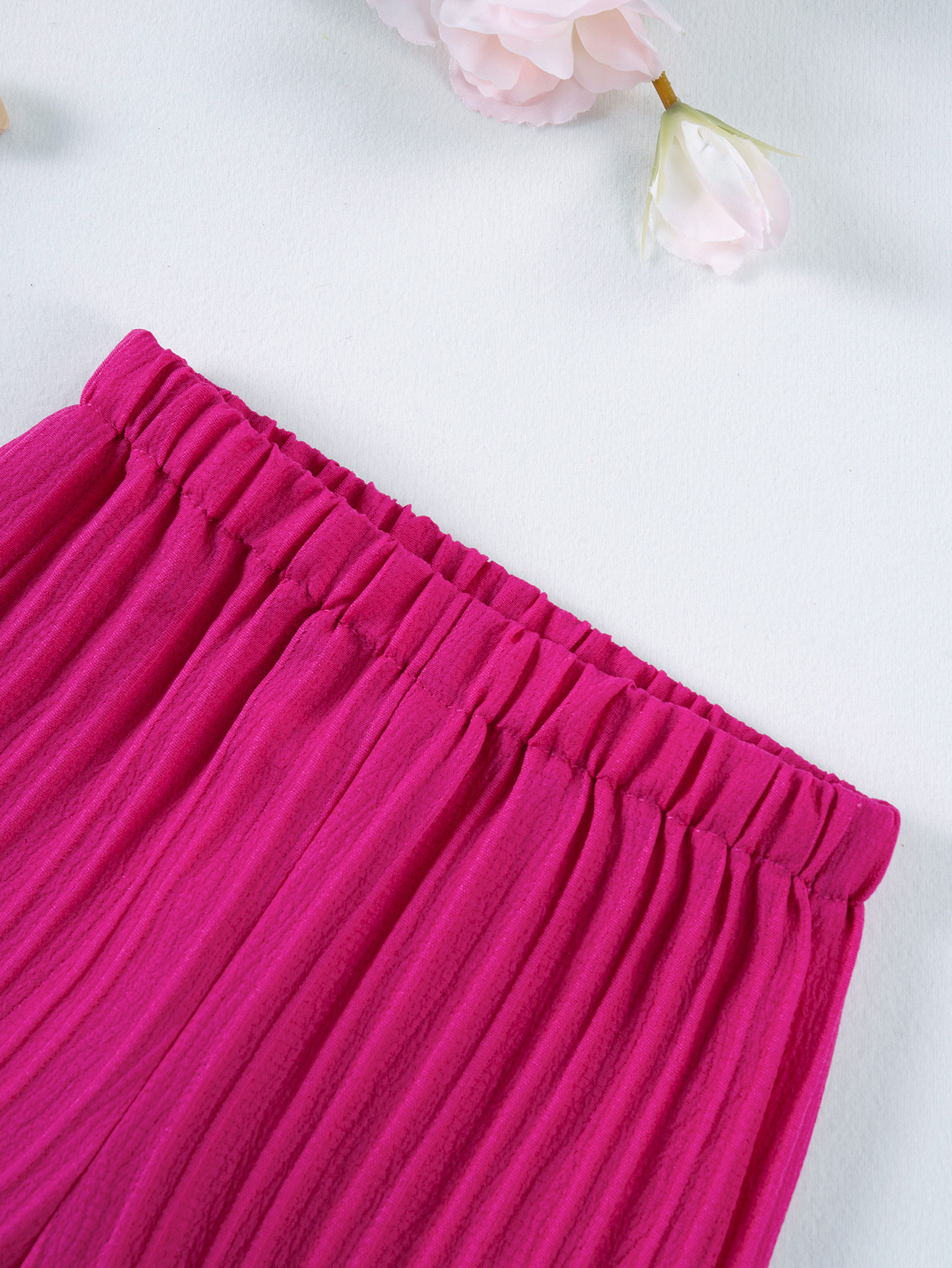 2025 여아 여름 단색 멜빵 세트, 러플 장식, 인스 스타일, 일자 바지, 캐주얼, 물결무늬 원단, 유아용