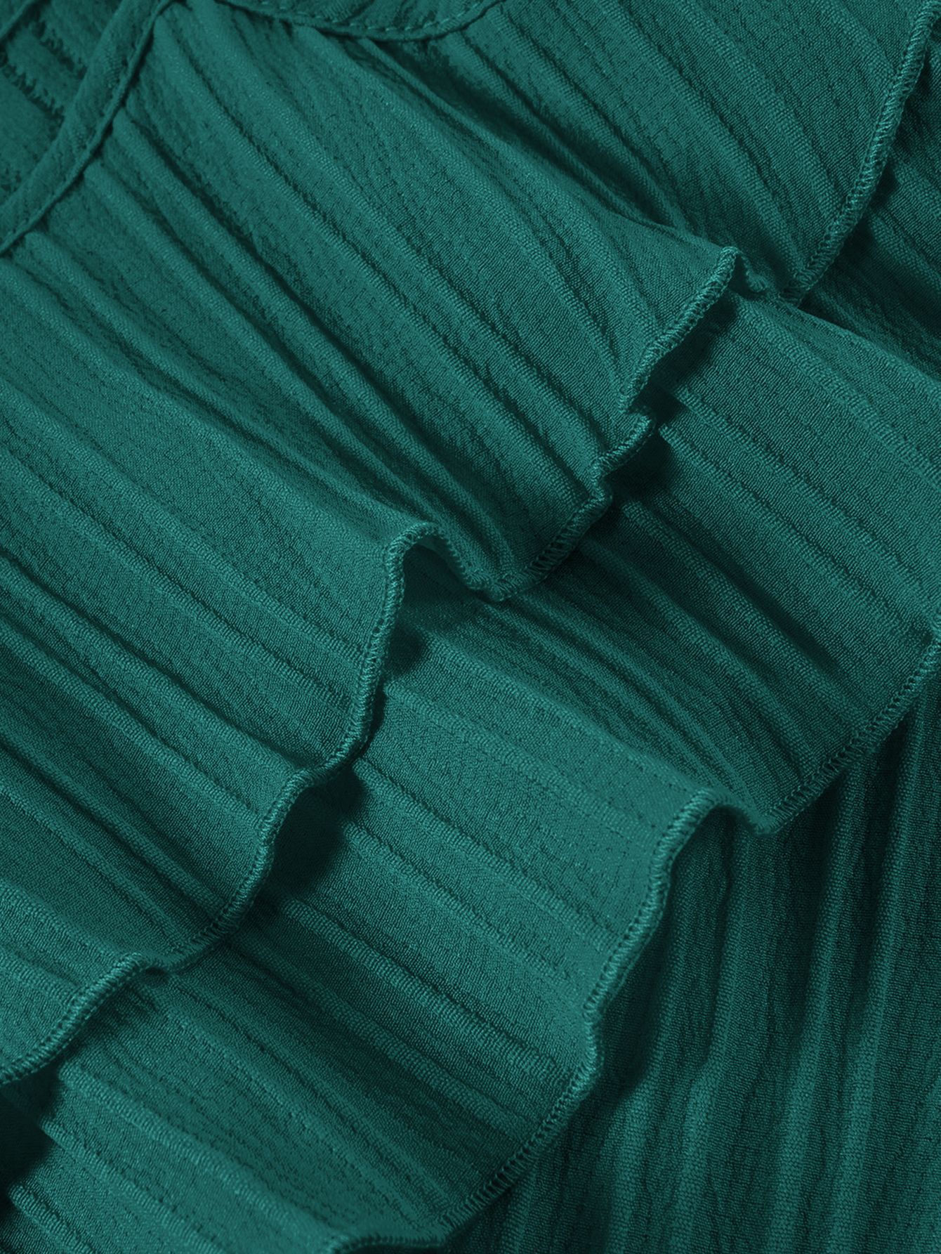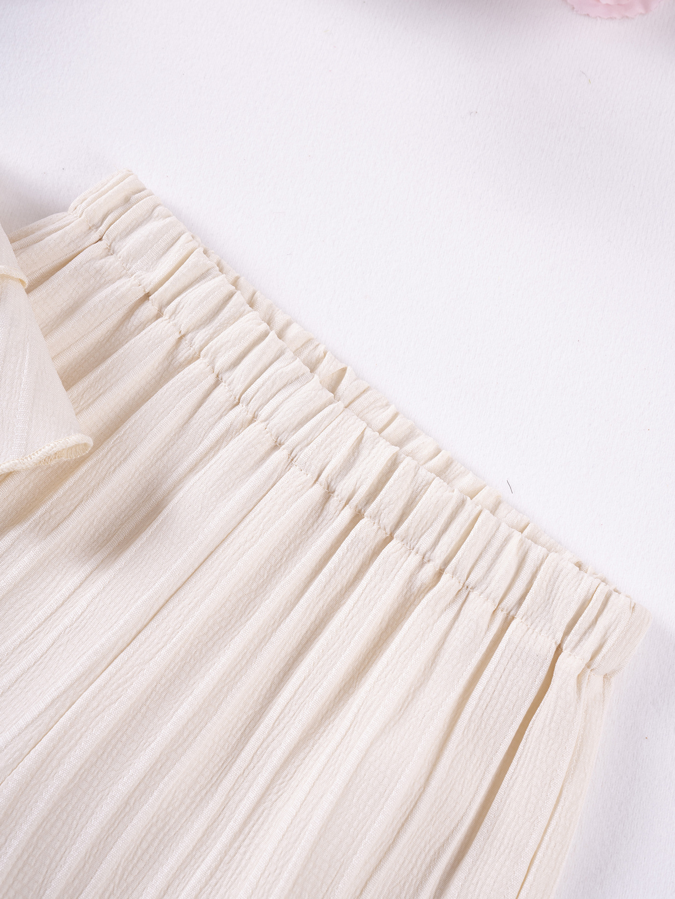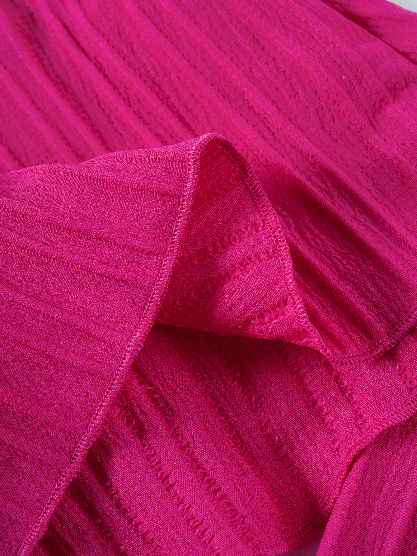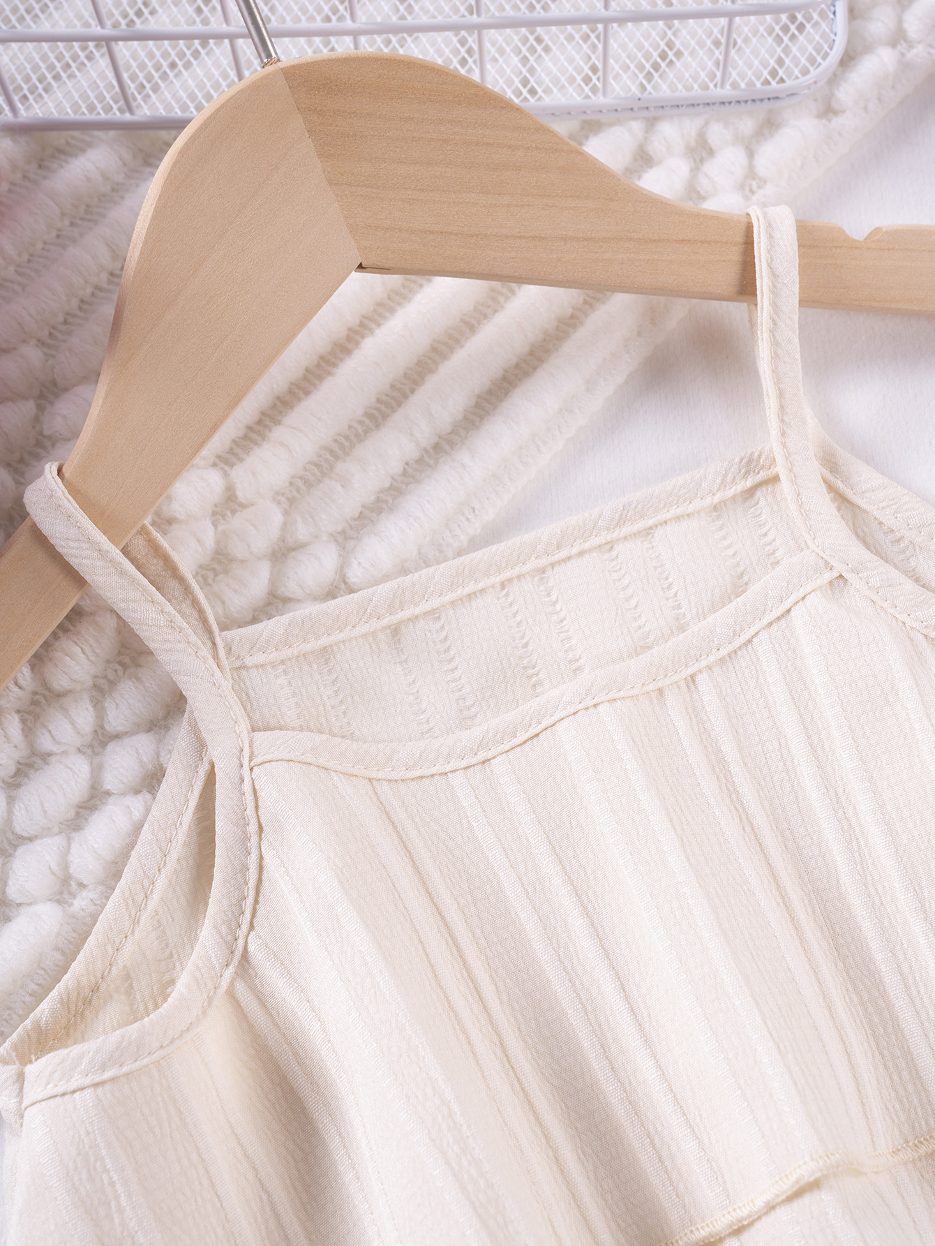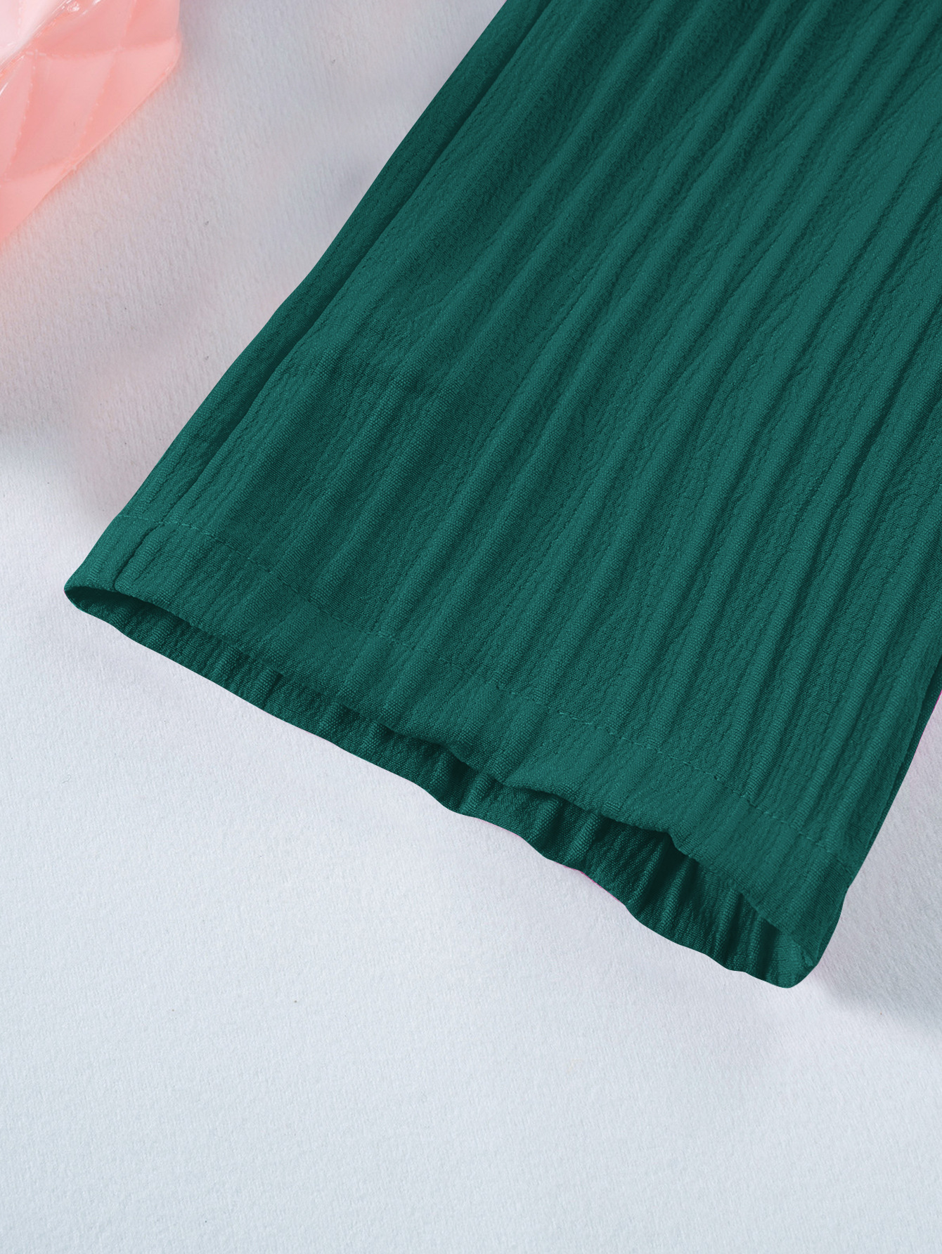 2025 여아 여름 단색 멜빵 세트, 러플 장식, 인스 스타일, 일자 바지, 캐주얼, 물결무늬 원단, 유아용