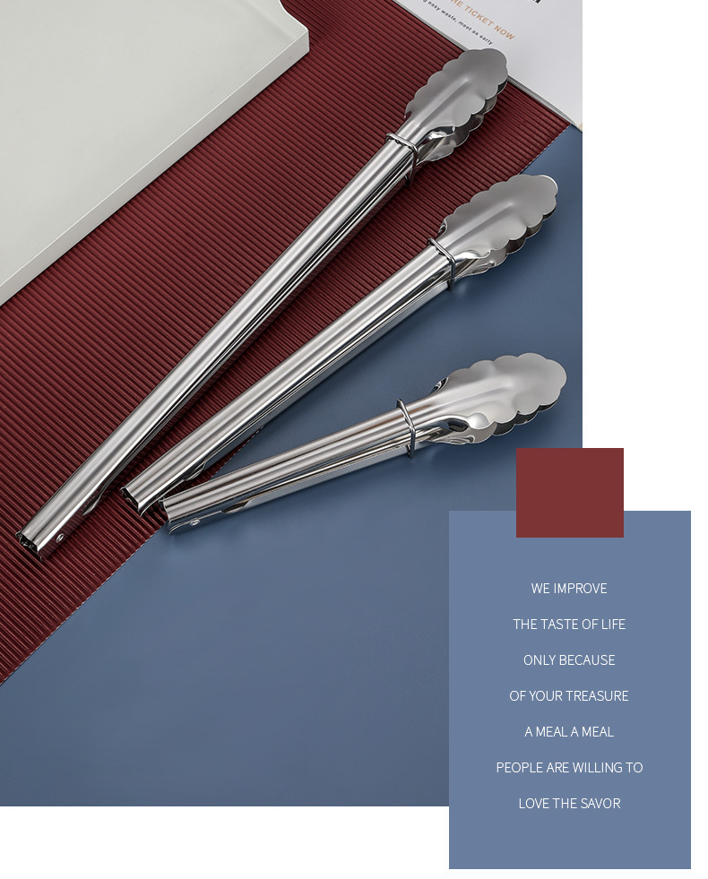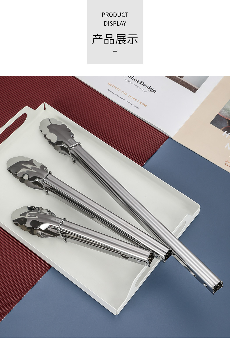스테인레스 스틸 음식 집게 주방 가정용 조리 도구 제조업체 도매 뷔페 바베큐 고기 빵 음식 집게