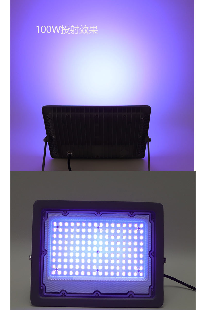 공장 직접 50W100W UV 초박형 방수 다이 캐스팅 보라색 빛 할로윈 형광 파티 홍수 빛