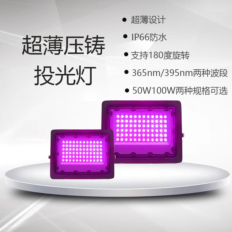 공장 직접 50W100W UV 초박형 방수 다이 캐스팅 보라색 빛 할로윈 형광 파티 홍수 빛스토어 가기