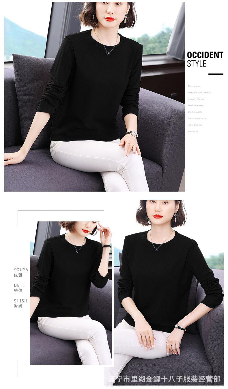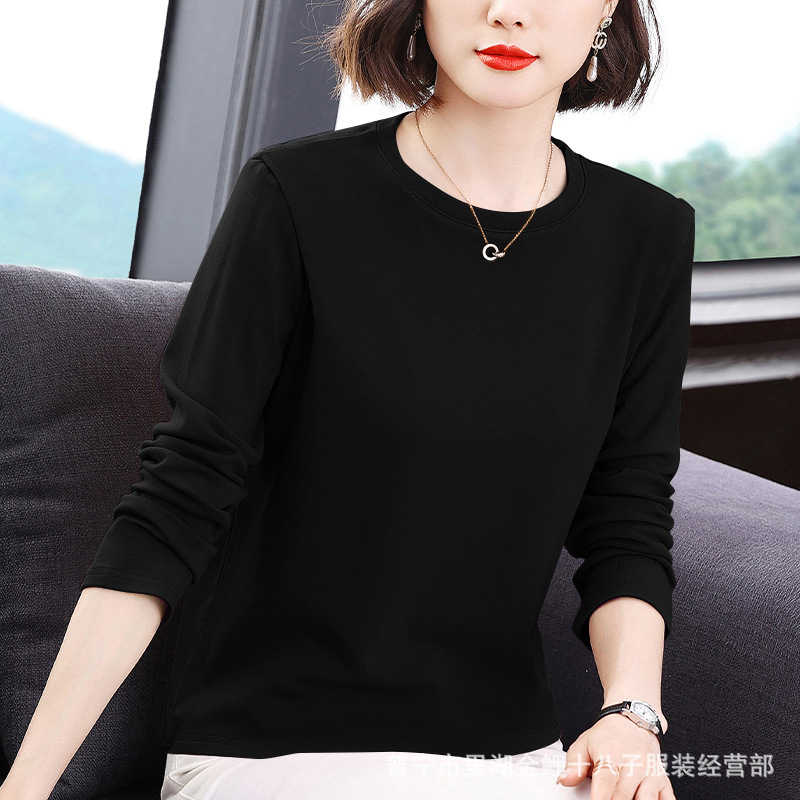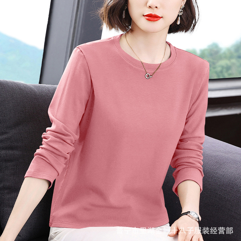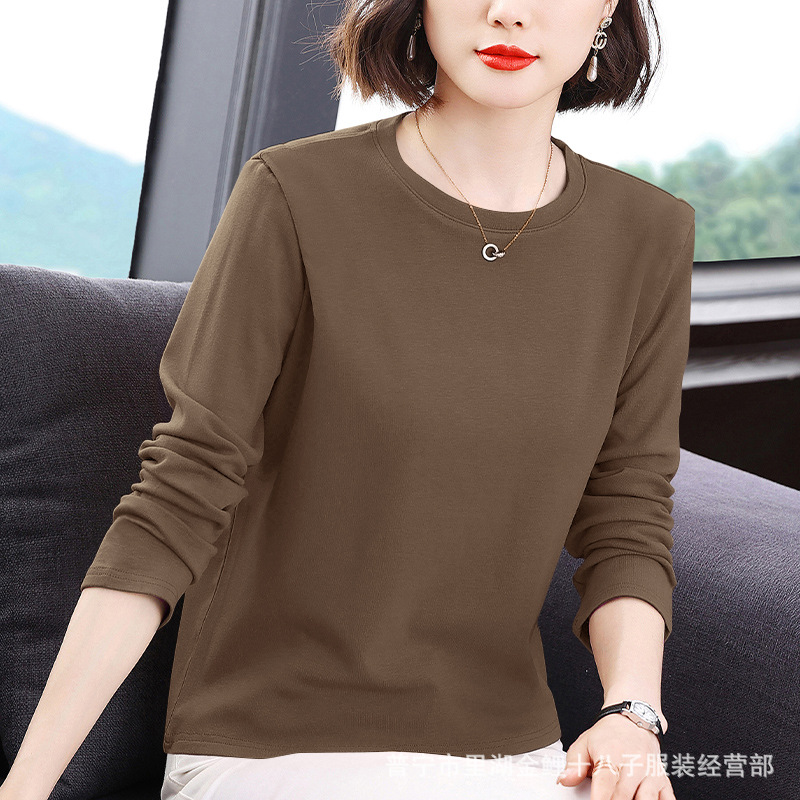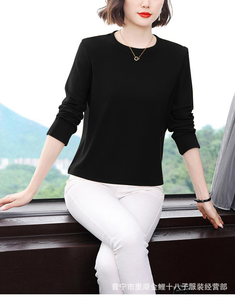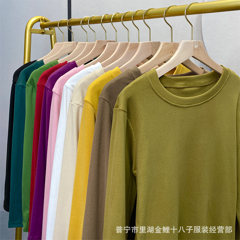 실 바닥 셔츠 여성의 가을과 겨울 서양 스타일 긴팔 칫솔질 따뜻한 탑 라운드 넥 내복 두꺼운 단색 새 티셔츠스토어 가기