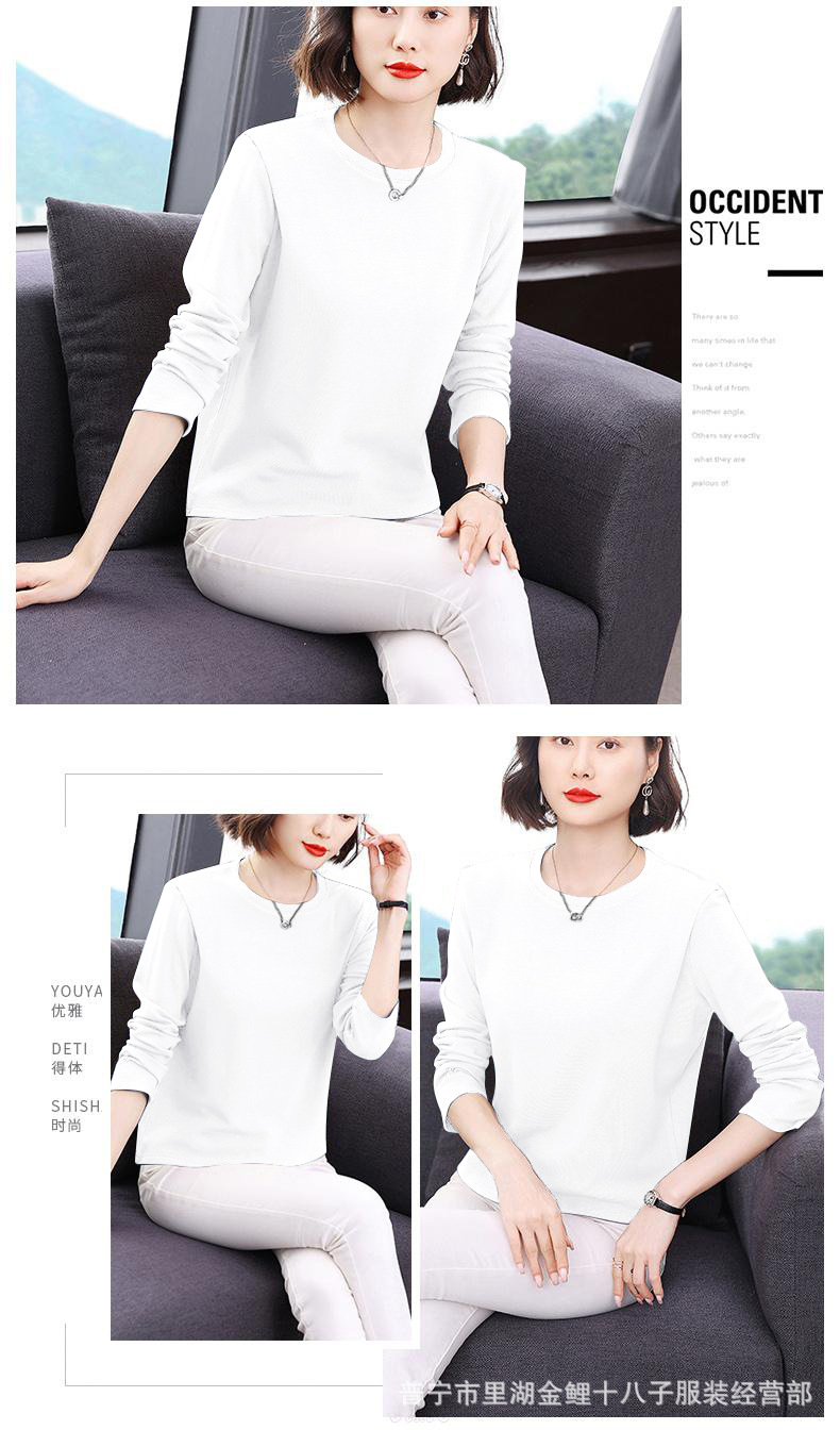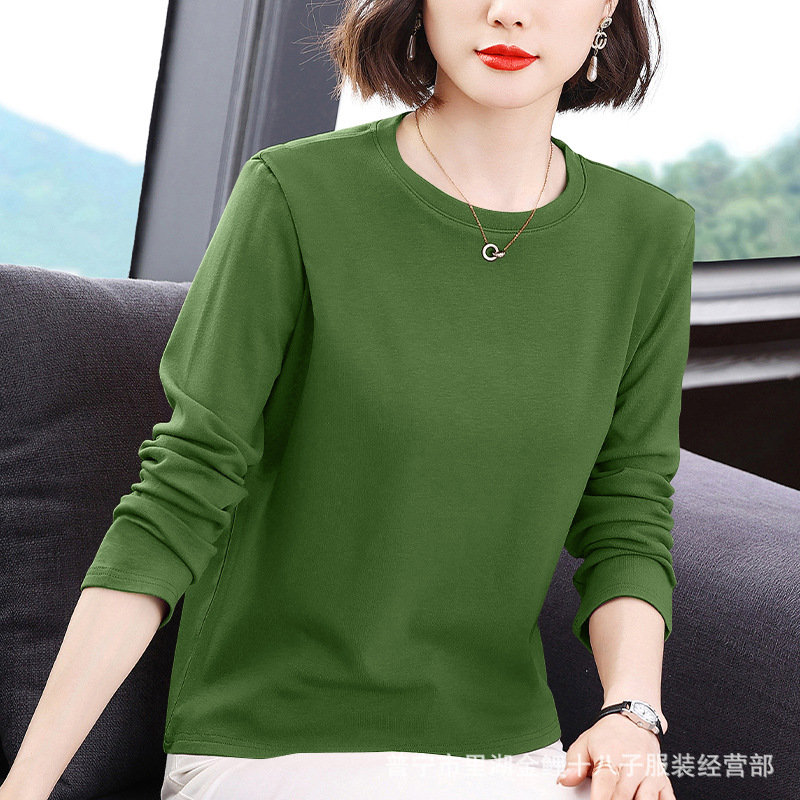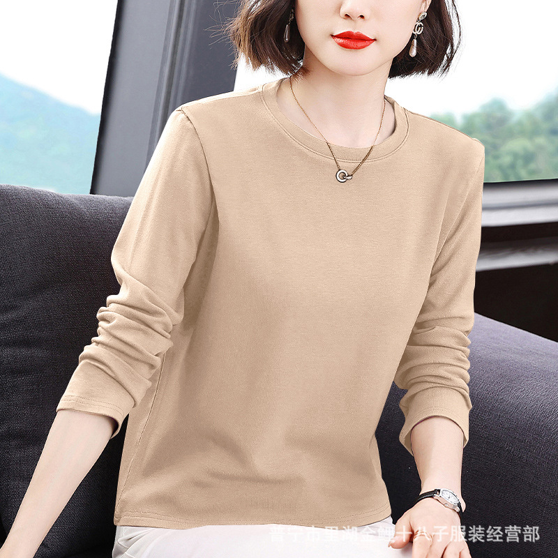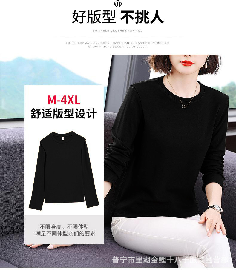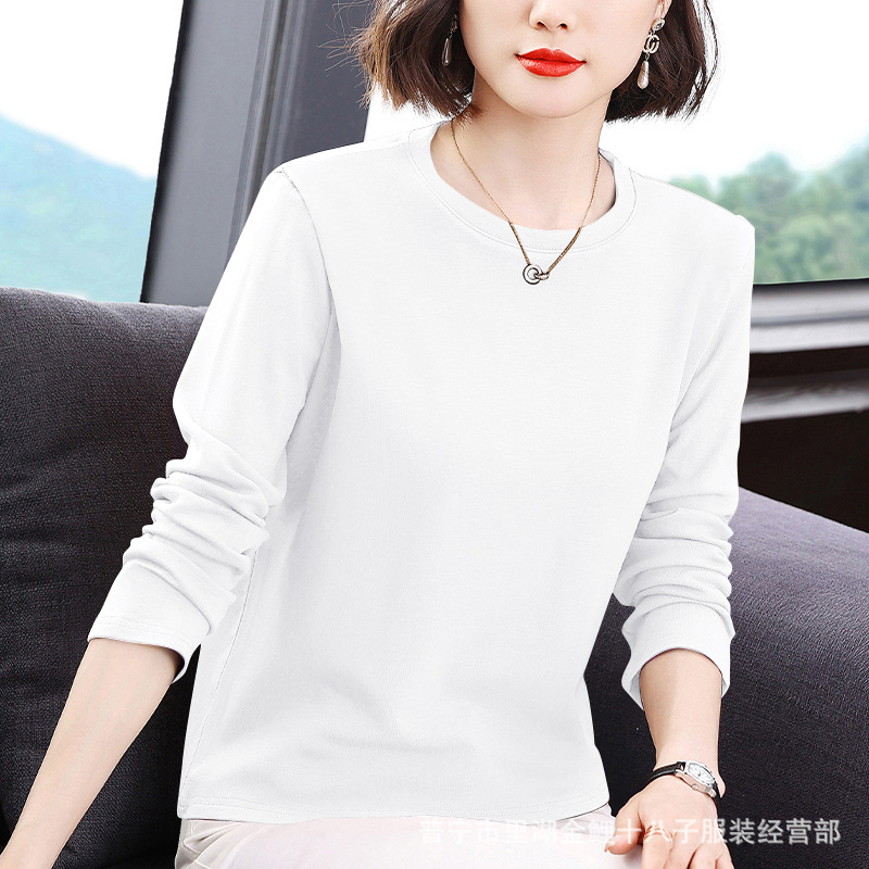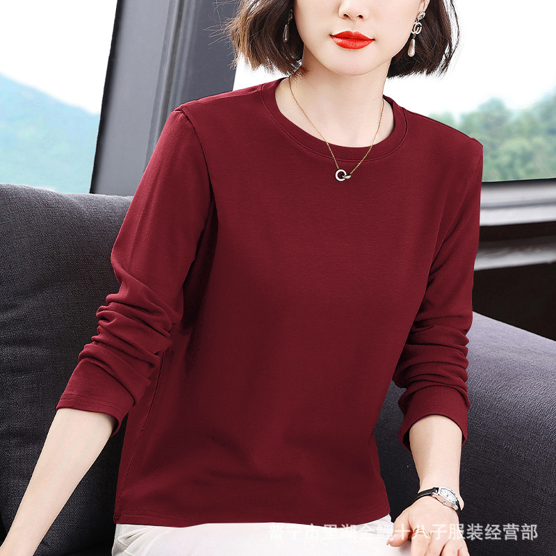 실 바닥 셔츠 여성의 가을과 겨울 서양 스타일 긴팔 칫솔질 따뜻한 탑 라운드 넥 내복 두꺼운 단색 새 티셔츠스토어 가기