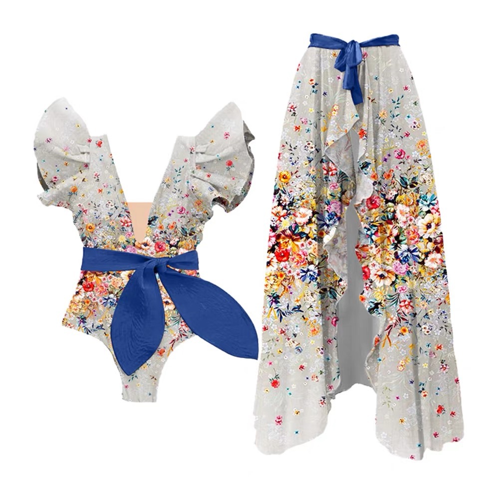 2025欧美新款连体印花泳衣女时尚泳装雪纺裙泳装套装热卖爆款现货