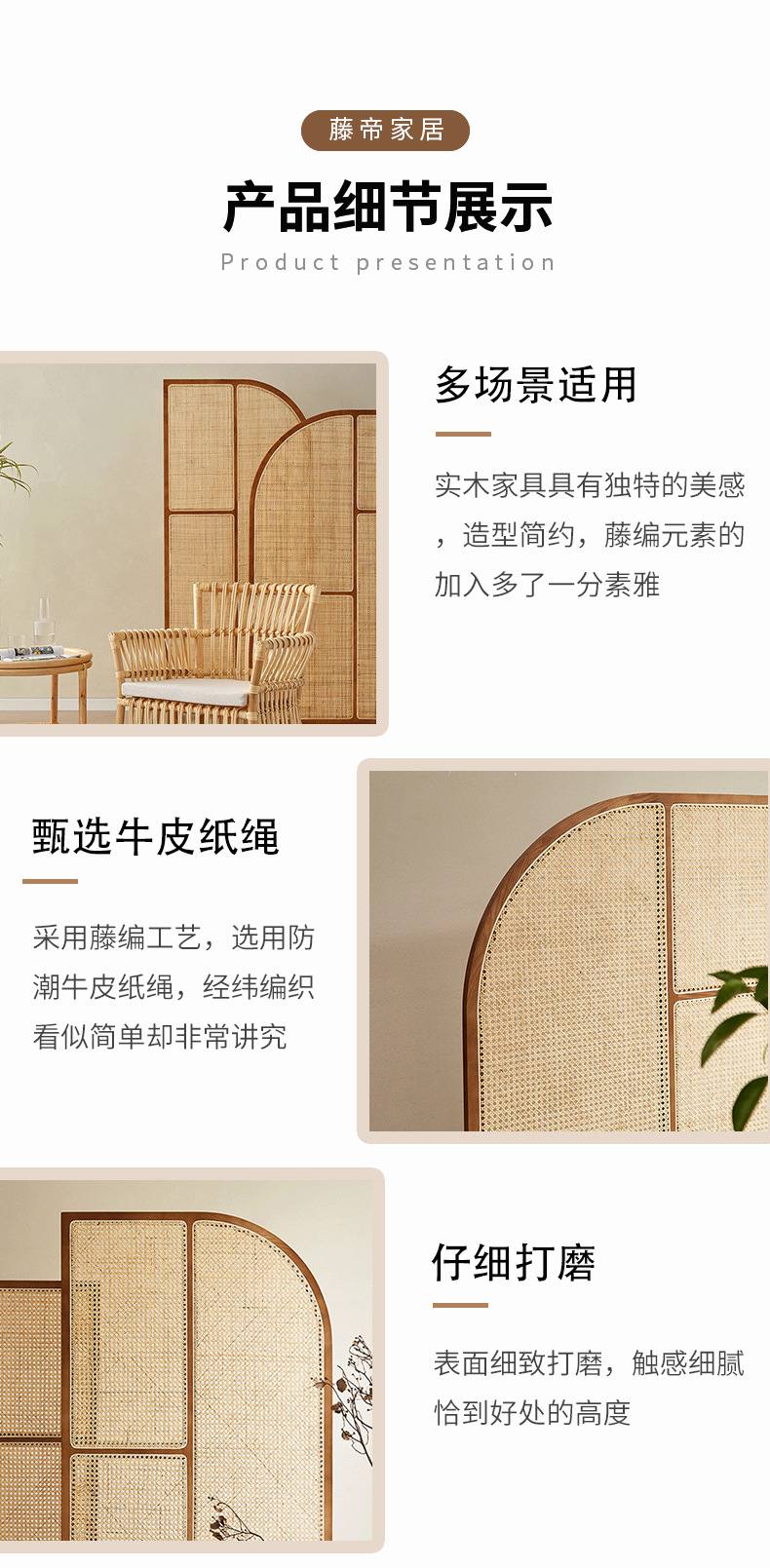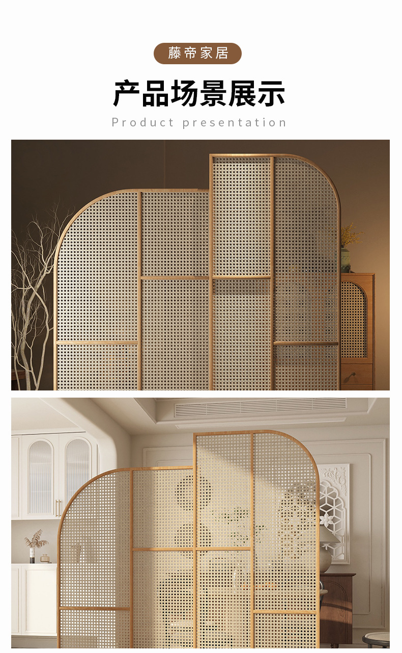 일본식 원목 등나무 칸막이 스크린 세트, 소형 거실용 창의적인 칸막이, 이동식, 새로운 중국풍 선(禪) 스타일 좌식 스크린스토어 가기