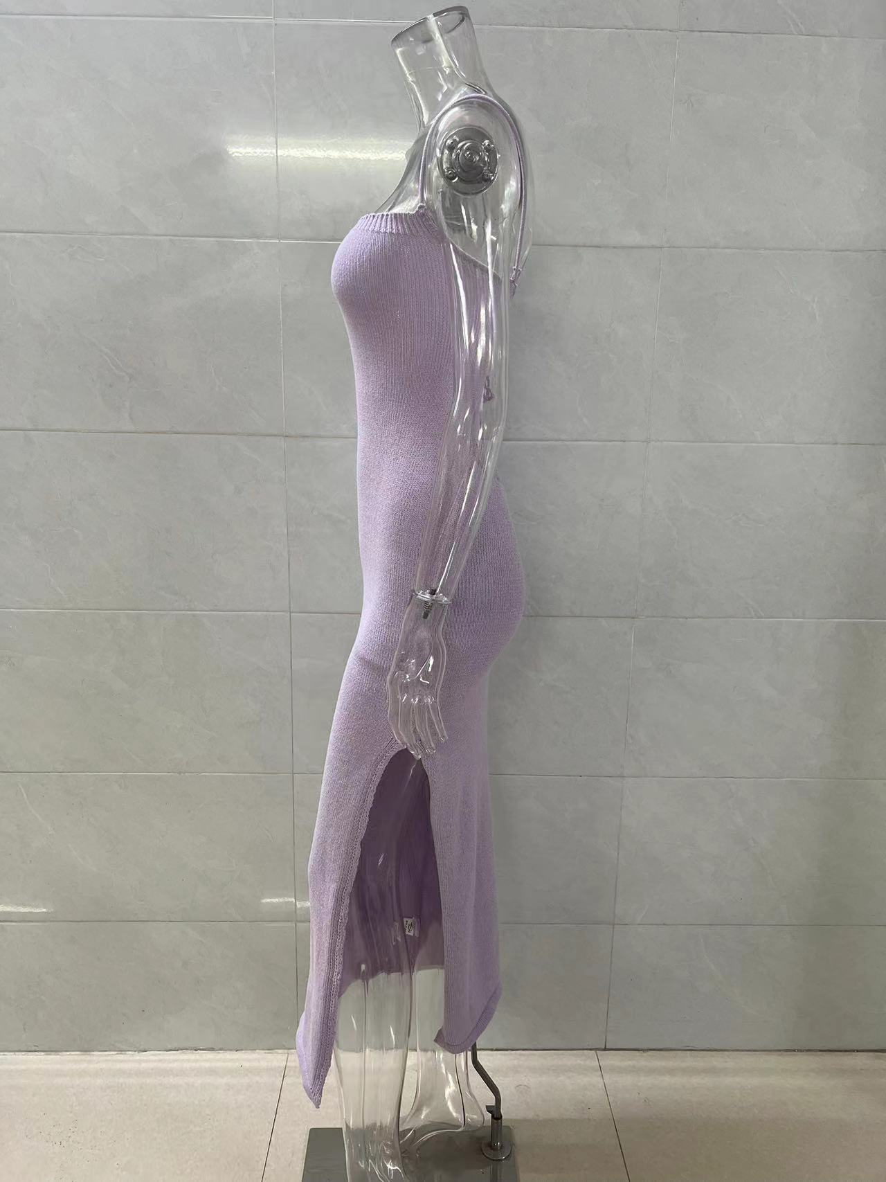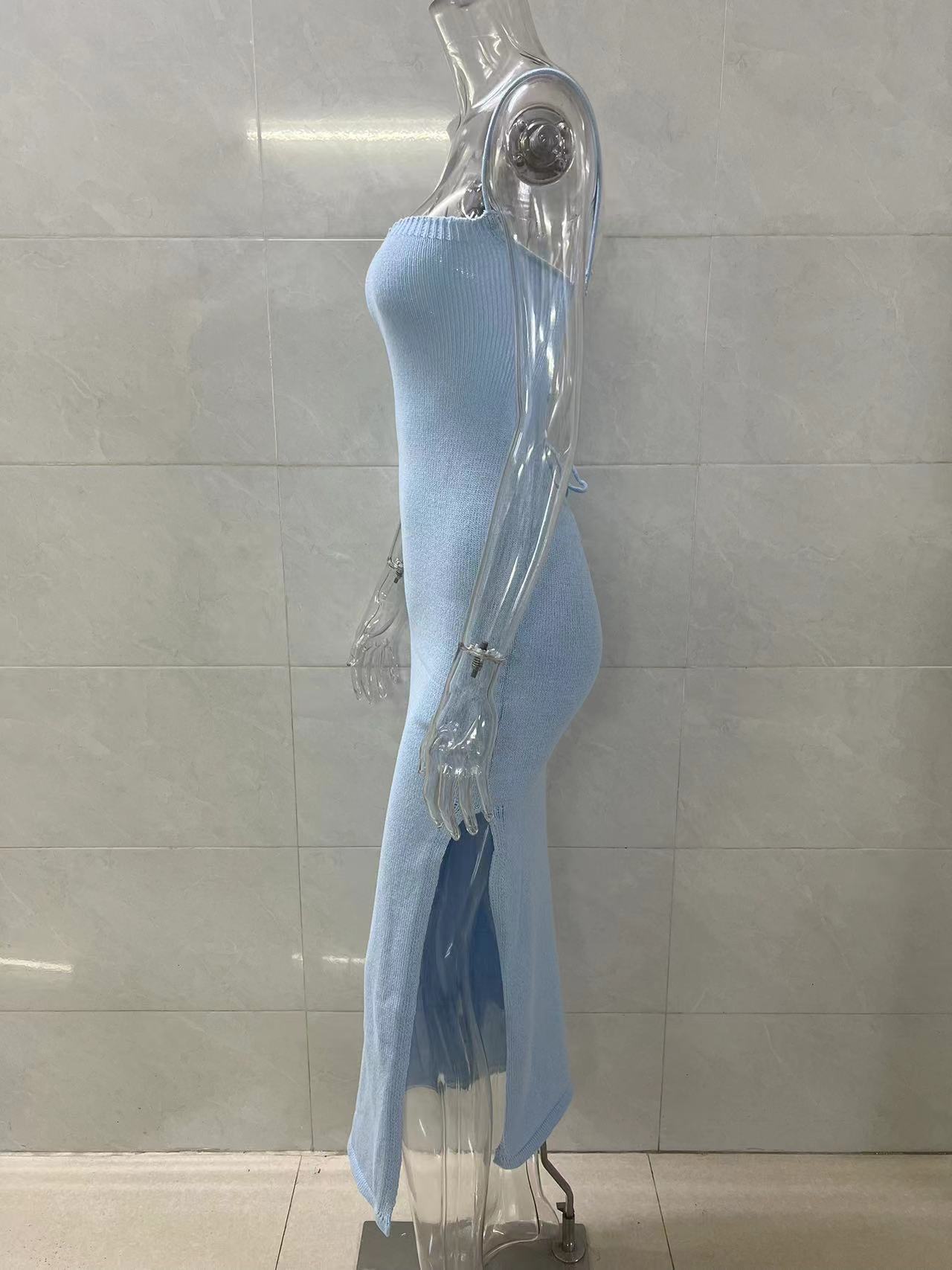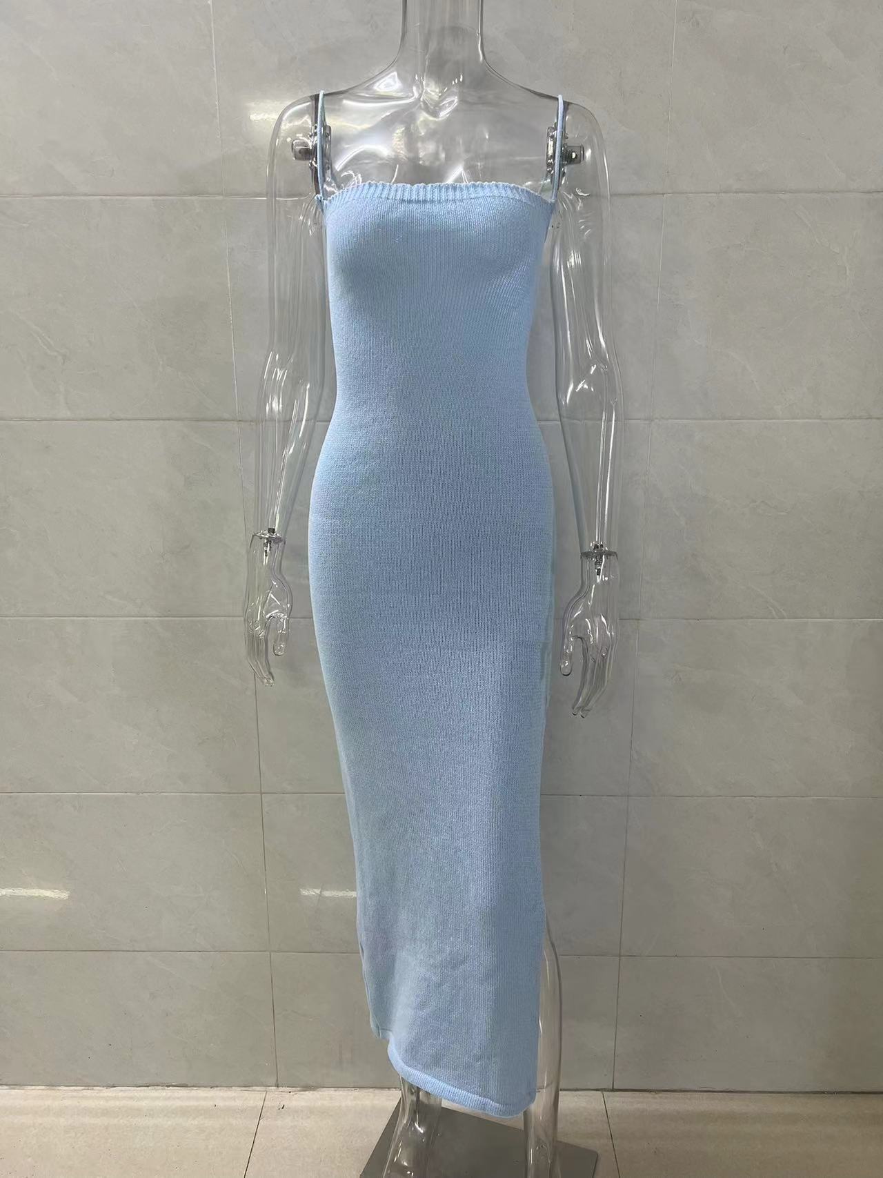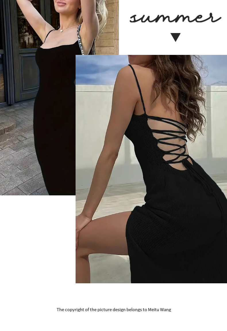 유럽과 미국의 국경 간 대외 무역 여성의 여름 백리스 비치 원피스 여성의 섹시한 스파이스 니트 슬링 원피스